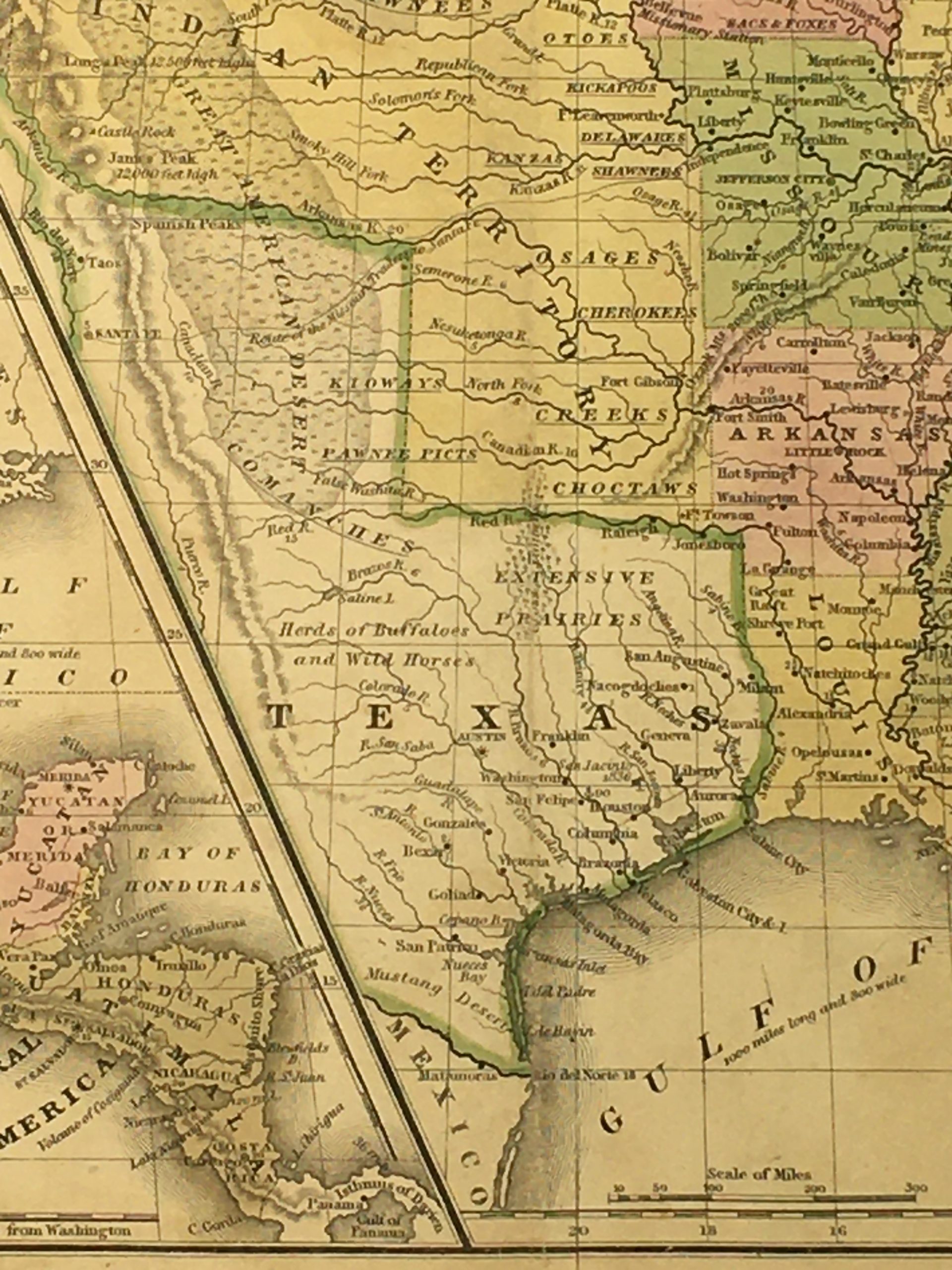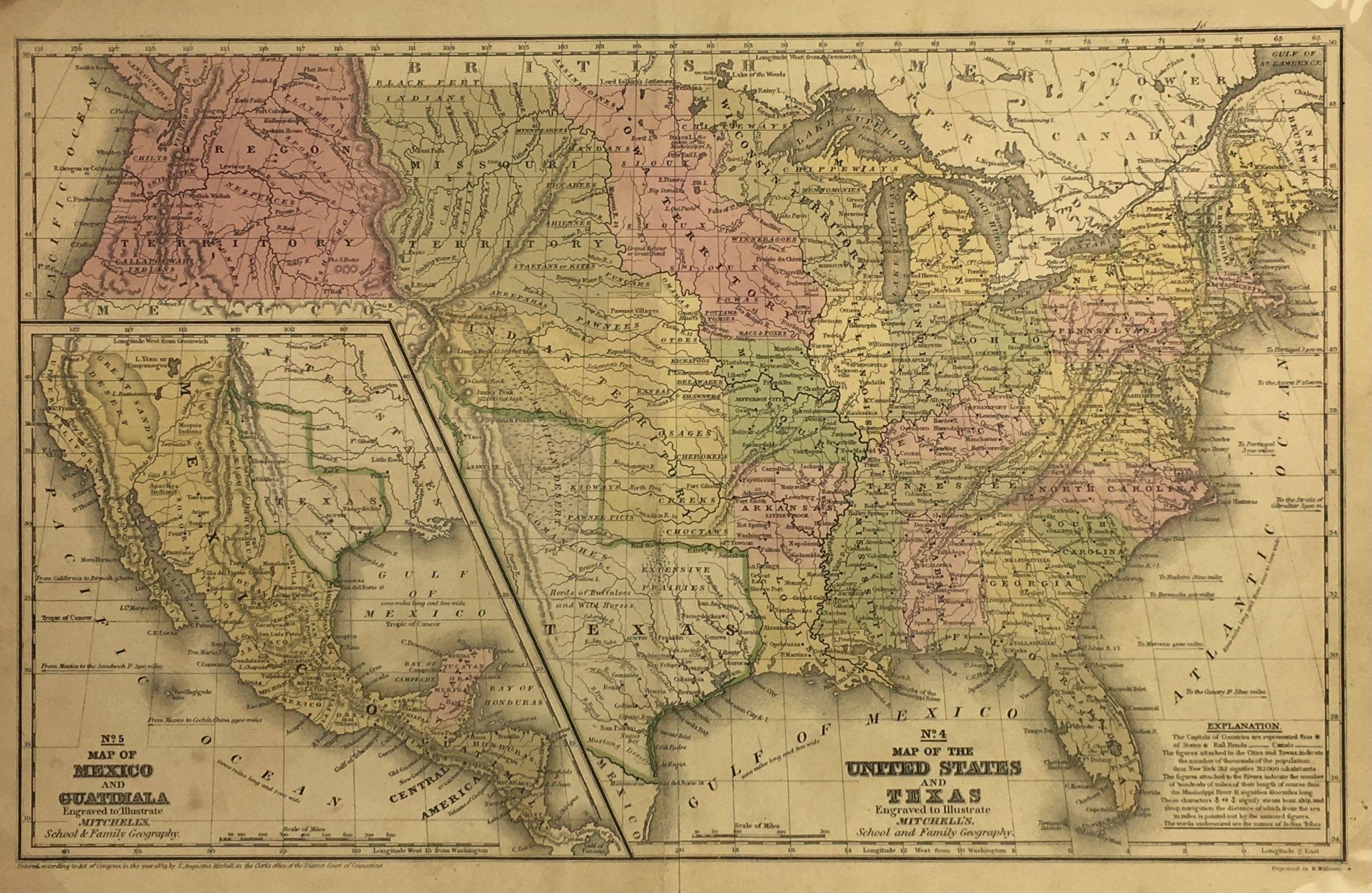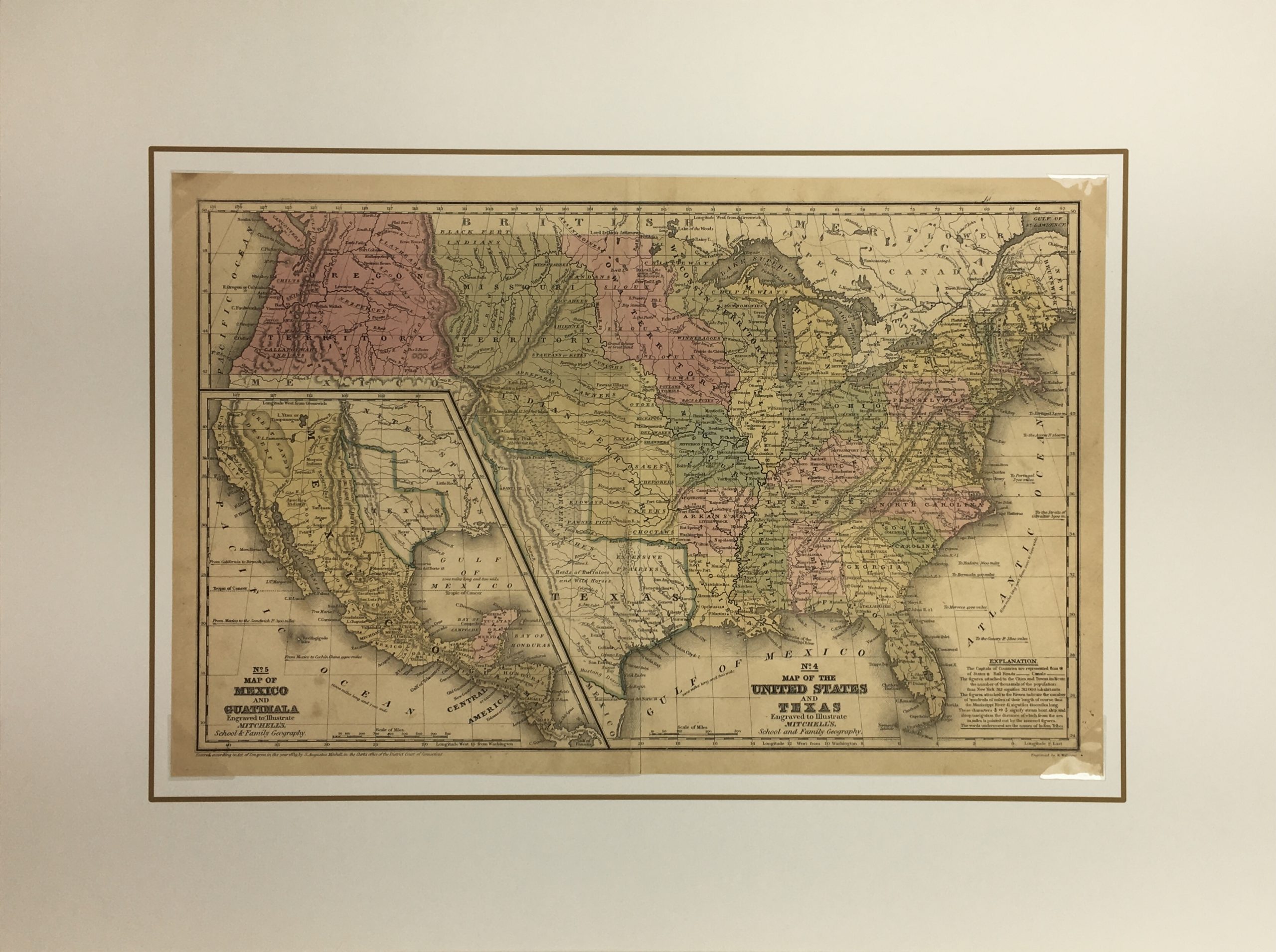 Antique Map on paper displayed on a white mat with a gold border. Mat fits a standard-size frame. Archival plastic sleeve and Certificate of Authenticity included. Antique Map, 17.5″W x 11.2″H; mat, 24″W x 18″H.