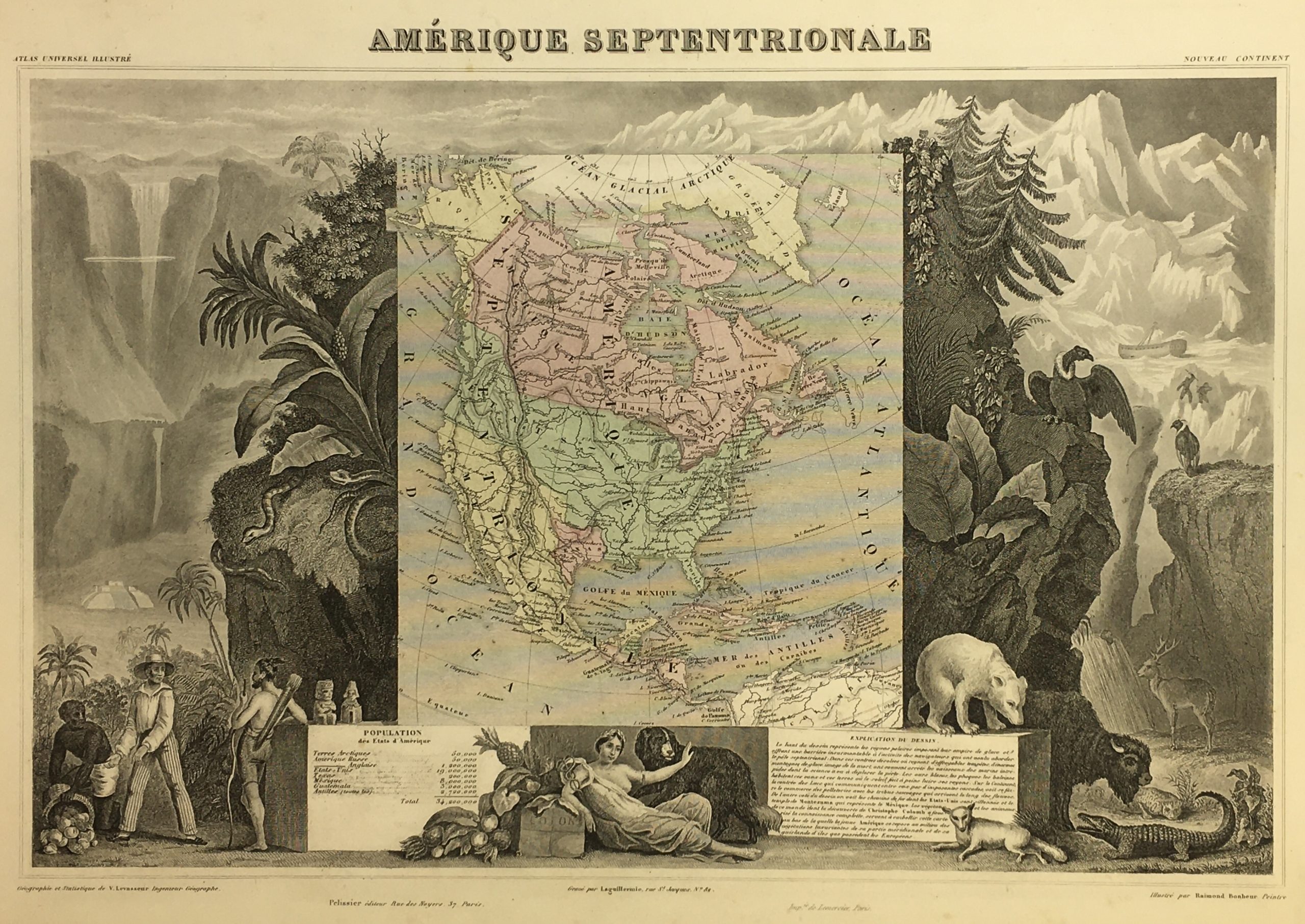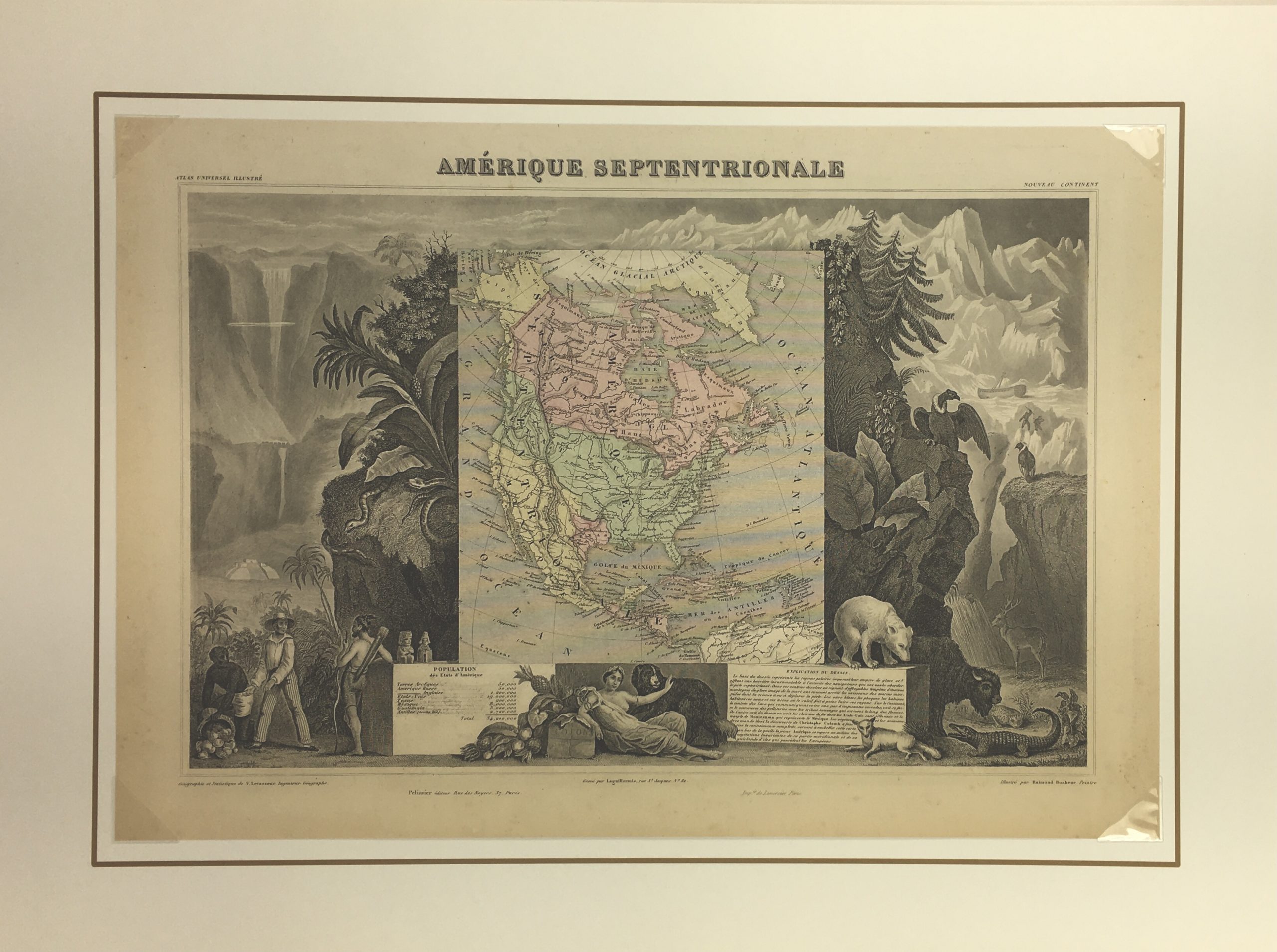 Antique Map on paper displayed on a white mat with a gold border. Mat fits a standard-size frame. Archival plastic sleeve and Certificate of Authenticity included. Antique Map, 19.5″W x 13.3″H; mat, 24″W x 18″H.