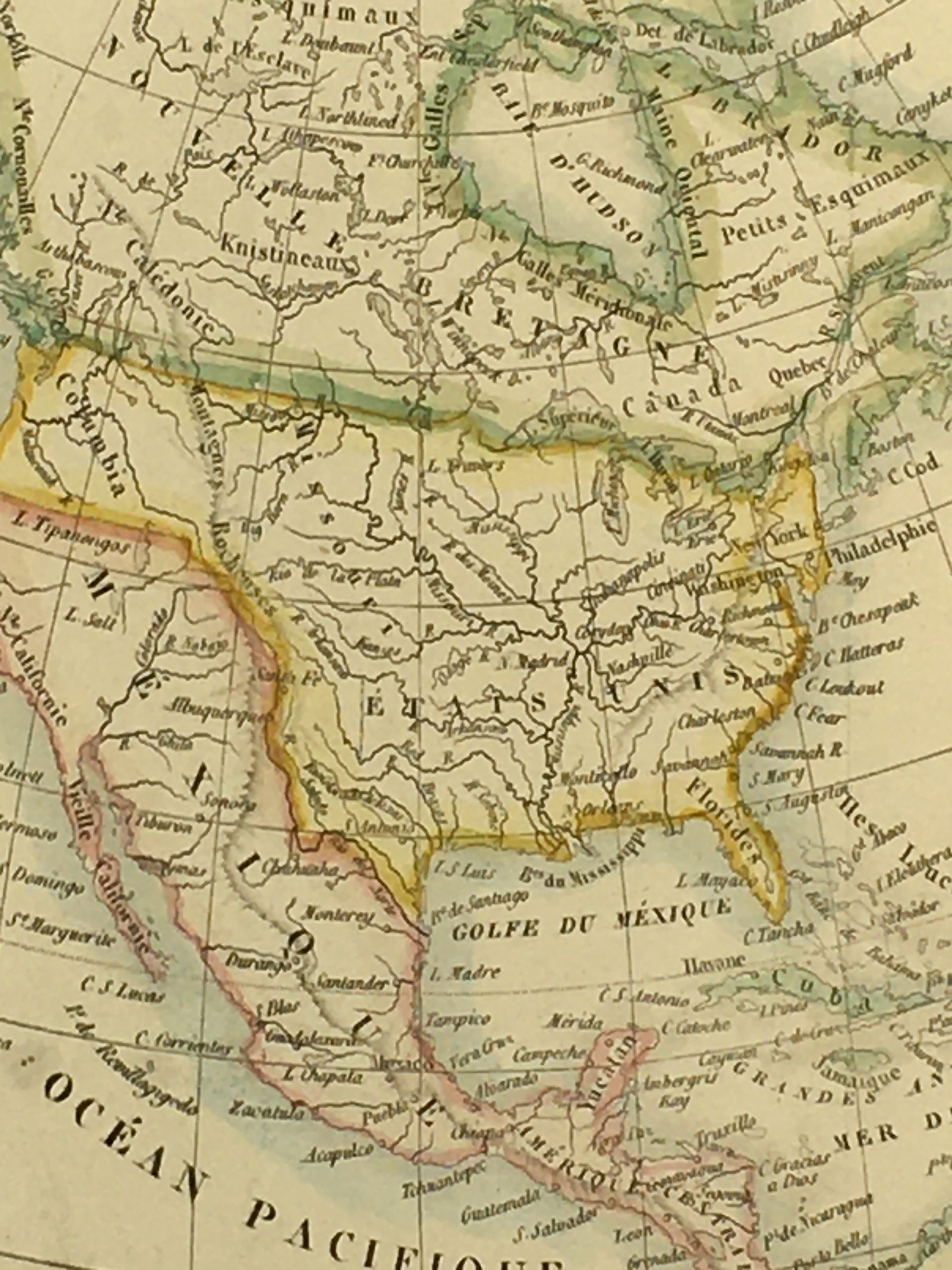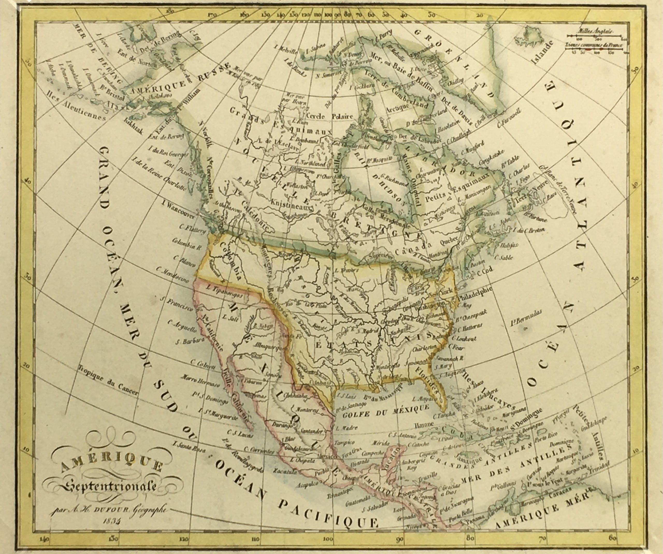 Antique Map on paper displayed on a white mat with a gold border. Mat fits a standard-size frame. Archival plastic sleeve and Certificate of Authenticity included. Antique Map, 8.6″W x 7.5″H; mat, 16″W x 20″H.
