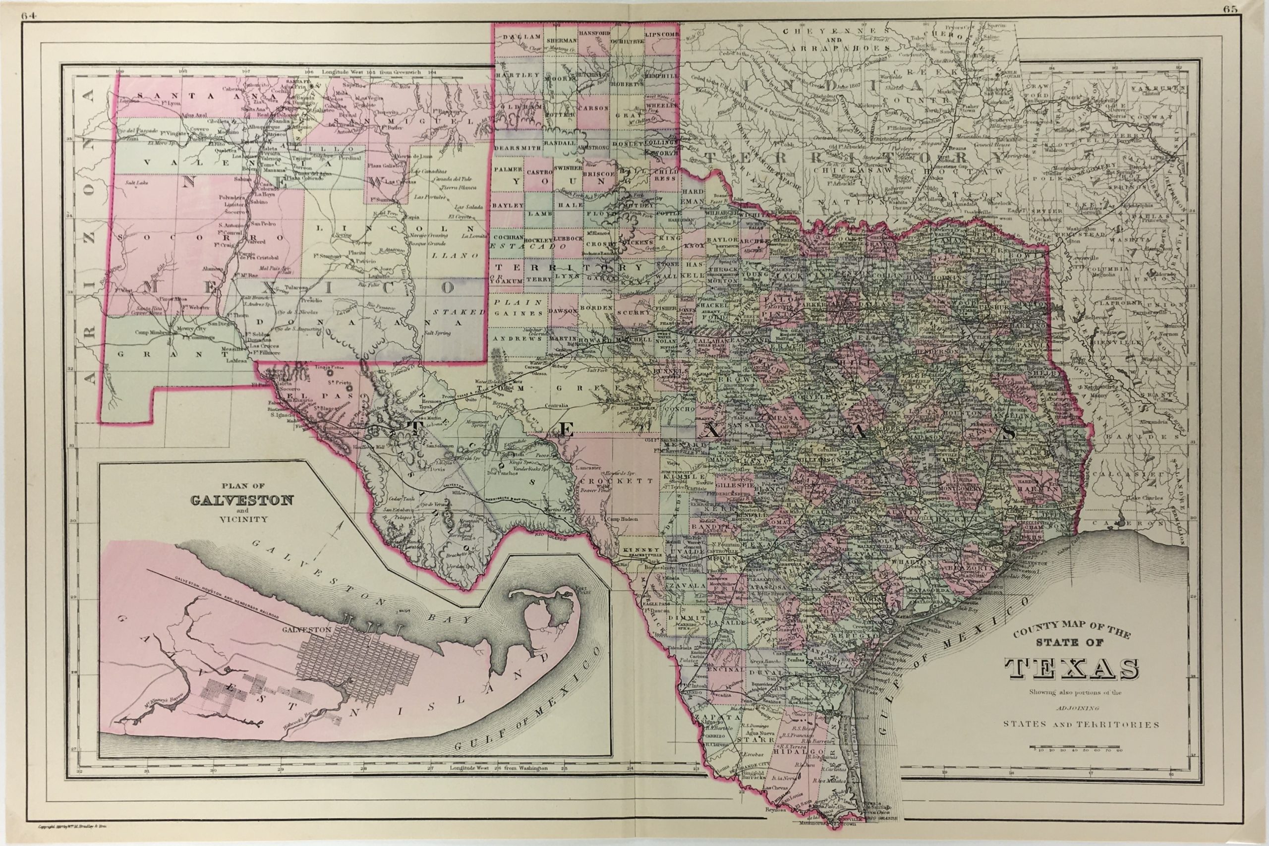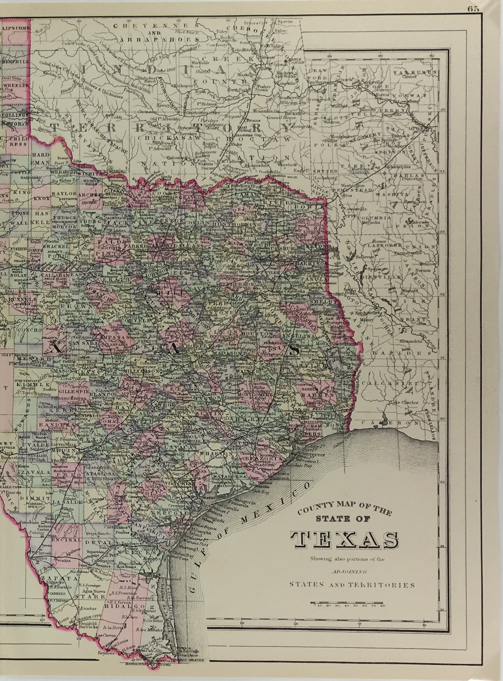 Antique Map on paper displayed on a white mat with a gold border. Mat fits a standard-size frame. Archival plastic sleeve and Certificate of Authenticity included. Antique Map, 22″W x 16″H; mat, 24″W x 18″H.