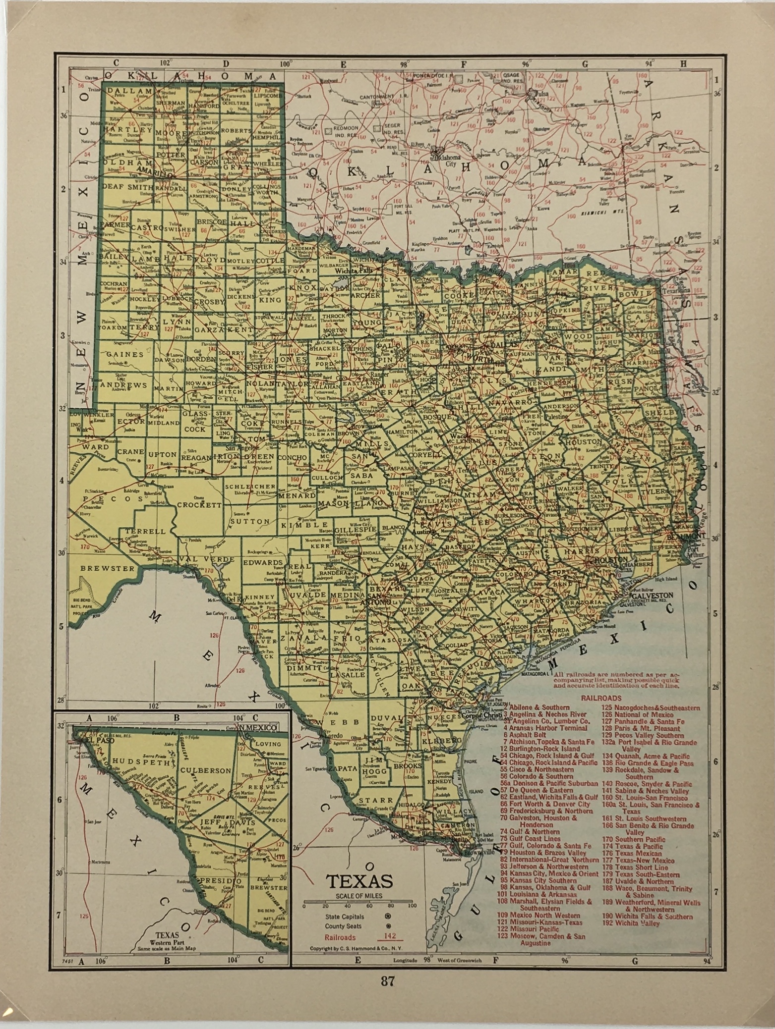 Texas Map – Texas Map, C.S. Hammond, 1942