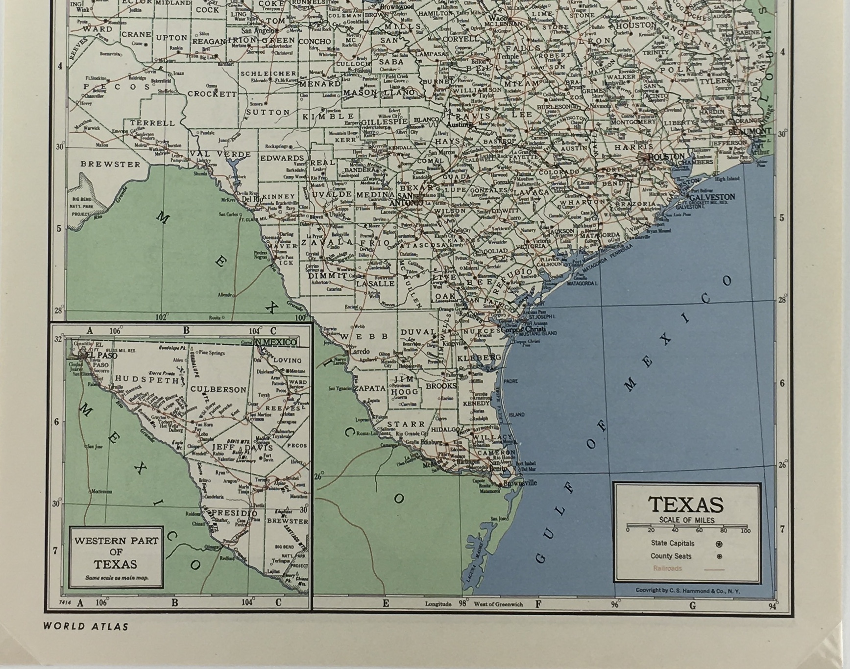 Antique Map on paper displayed on a white mat with a gold border. Mat fits a standard-size frame. Archival plastic sleeve and Certificate of Authenticity included. Antique Map, 12″W x 16″H; mat, 18″W x 24″H.