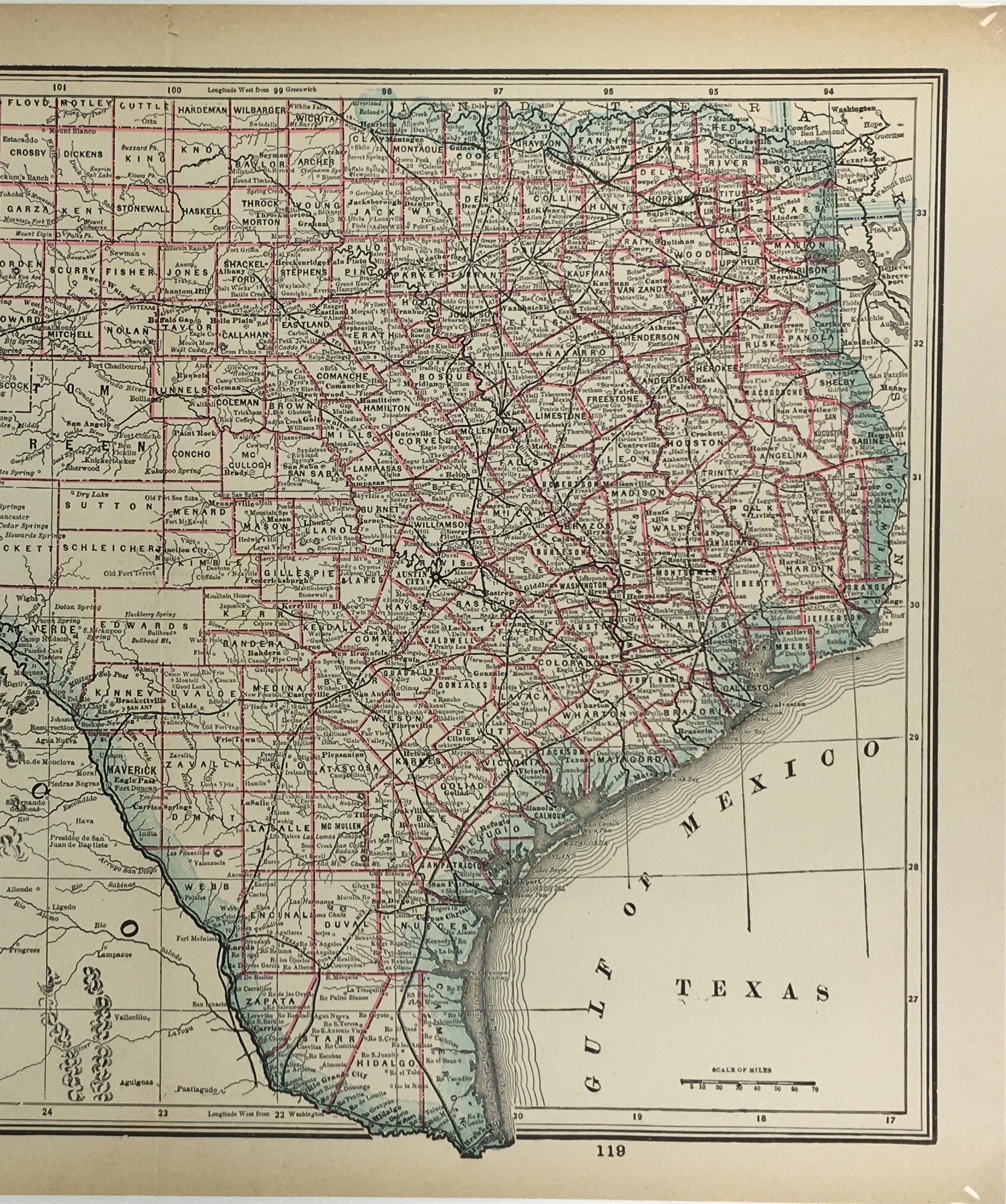 Antique Map on paper displayed on a white mat with a gold border. Mat fits a standard-size frame. Archival plastic sleeve and Certificate of Authenticity included. Antique Map, 18″W x 13″H; mat, 24″W x 18″H.