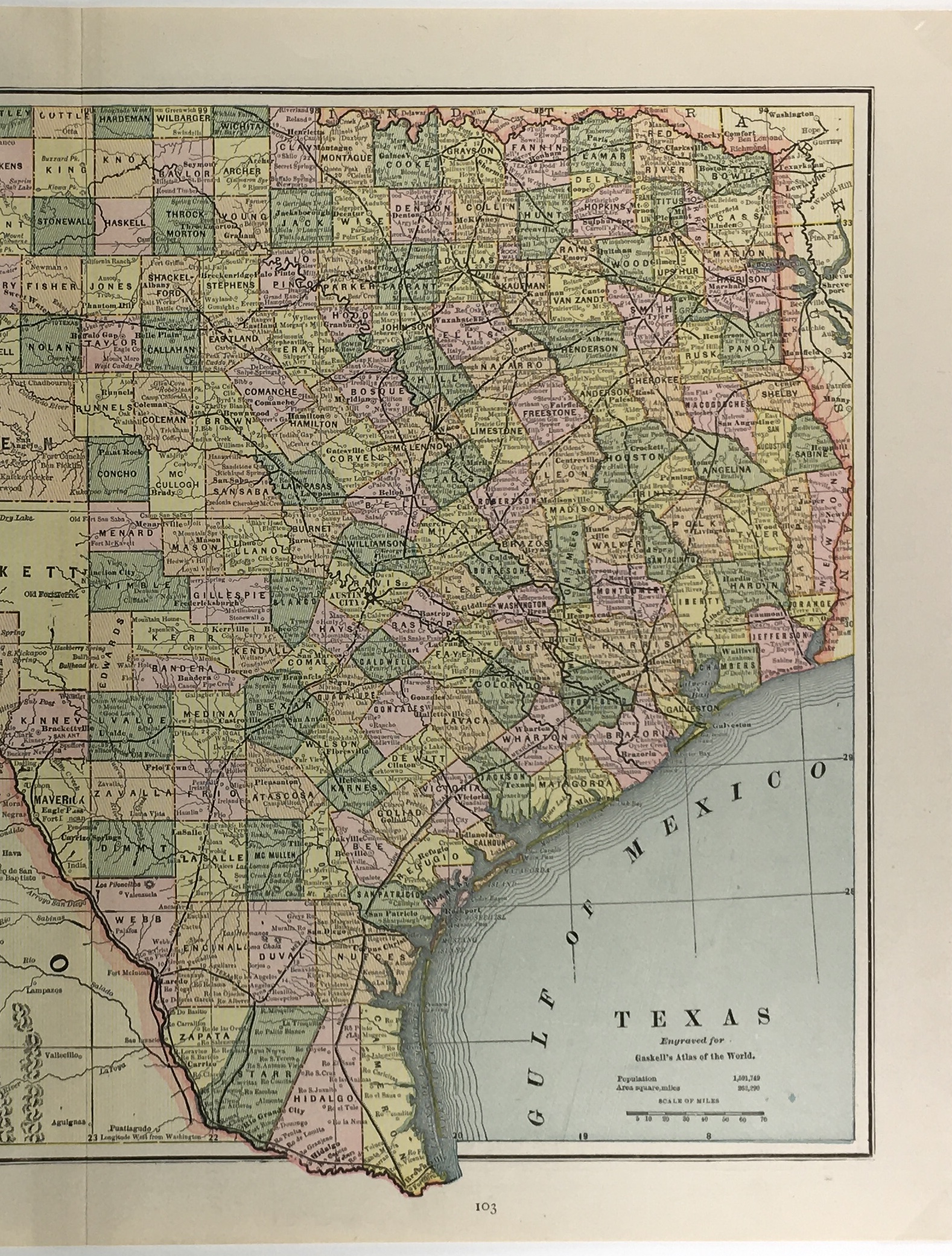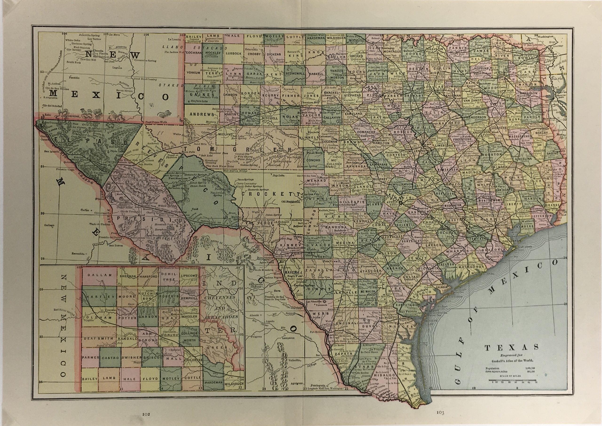 Texas Map – Texas Map, Gaskell’s Atlas, 1887