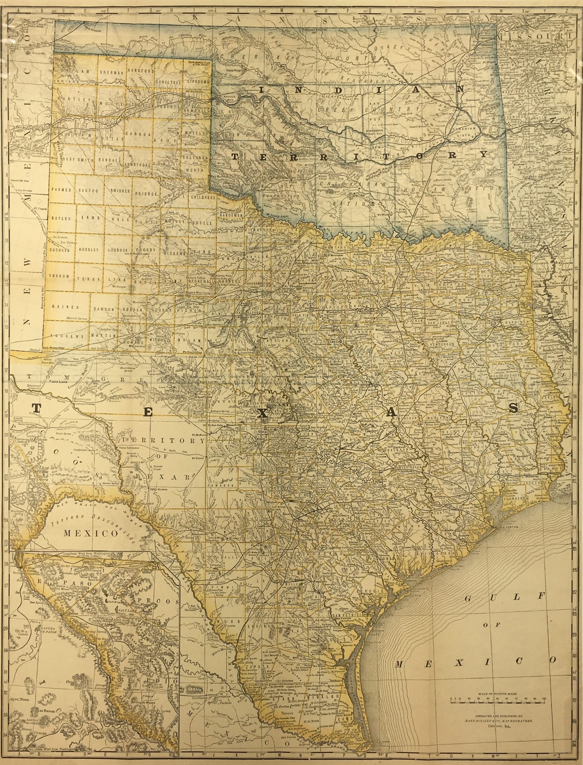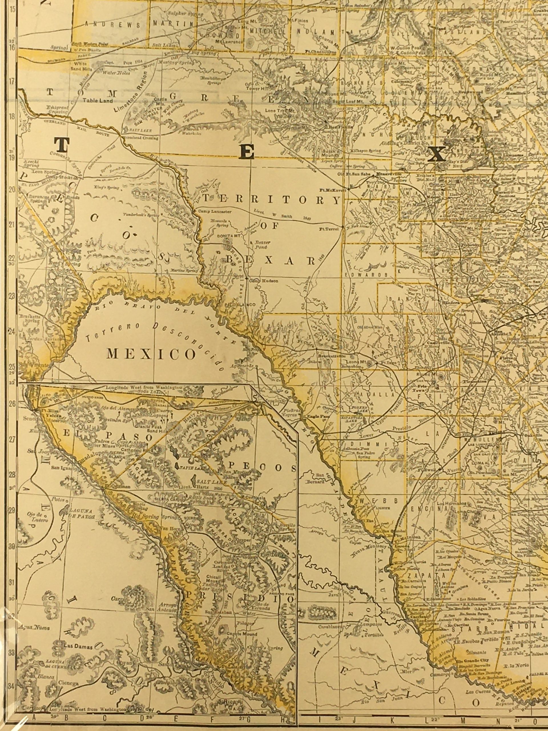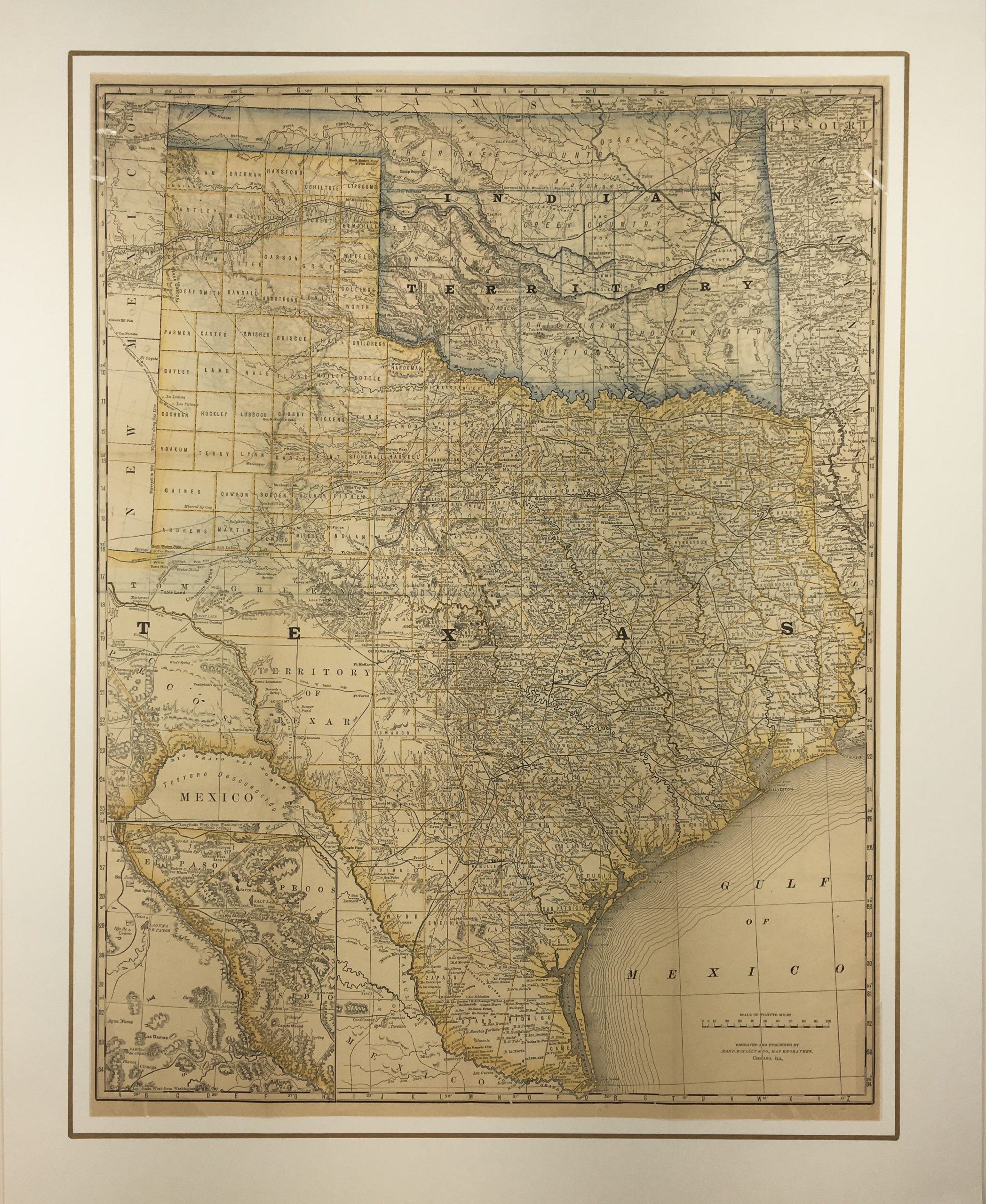 Antique Map on paper displayed on a white mat with a gold border. Mat fits a standard-size frame. Archival plastic sleeve and Certificate of Authenticity included. Antique Map, 20″W x 25″H; mat, 24″W x 30″H.