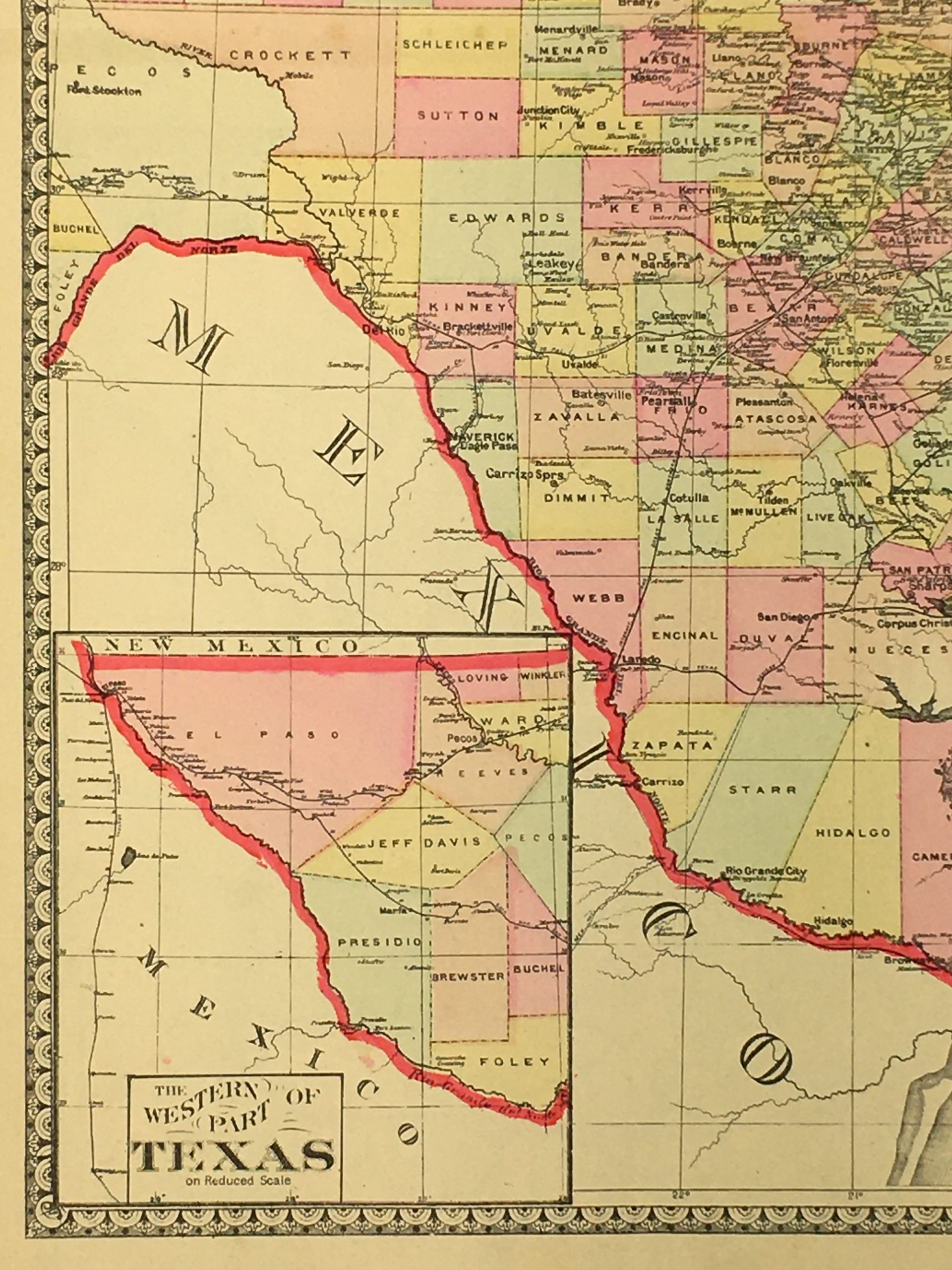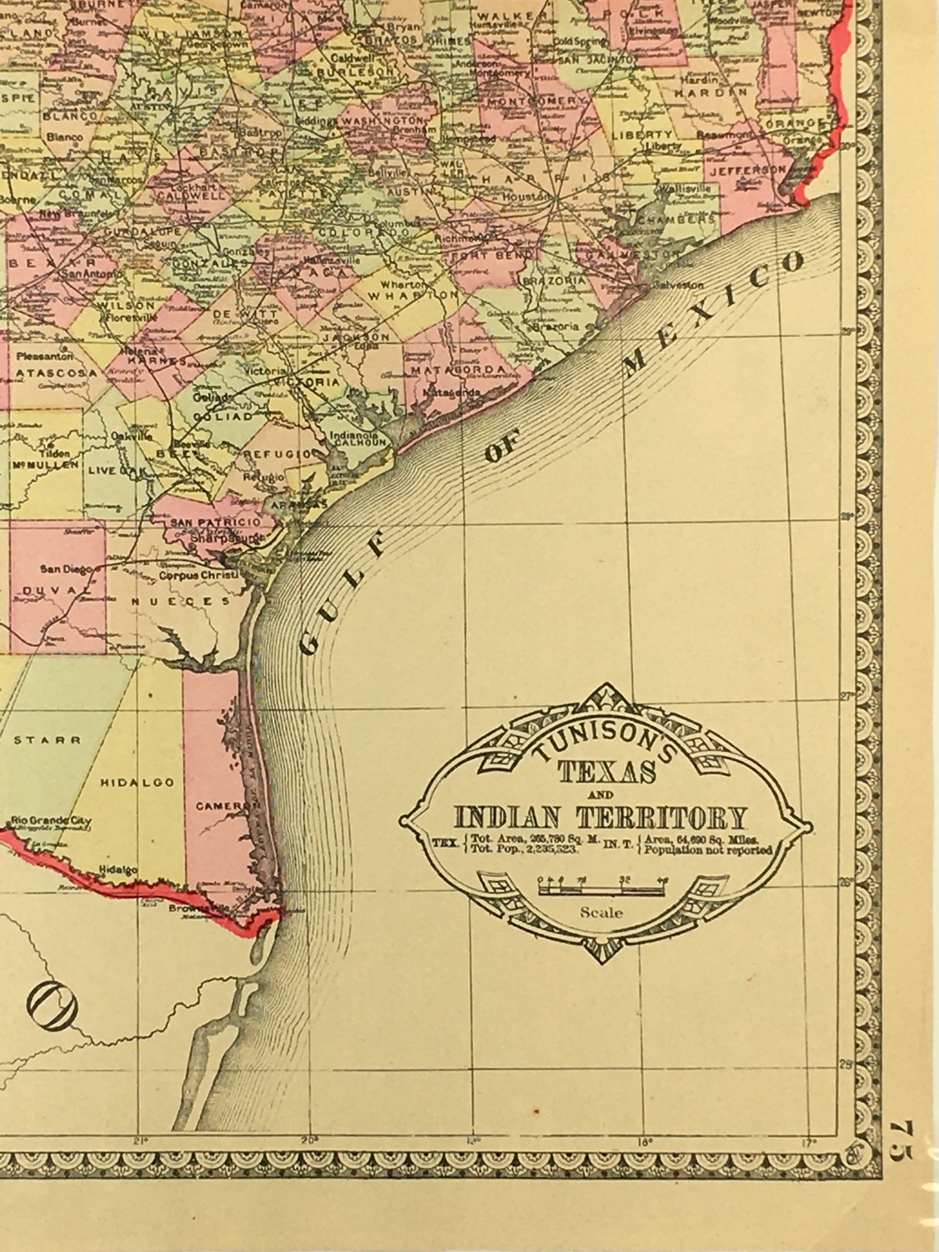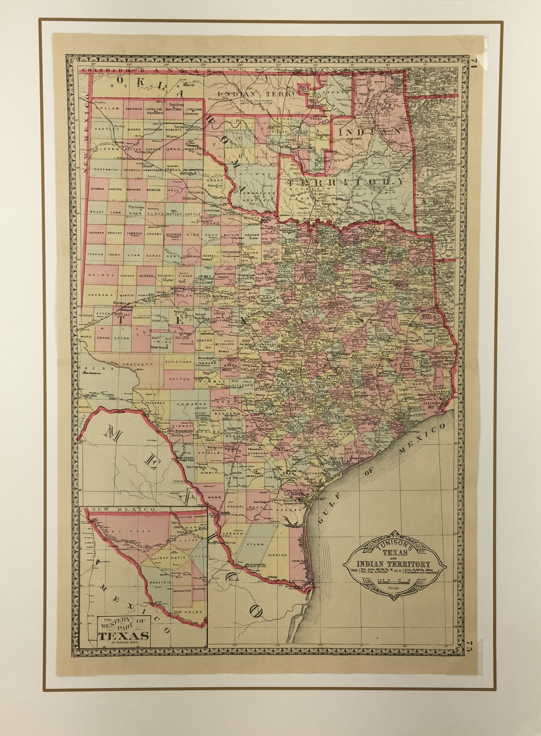 Antique Map on paper displayed on a white mat with a gold border. Mat fits a standard-size frame. Archival plastic sleeve and Certificate of Authenticity included. Antique Map, 13.7″W x 20.7″H; mat, 18″W x 24″H.