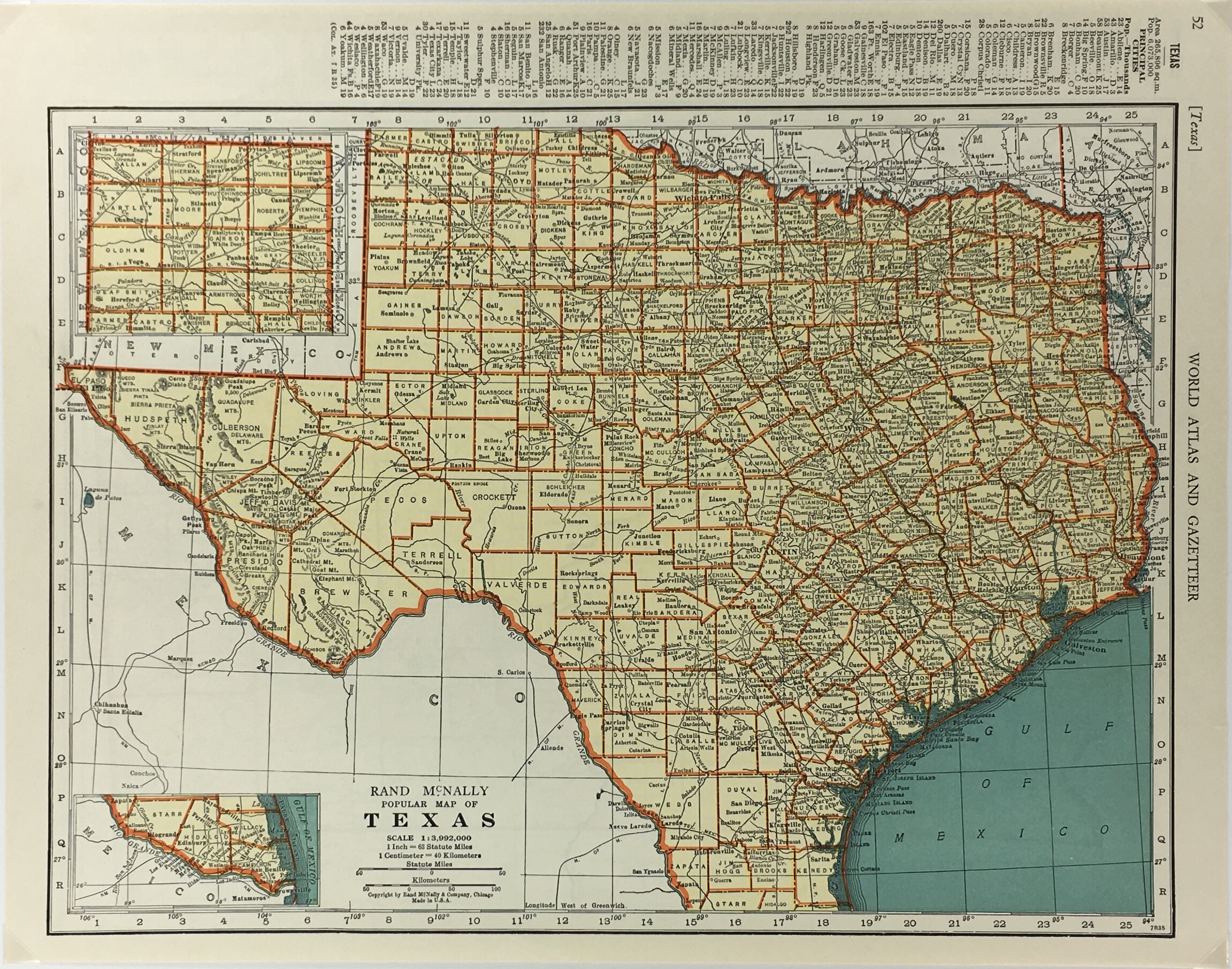 Antique Map on paper displayed on a white mat with a gold border. Mat fits a standard-size frame. Archival plastic sleeve and Certificate of Authenticity included. Antique Map, 13.5″W x 10.5″H; mat, 20″W x 16″H.