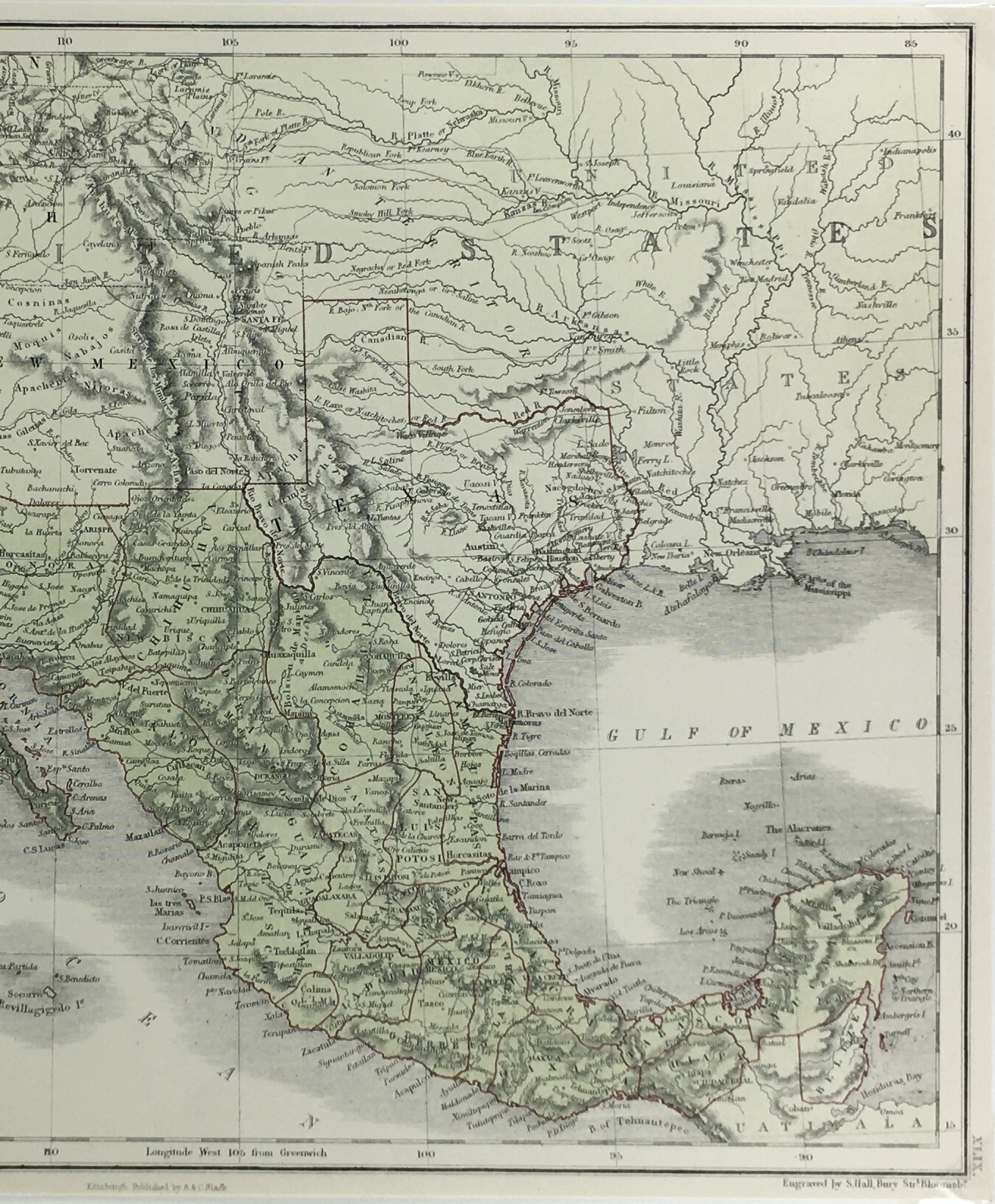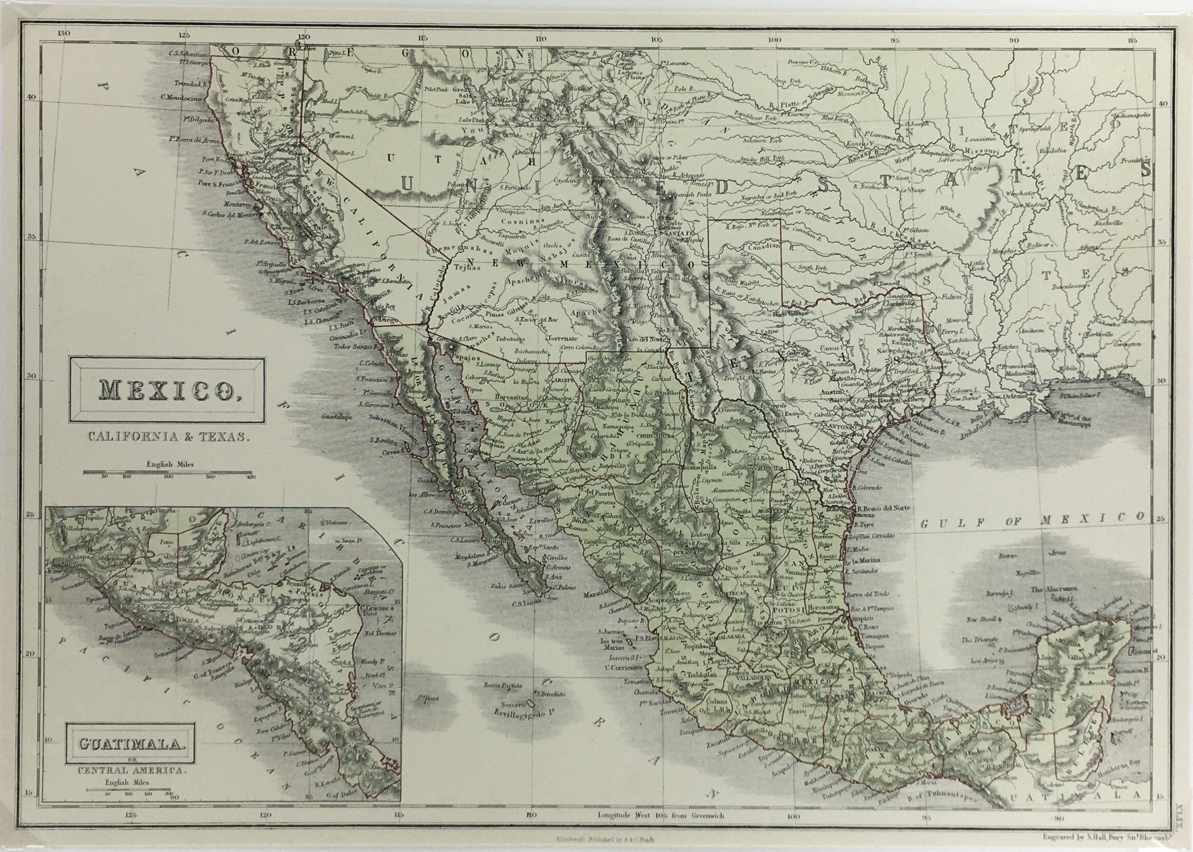 Antique Map on paper displayed on a white mat with a gold border. Mat fits a standard-size frame. Archival plastic sleeve and Certificate of Authenticity included. Antique Map, 15.25″W x 10.75″H; mat, 24″W x 18″H.