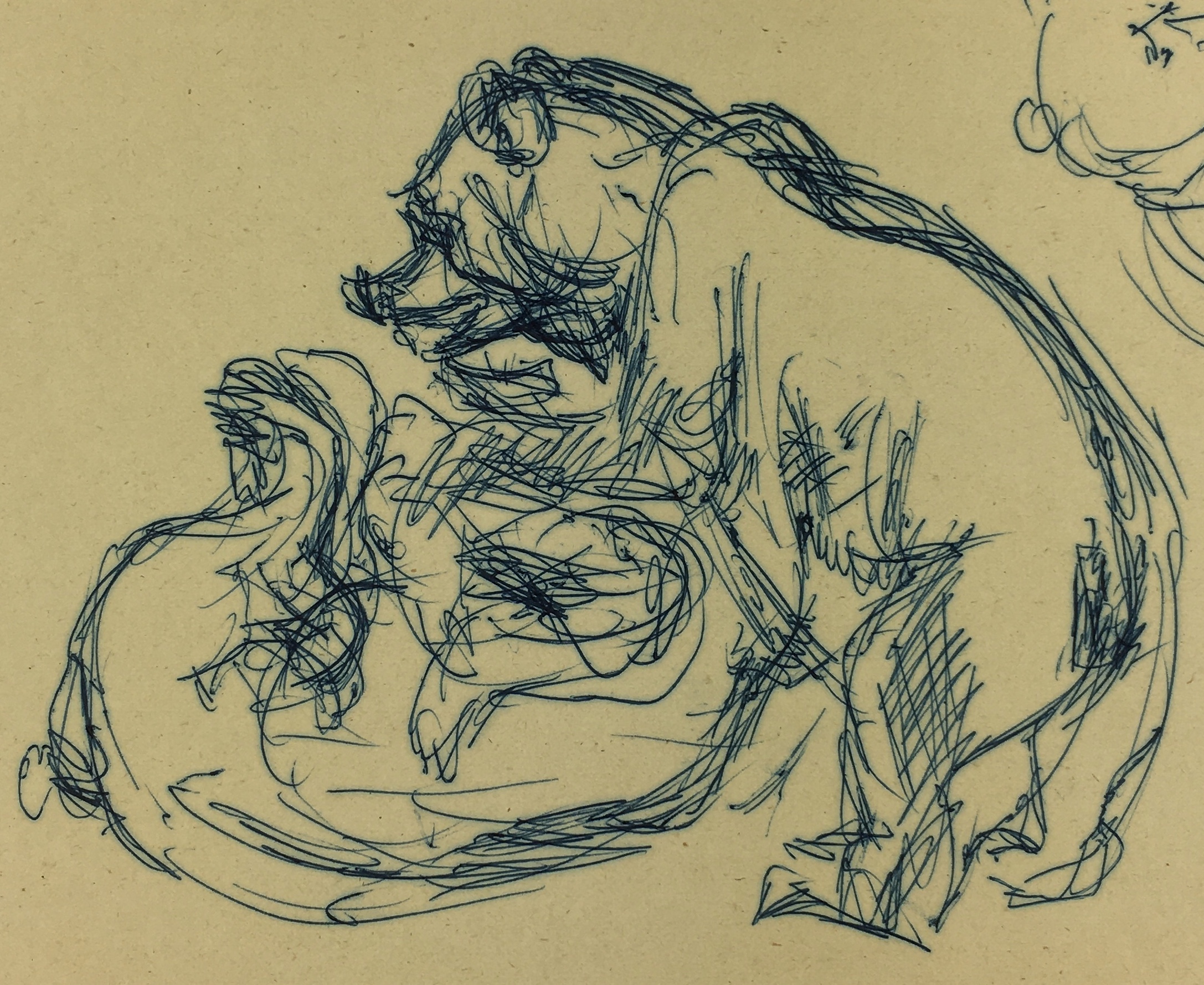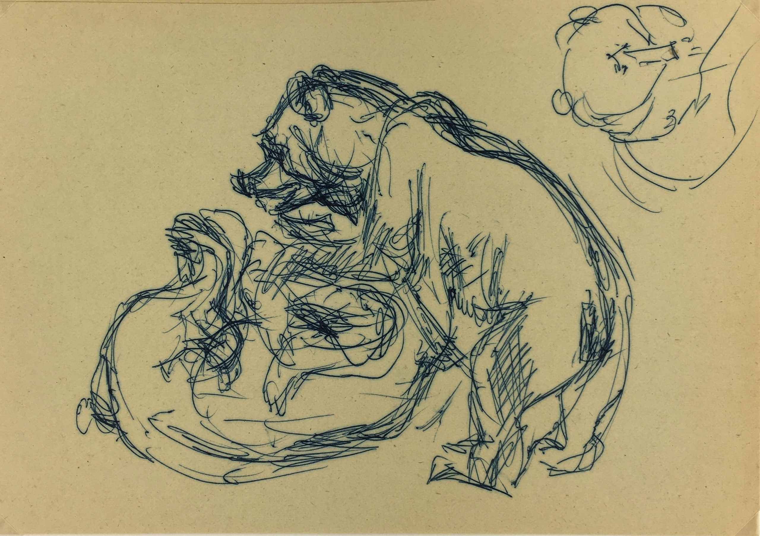Original Art on paper displayed on a white mat with a gold border. Mat fits a standard-size frame. Archival plastic sleeve and Certificate of Authenticity included. Original Art, 10.75″W x 7.5″H; mat, 16″W x 20″H.