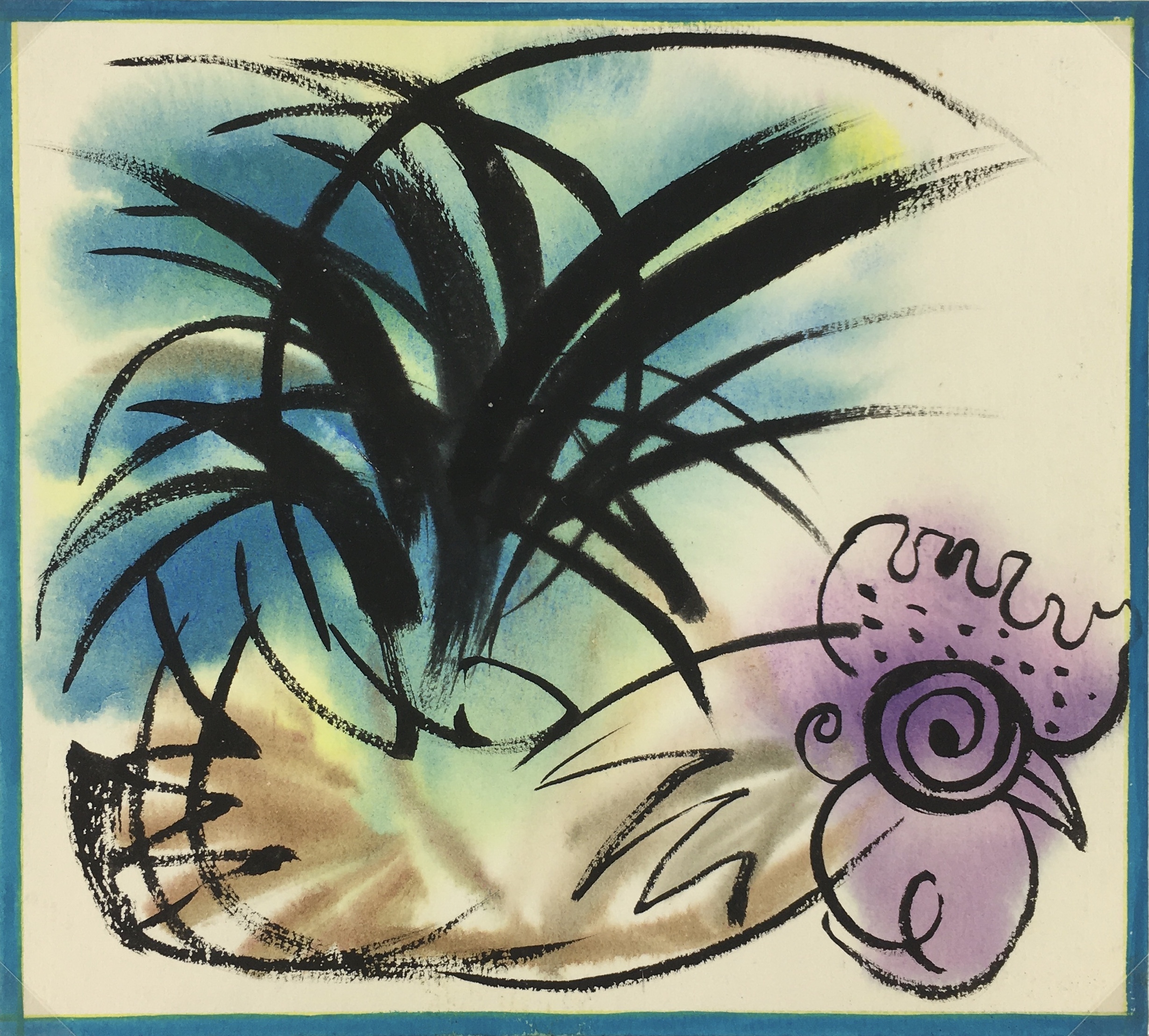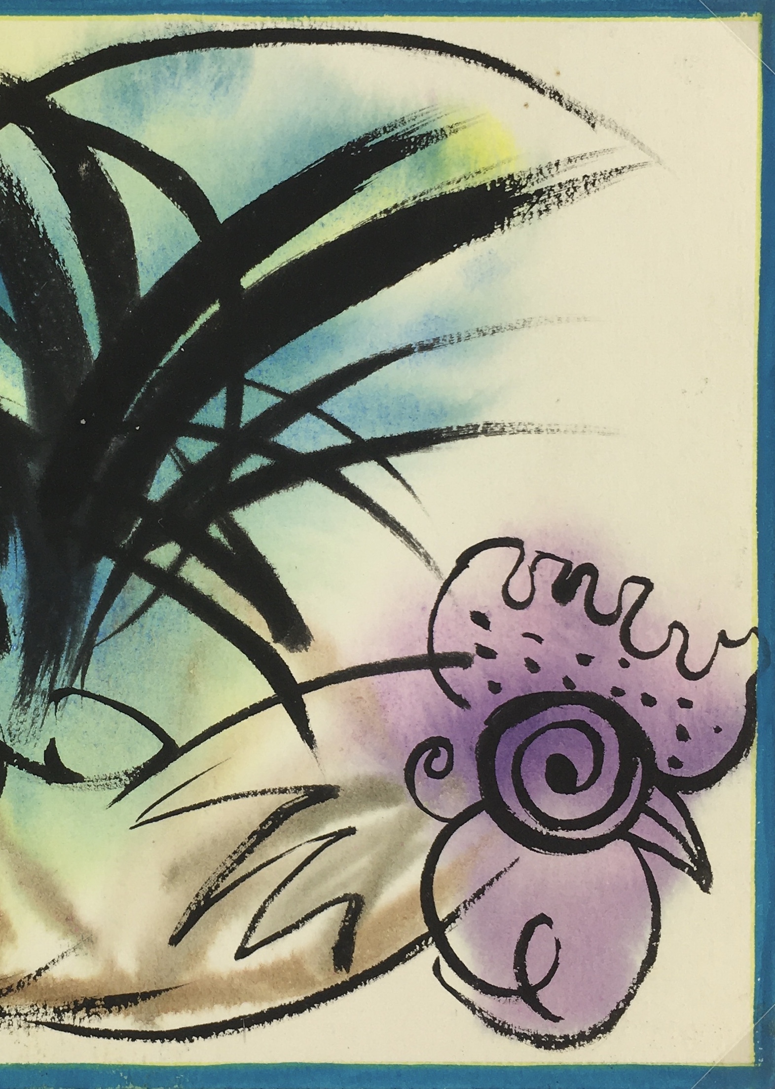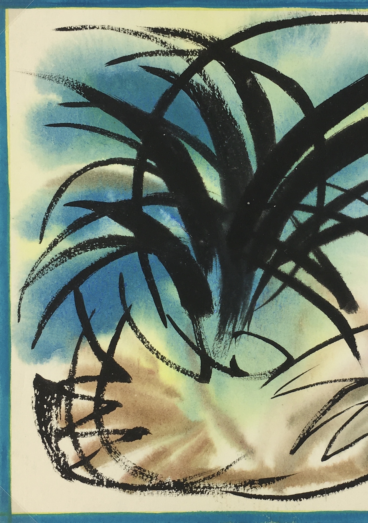Original Art on paper displayed on a white mat with a gold border. Mat fits a standard-size frame. Archival plastic sleeve and Certificate of Authenticity included. Original Art, 7.25″W x 6.5″H; mat, 16″W x 20″H.