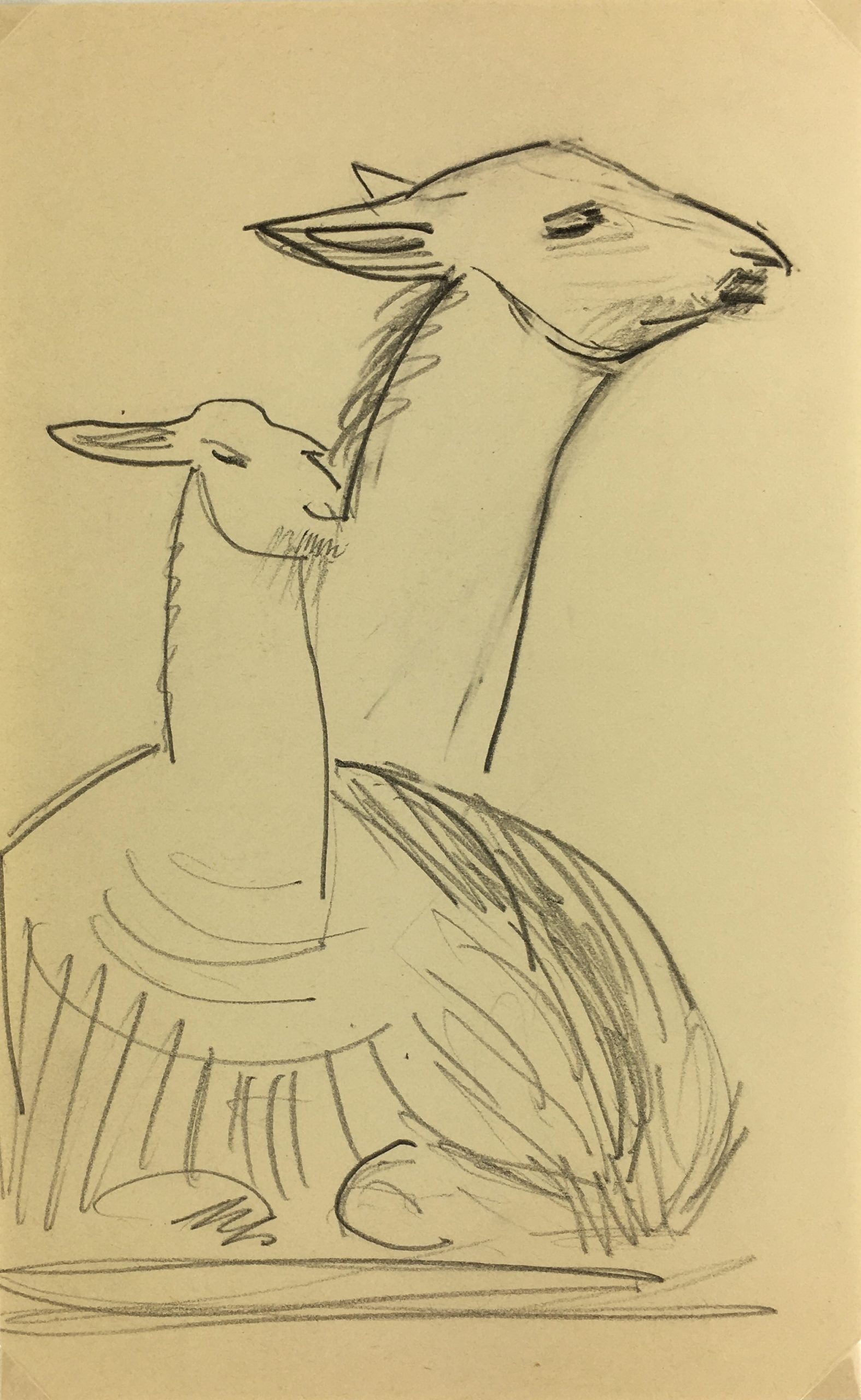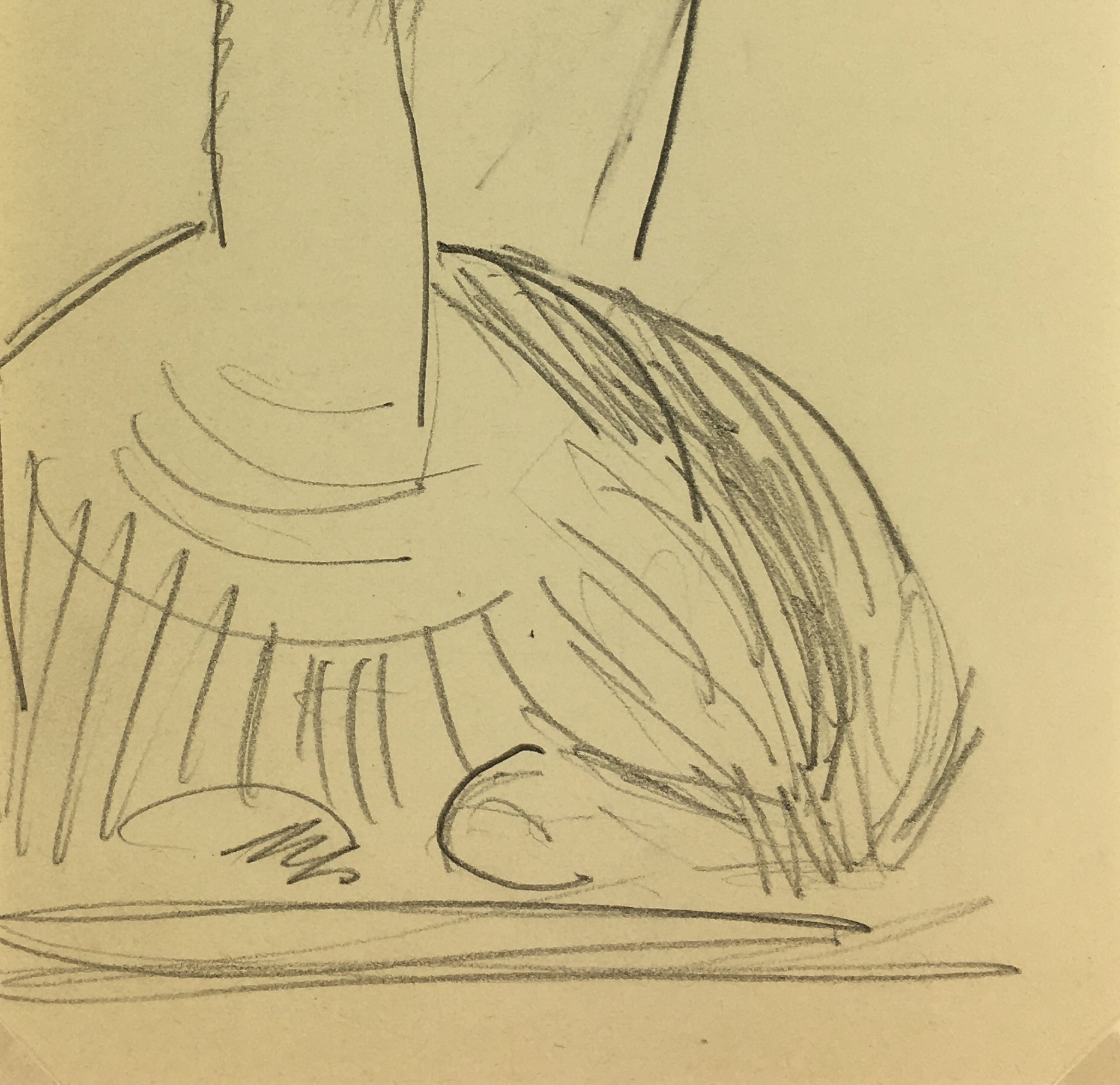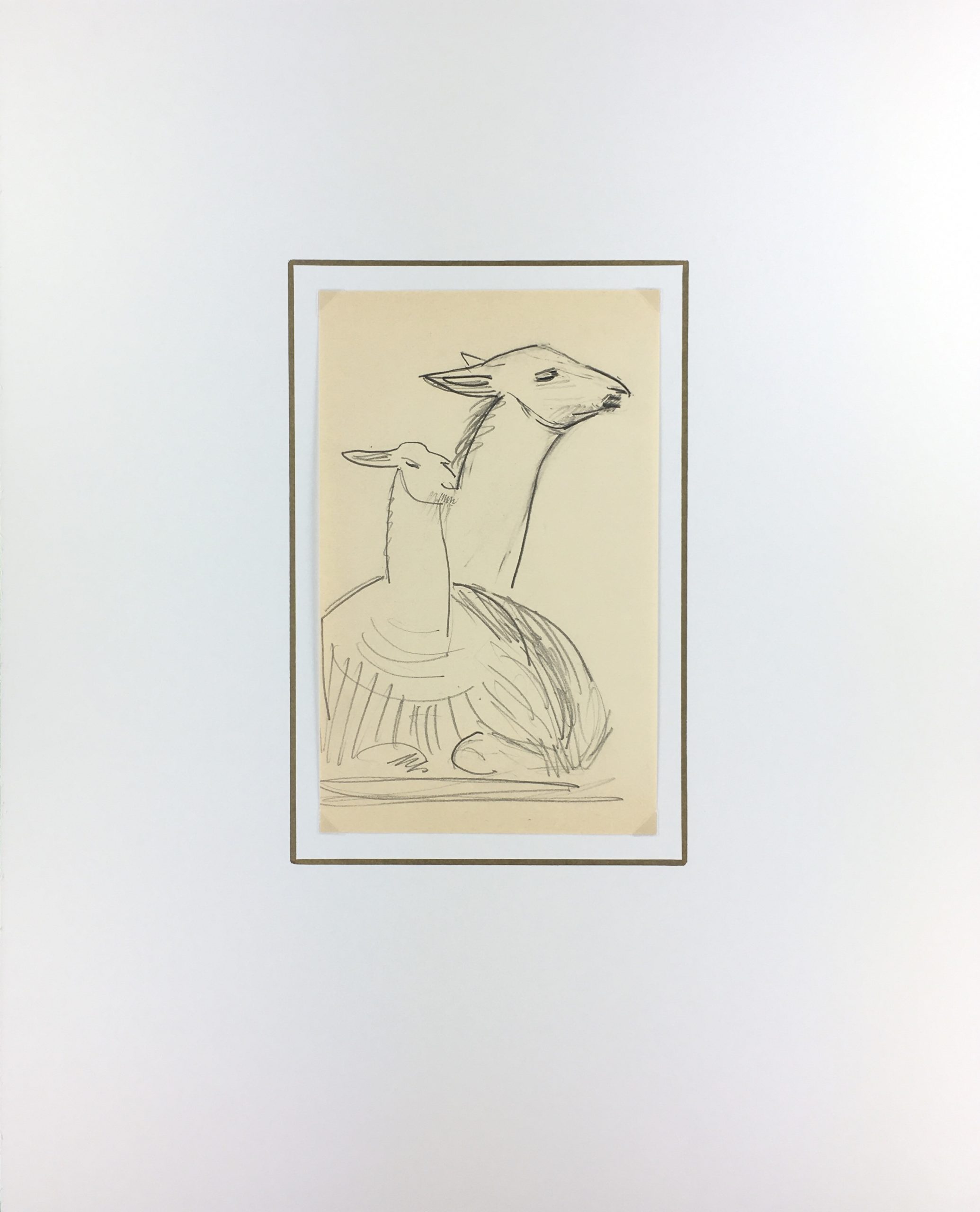 Original Art on paper displayed on a white mat with a gold border. Mat fits a standard-size frame. Archival plastic sleeve and Certificate of Authenticity included. Original Art, 5.5″W x 9″H; mat, 16″W x 20″H.
