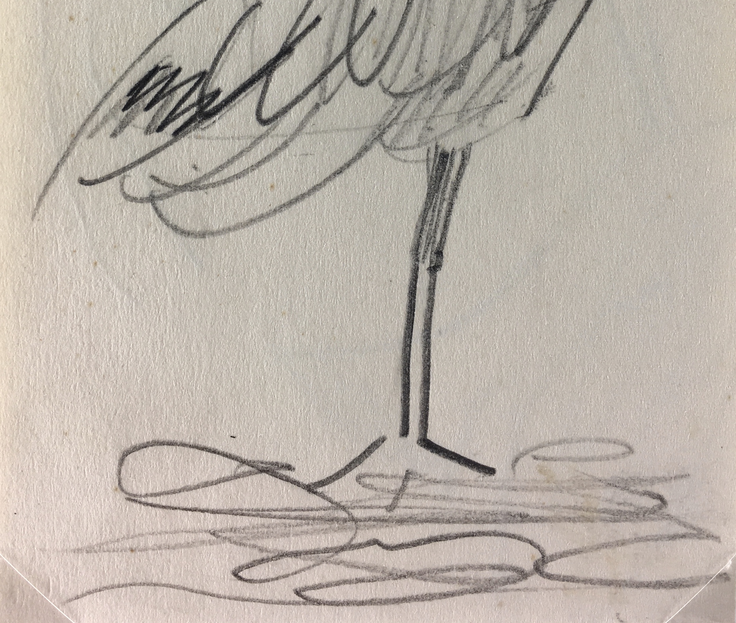 Original Art on paper displayed on a white mat with a gold border. Mat fits a standard-size frame. Archival plastic sleeve and Certificate of Authenticity included. Original Art, 3.25″W x 5″H; mat, 12″W x 16″H.
