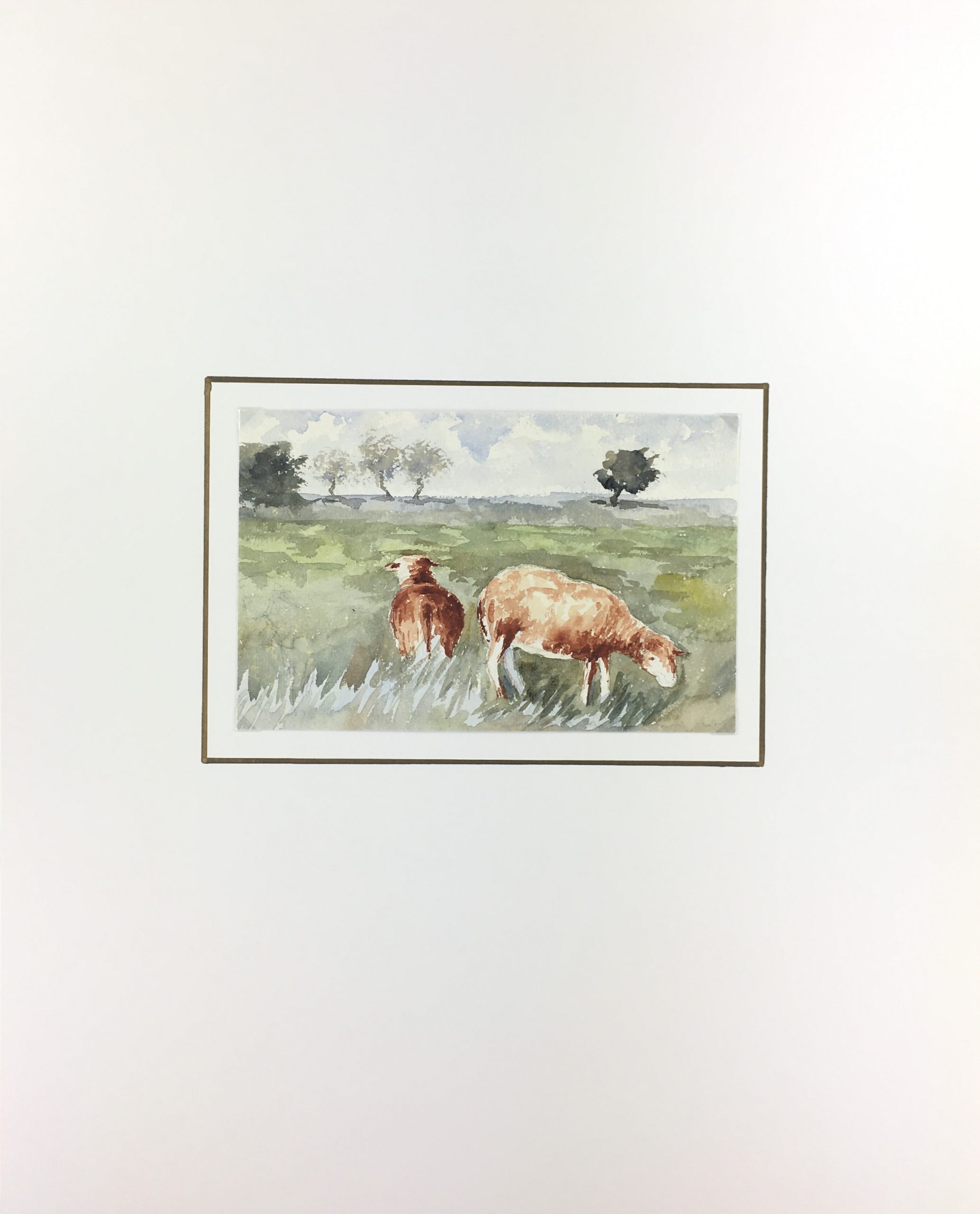 Original Art on paper displayed on a white mat with a gold border. Mat fits a standard-size frame. Archival plastic sleeve and Certificate of Authenticity included. Original Art, 8.25″W x 5.25″H; mat, 16″W x 20″H.