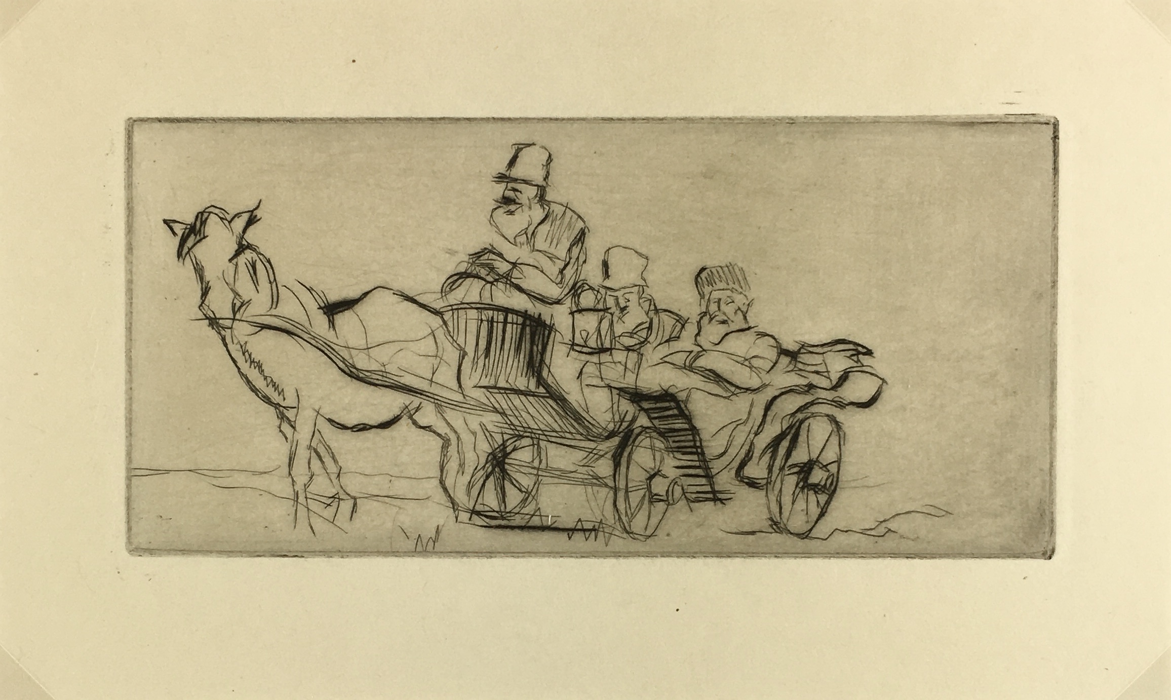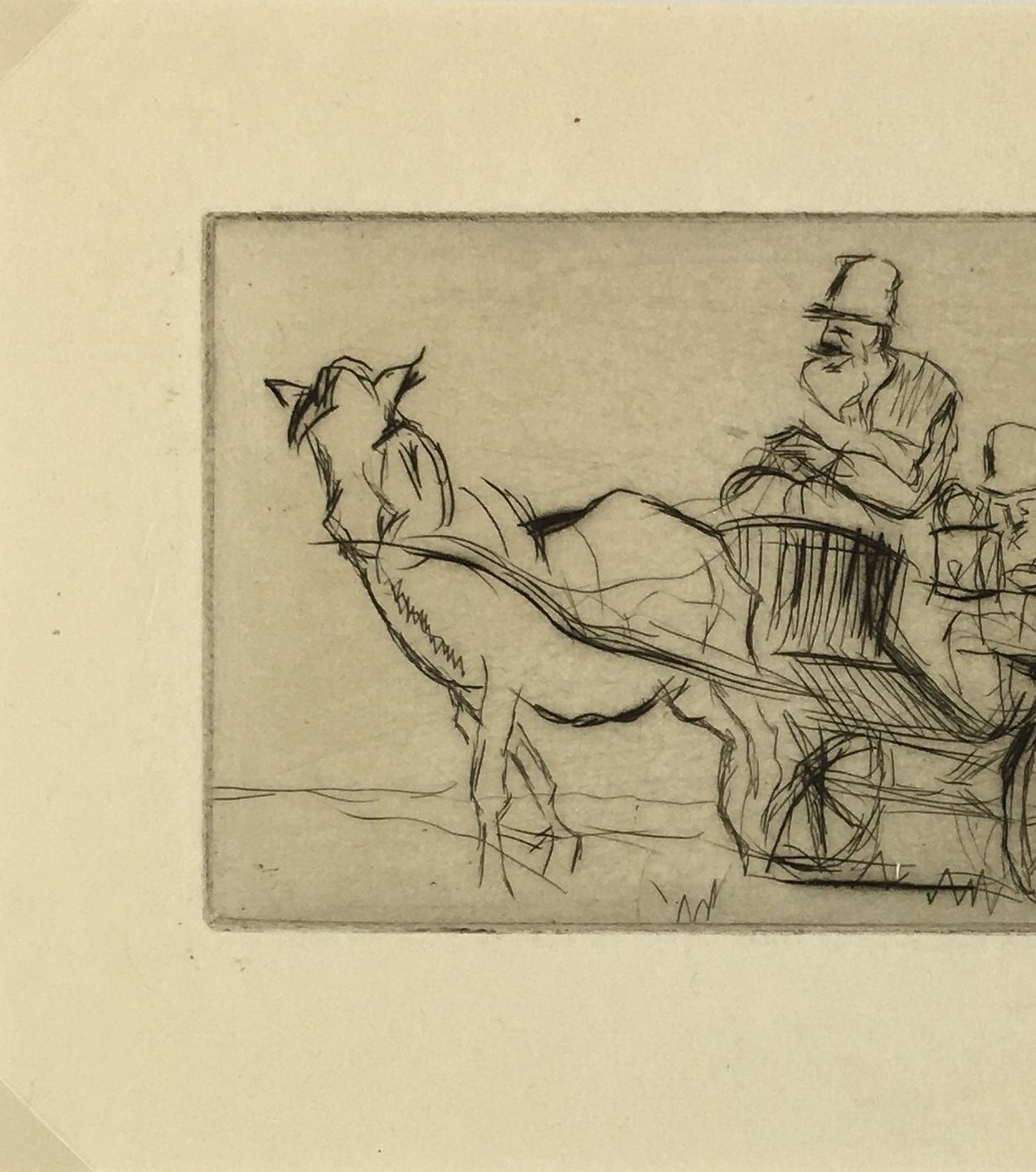 Original Art on paper displayed on a white mat with a gold border. Mat fits a standard-size frame. Archival plastic sleeve and Certificate of Authenticity included. Original Art, 7″W x 4.25″H; mat, 16″W x 20″H.