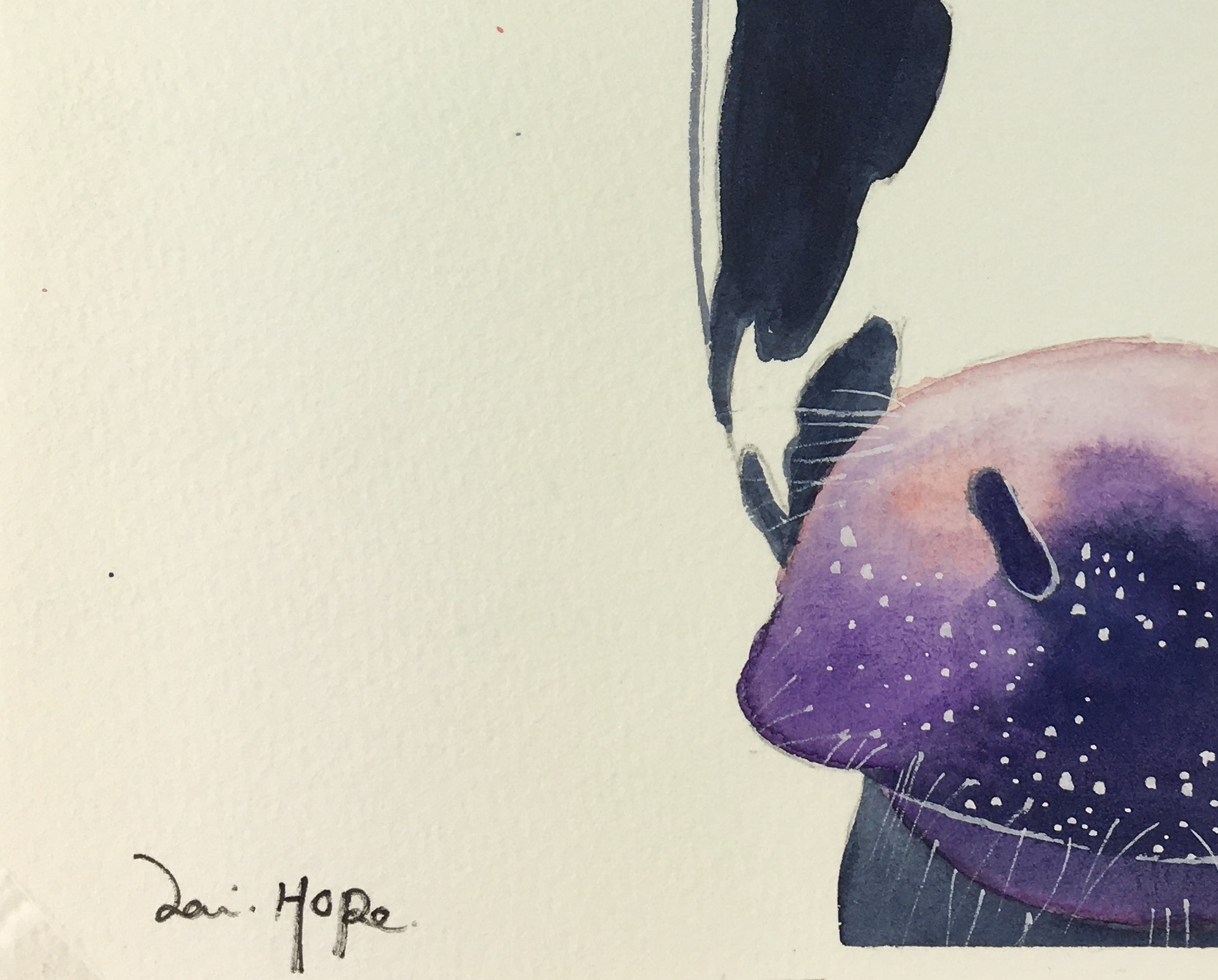 Original Art on paper displayed on a white mat with a gold border. Mat fits a standard-size frame. Archival plastic sleeve and Certificate of Authenticity included. Original Art, 11.75″W x 8.25″H; mat, 16″W x 20″H.