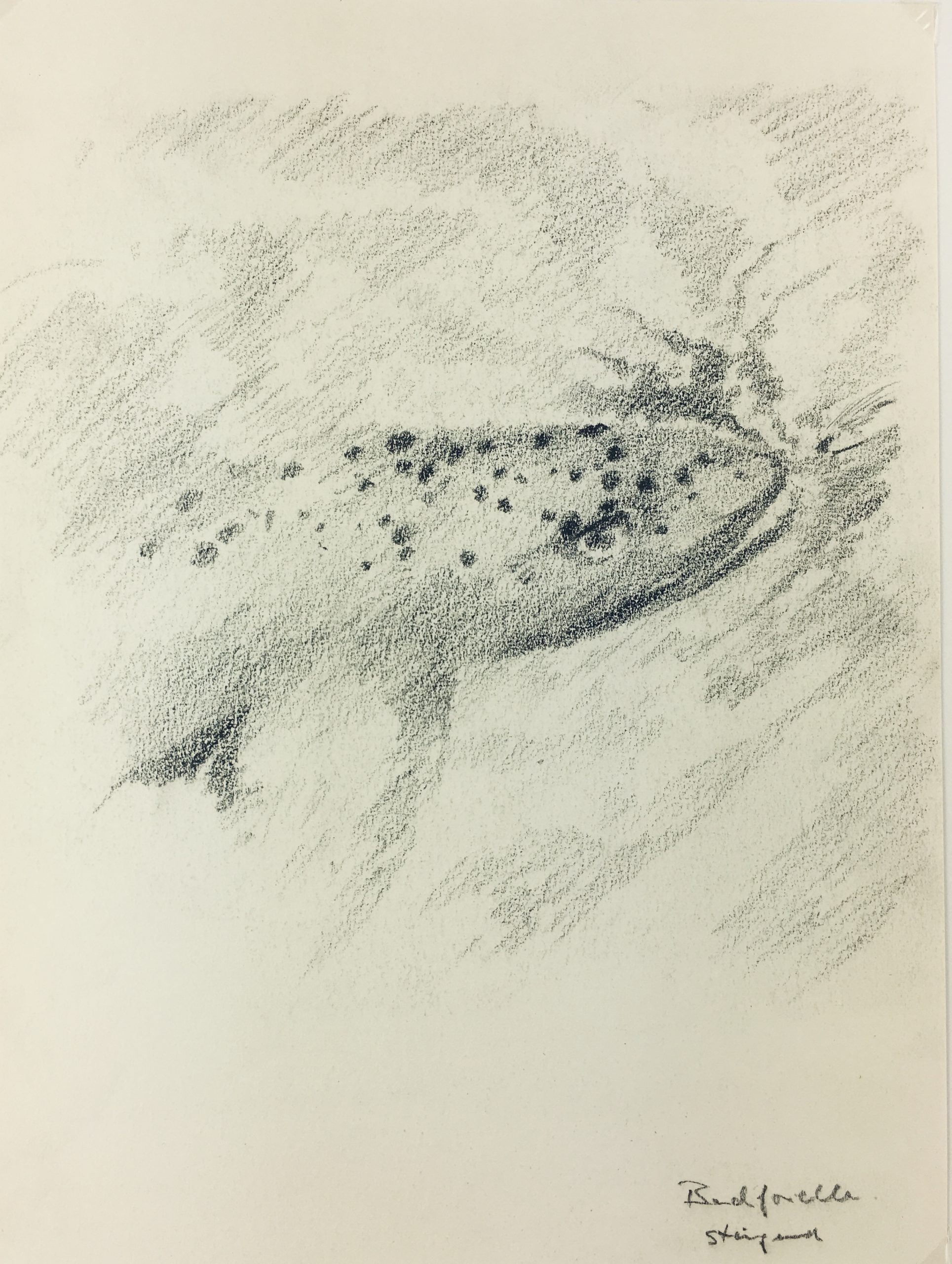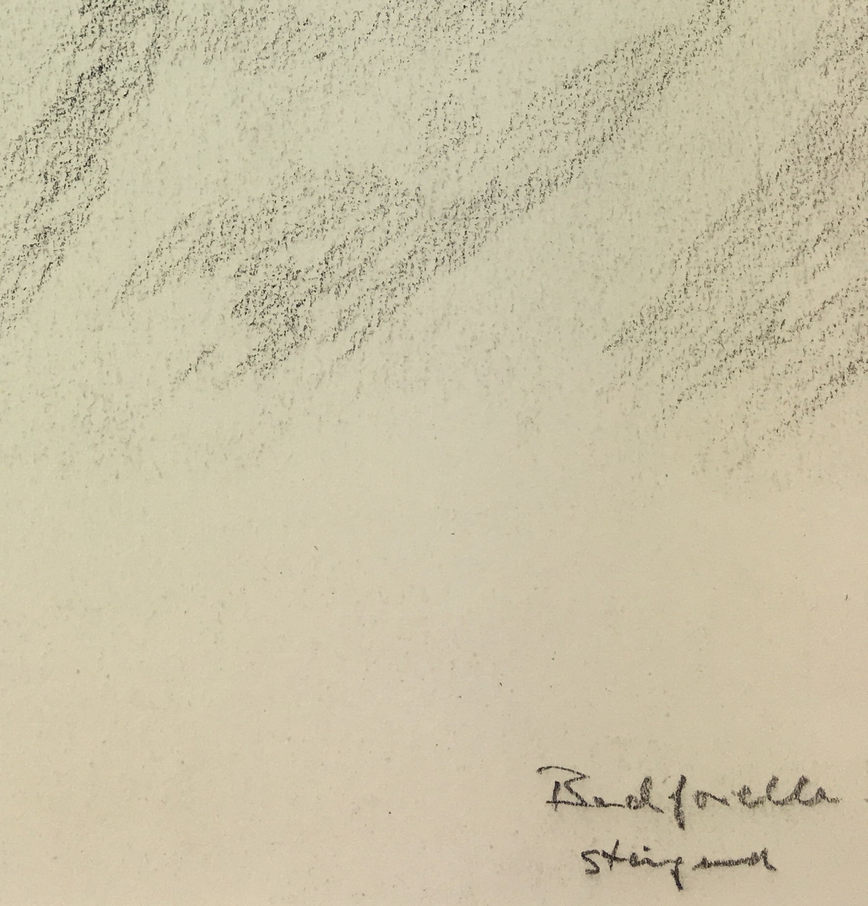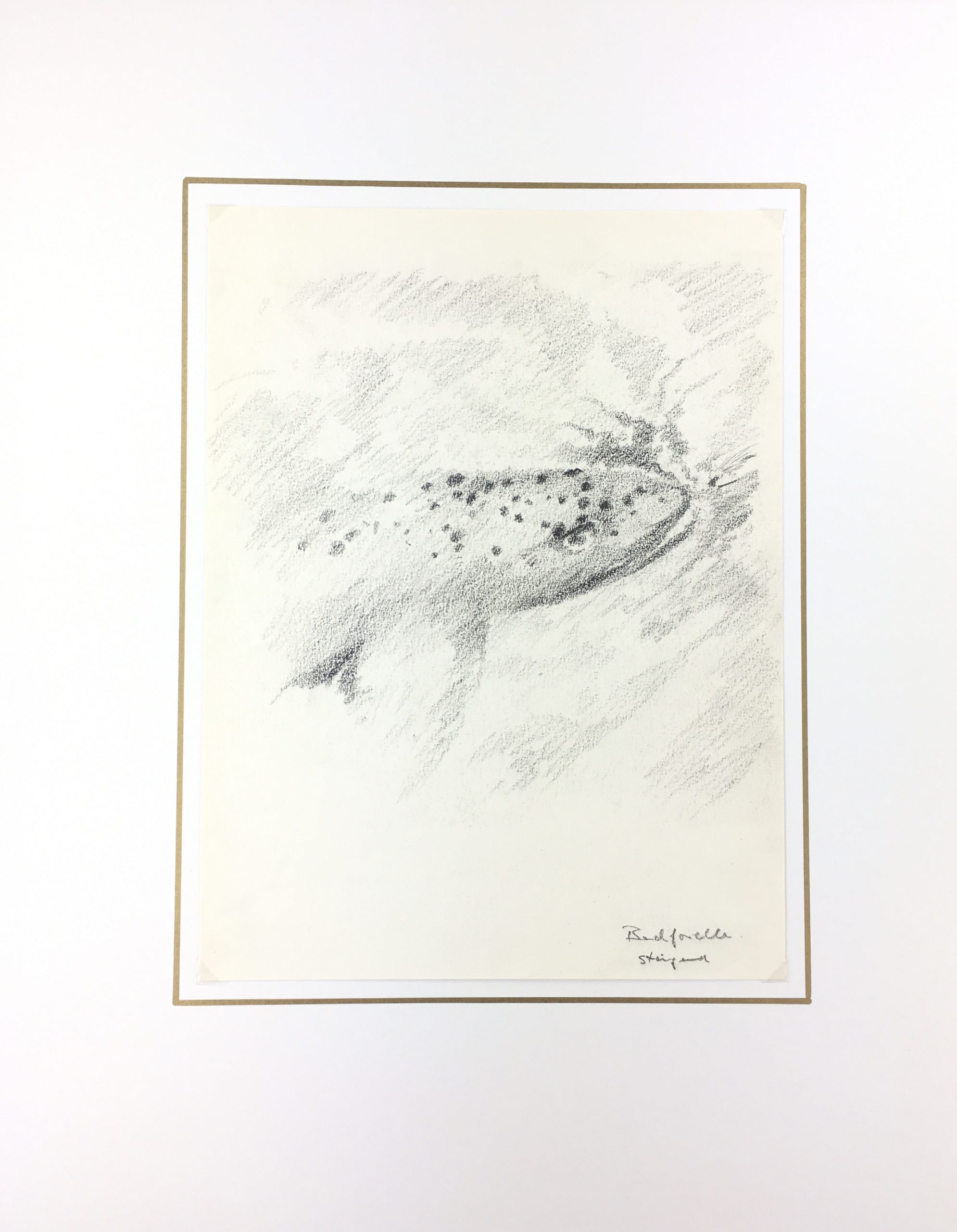 Original Art on paper displayed on a white mat with a gold border. Mat fits a standard-size frame. Archival plastic sleeve and Certificate of Authenticity included. Original Art, 9.25″W x 12.25″H; mat, 16″W x 20″H.