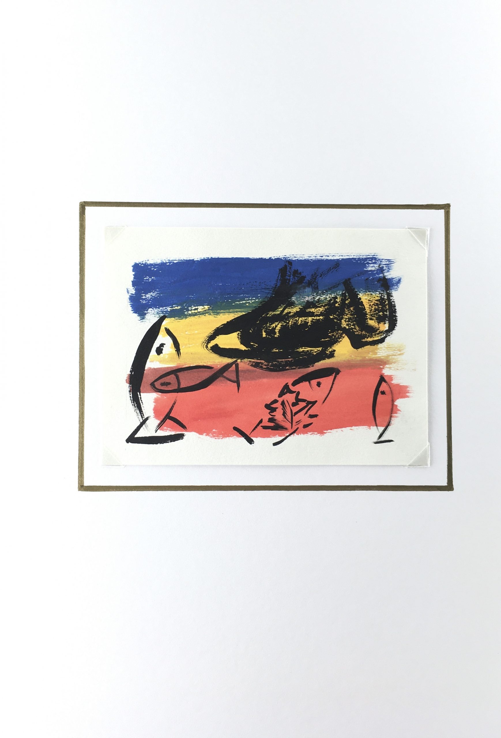 Original Art on paper displayed on a white mat with a gold border. Mat fits a standard-size frame. Archival plastic sleeve and Certificate of Authenticity included. Original Art, 6″W x 4.25″H; mat, 12″W x 16″H.