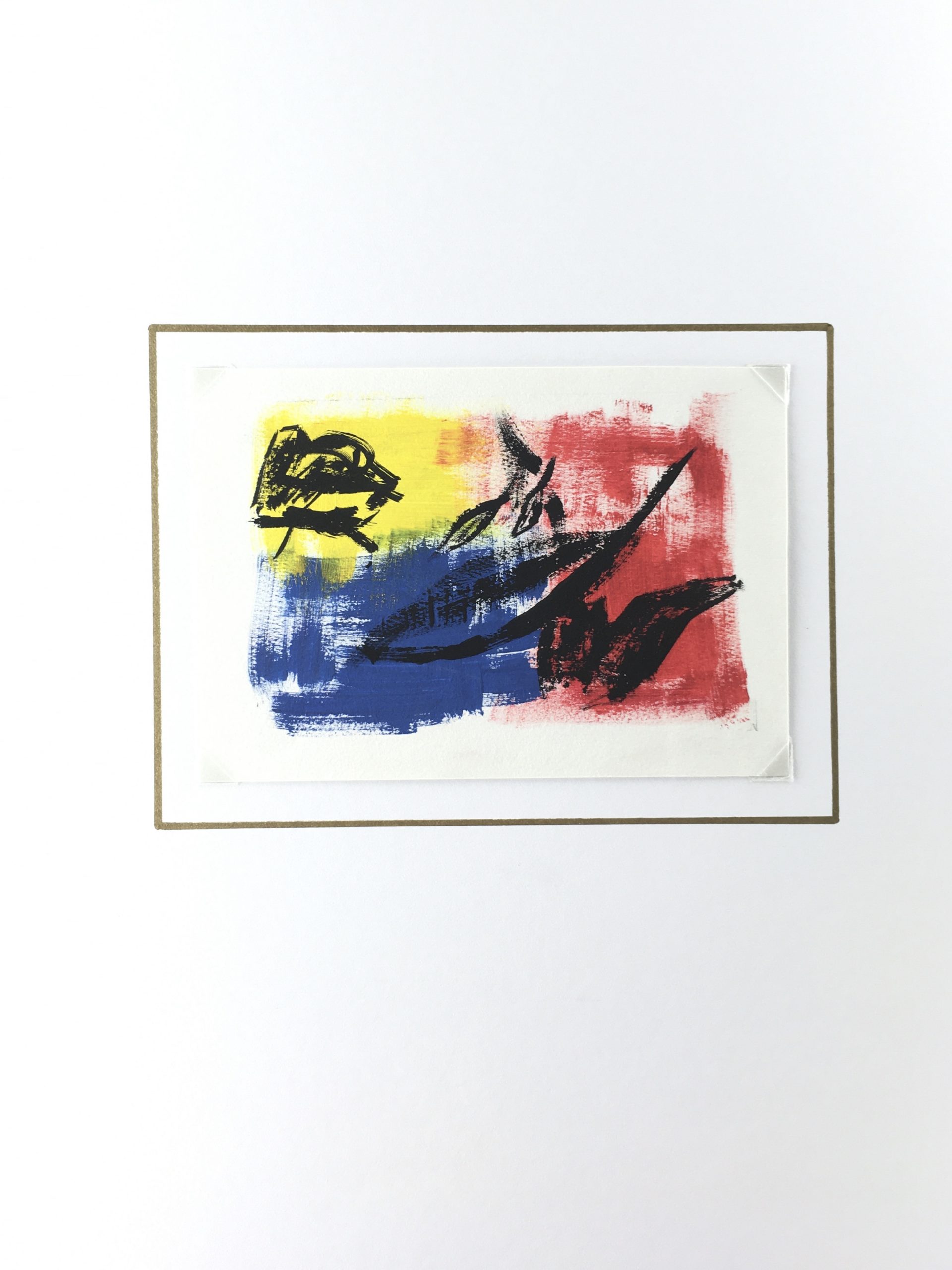 Original Art on paper displayed on a white mat with a gold border. Mat fits a standard-size frame. Archival plastic sleeve and Certificate of Authenticity included. Original Art, 6″W x 4.25″H; mat, 12″W x 16″H.