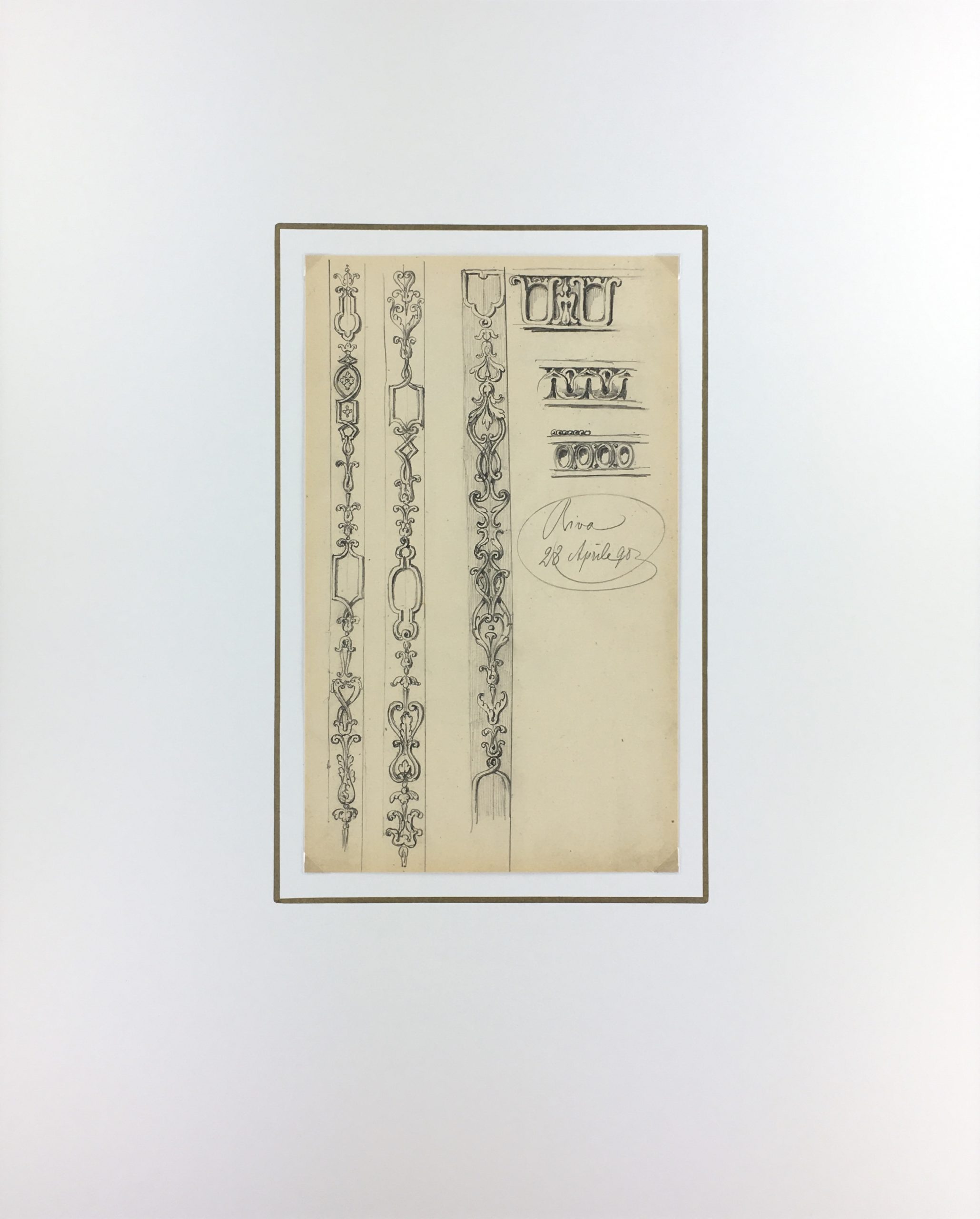 Original Art on paper displayed on a white mat with a gold border. Mat fits a standard-size frame. Archival plastic sleeve and Certificate of Authenticity included. Original Art, 6″W x 10″H; mat, 16″W x 20″H.