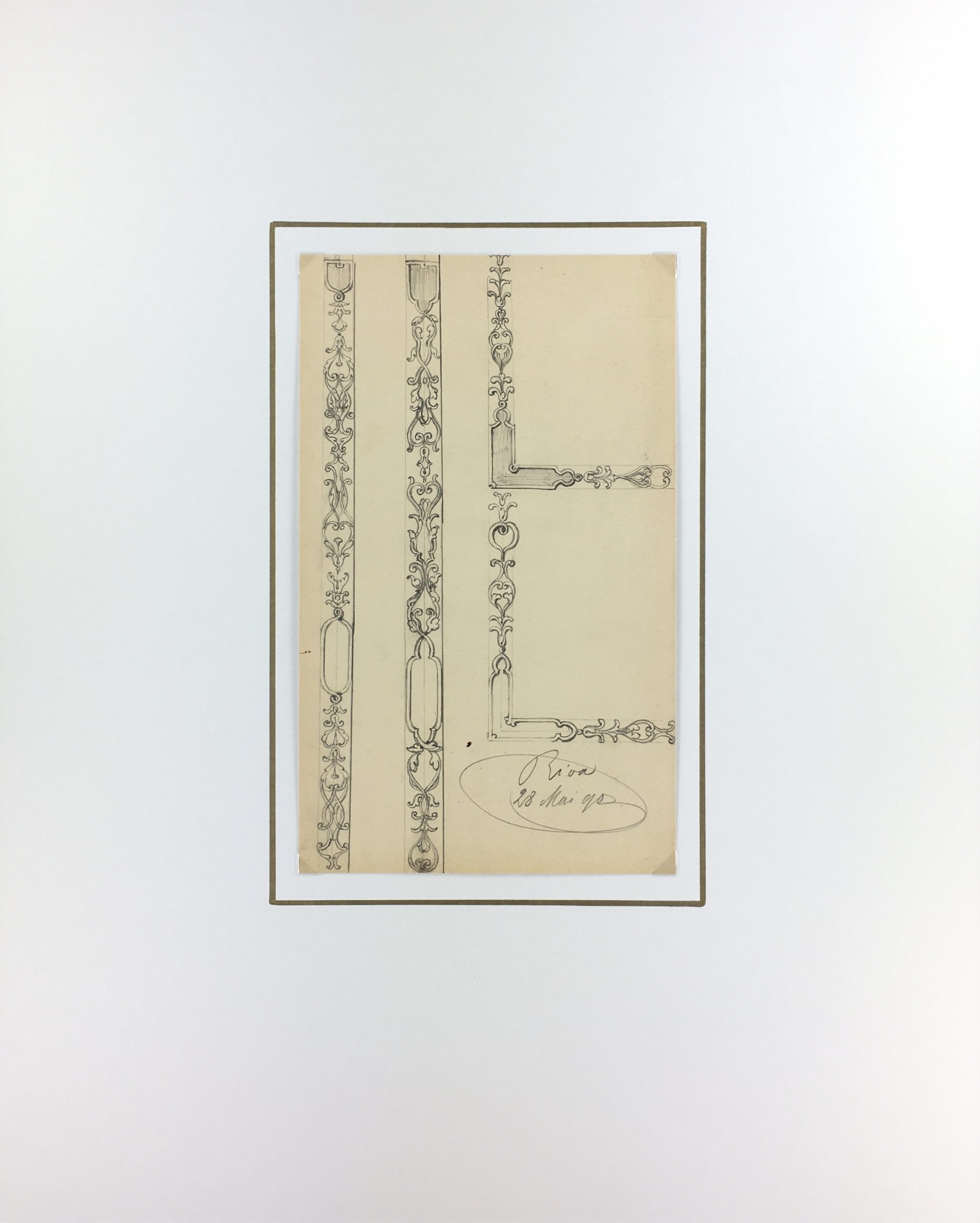 Original Art on paper displayed on a white mat with a gold border. Mat fits a standard-size frame. Archival plastic sleeve and Certificate of Authenticity included. Original Art, 6″W x 10″H; mat, 16″W x 20″H.