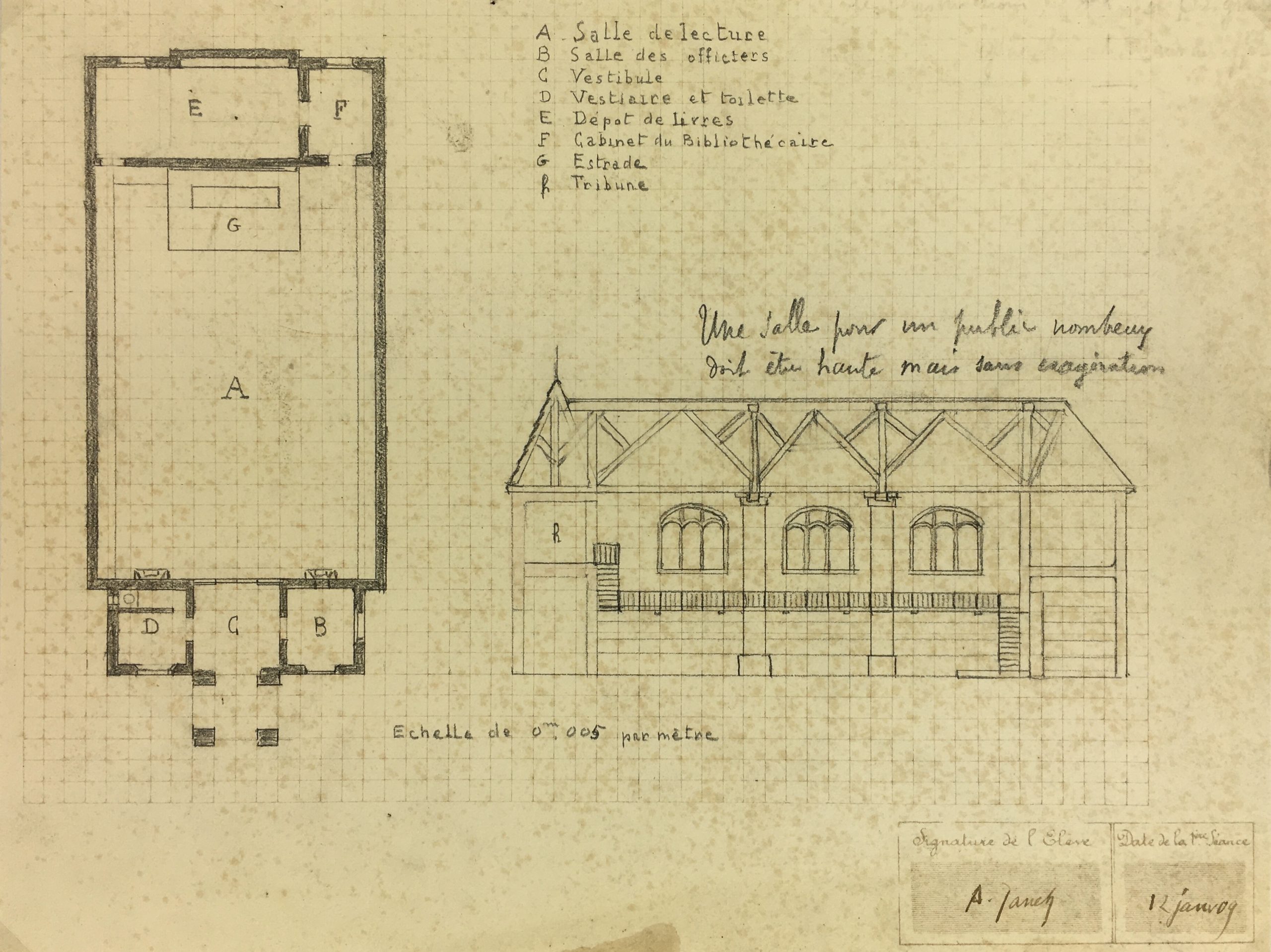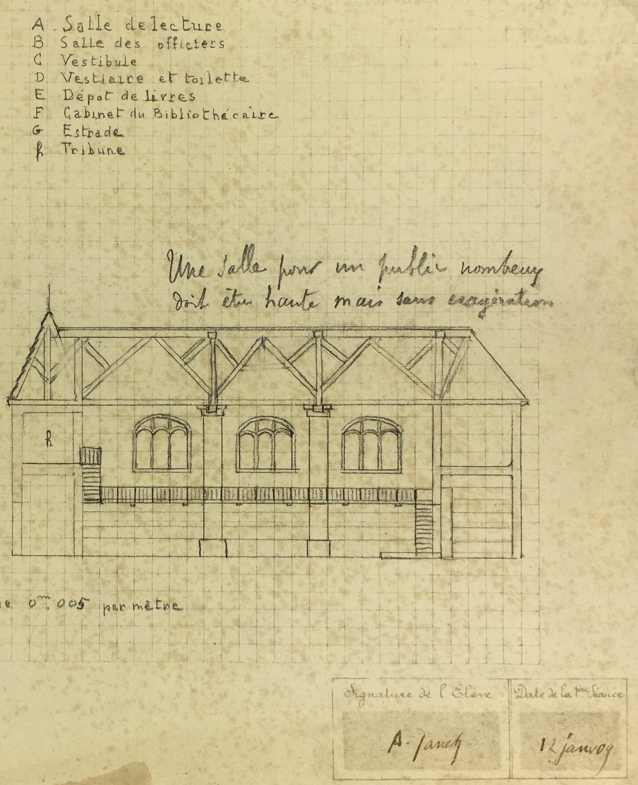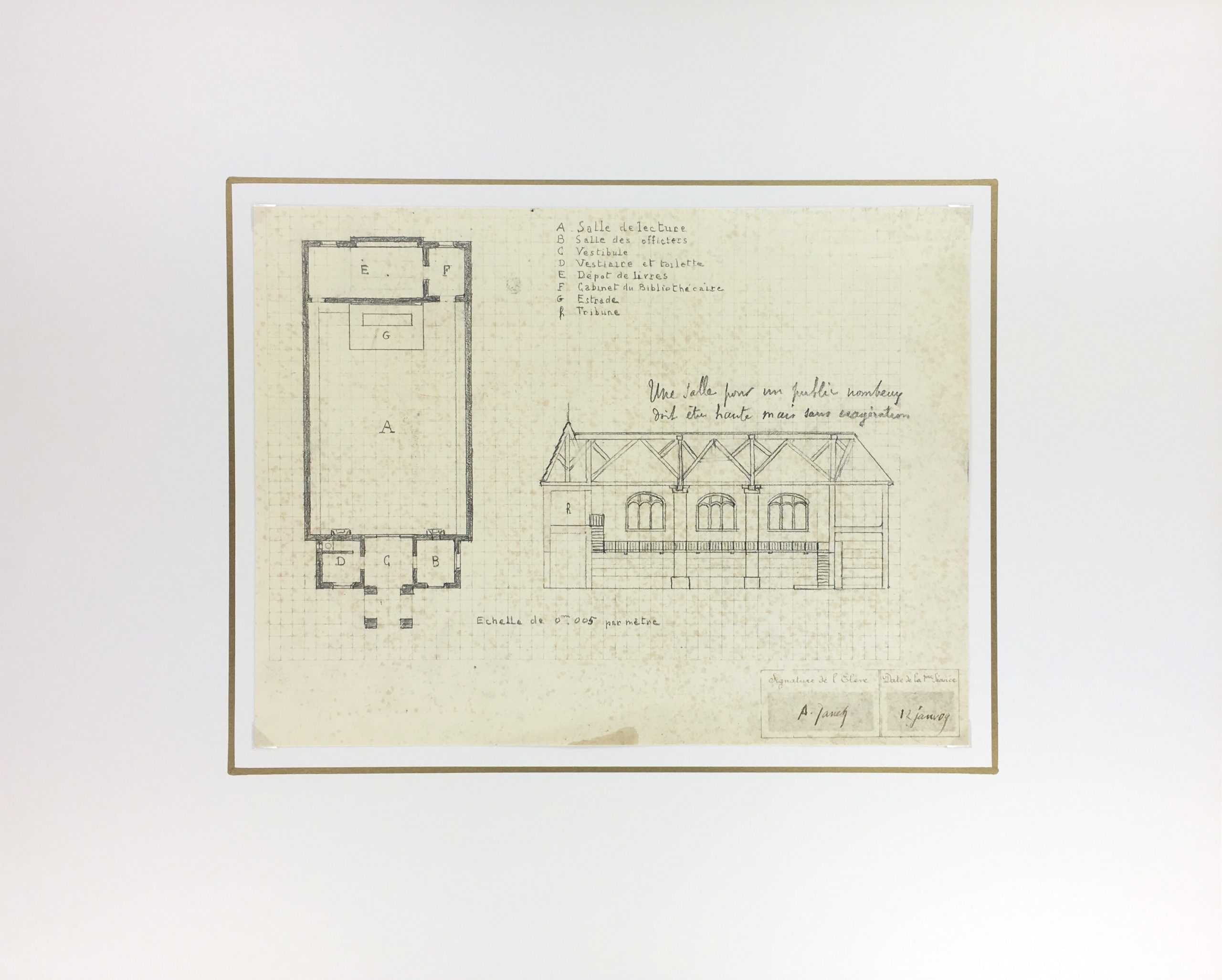 Architecture Original Art – Architectural Drawing – Town Hall, 1909