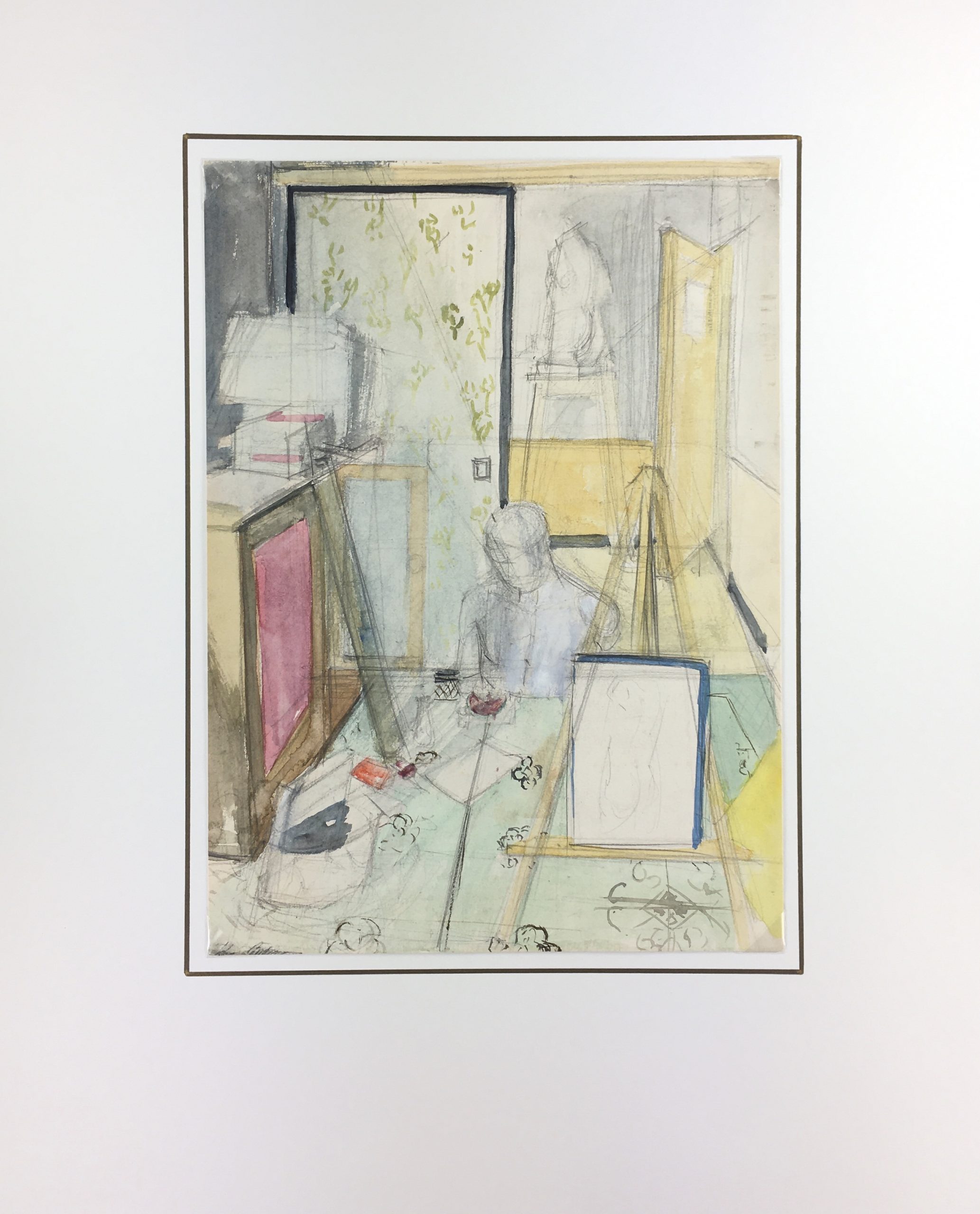Original Art on paper displayed on a white mat with a gold border. Mat fits a standard-size frame. Archival plastic sleeve and Certificate of Authenticity included. Original Art, 9.5″W x 13″H; mat, 16″W x 20″H.