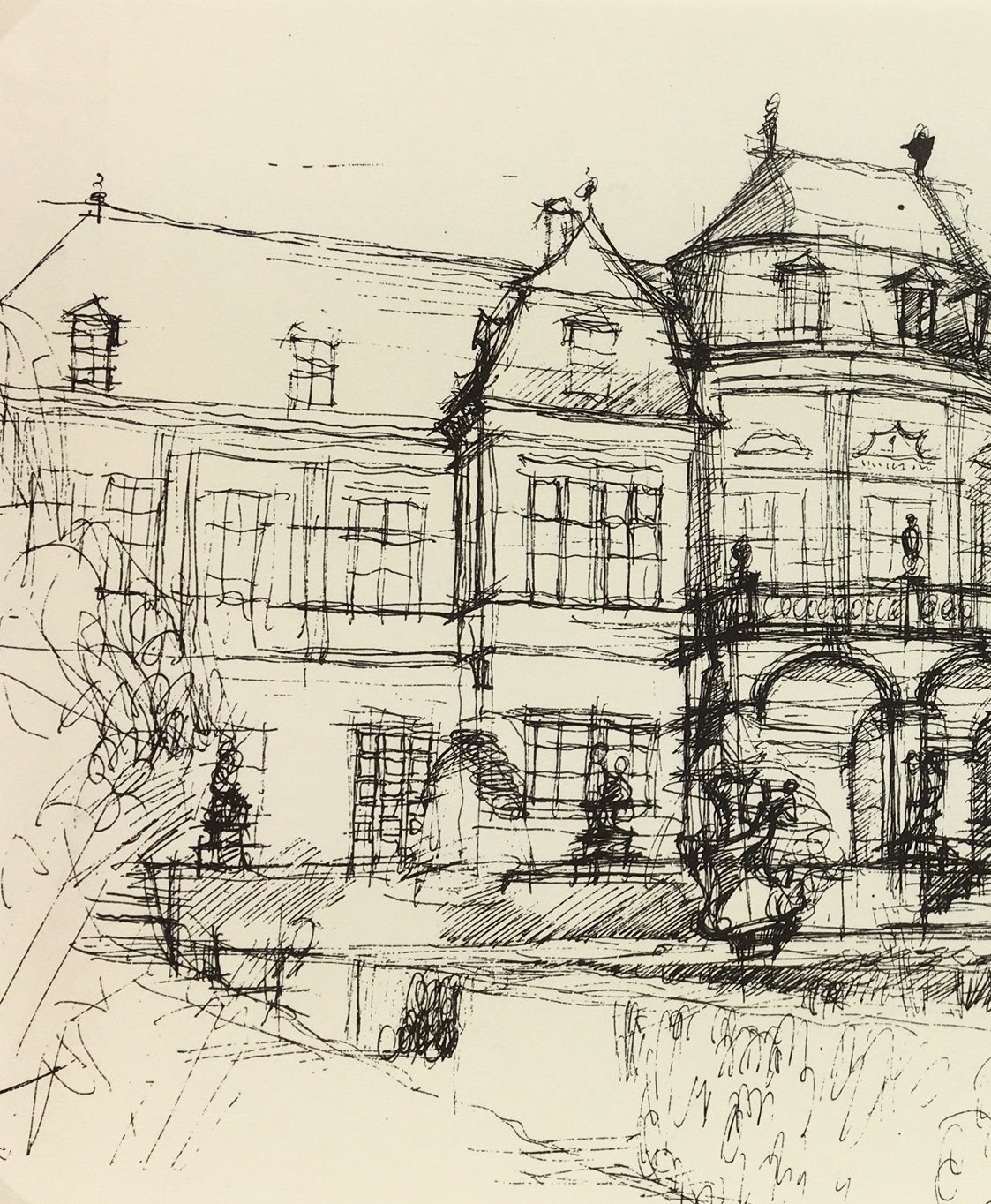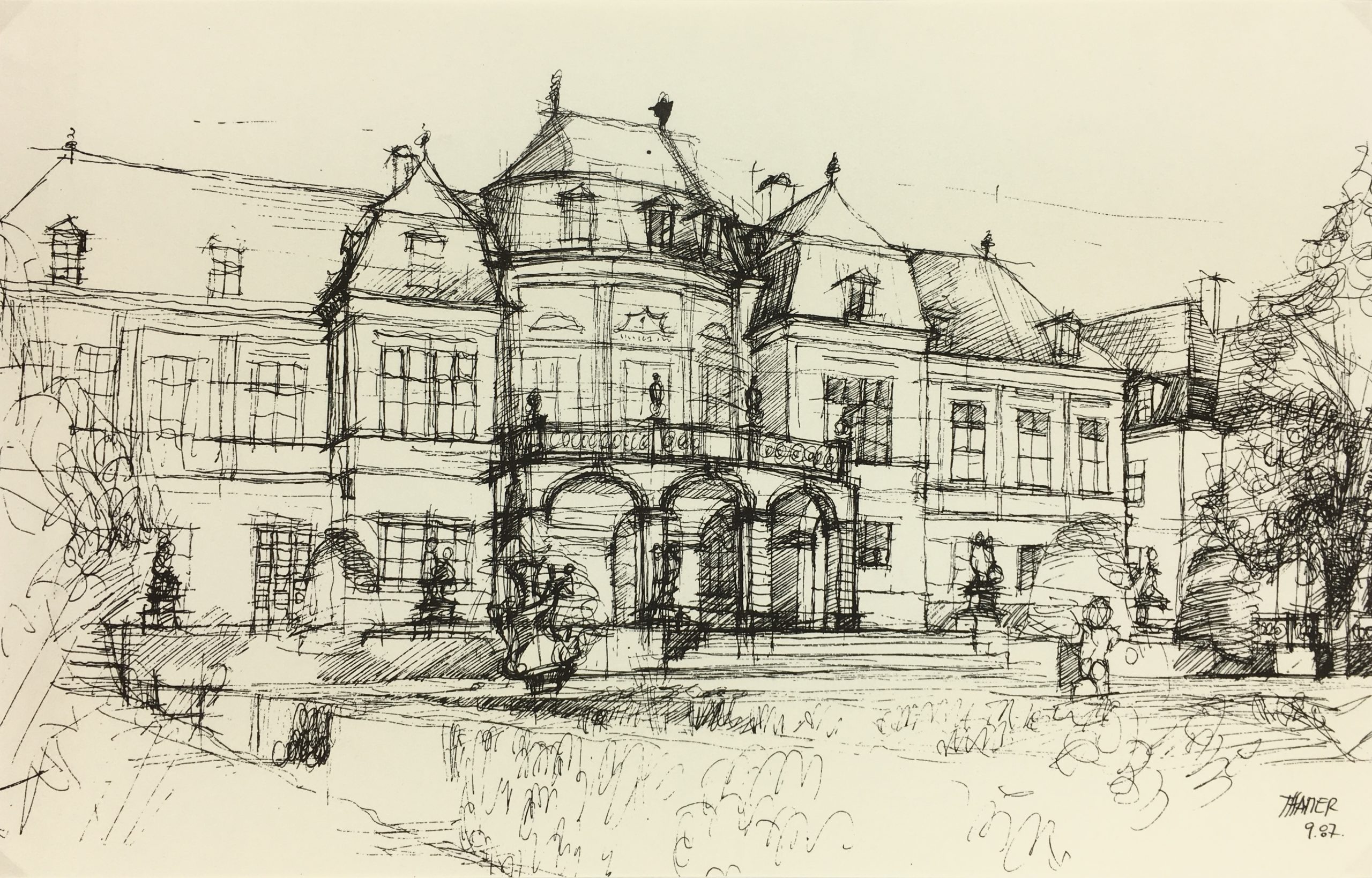 Original Art on paper displayed on a white mat with a gold border. Mat fits a standard-size frame. Archival plastic sleeve and Certificate of Authenticity included. Original Art, 13.25″W x 8.5″H; mat, 20″W x 16″H.