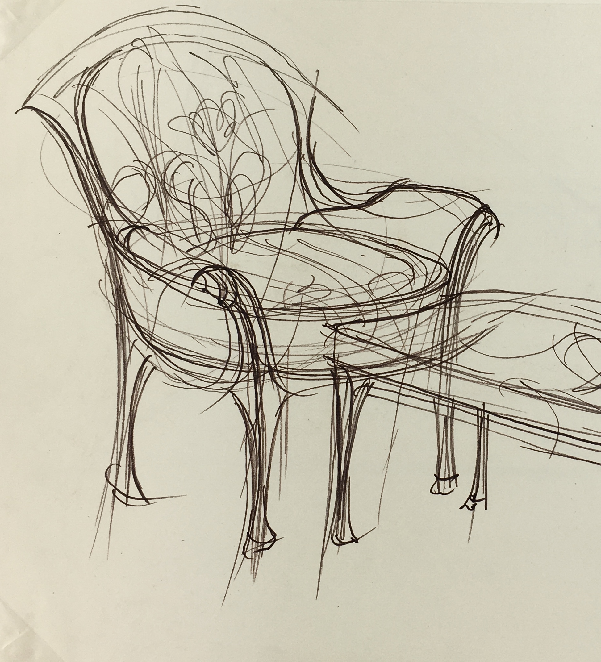 Architecture Original Art – French Furniture, Jane Courtel, 1970