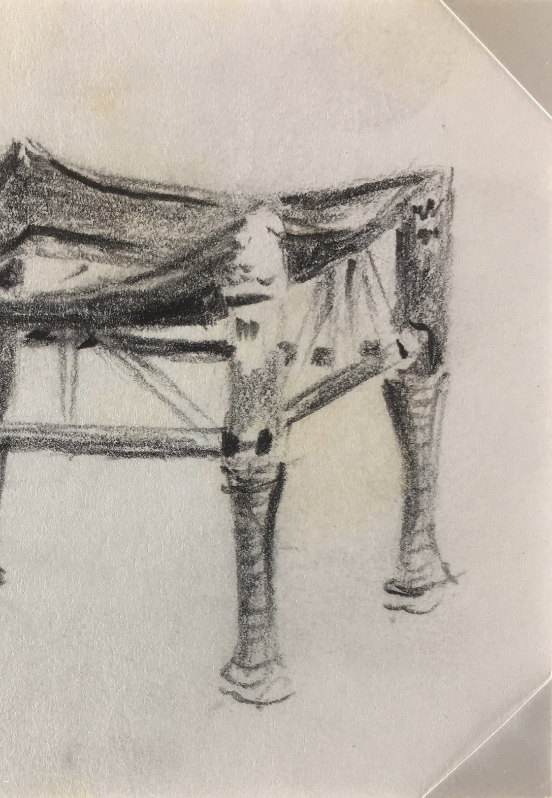Original Art on paper displayed on a white mat with a gold border. Mat fits a standard-size frame. Archival plastic sleeve and Certificate of Authenticity included. Original Art, 3.5″W x 3″H; mat, 12″W x 16″H.
