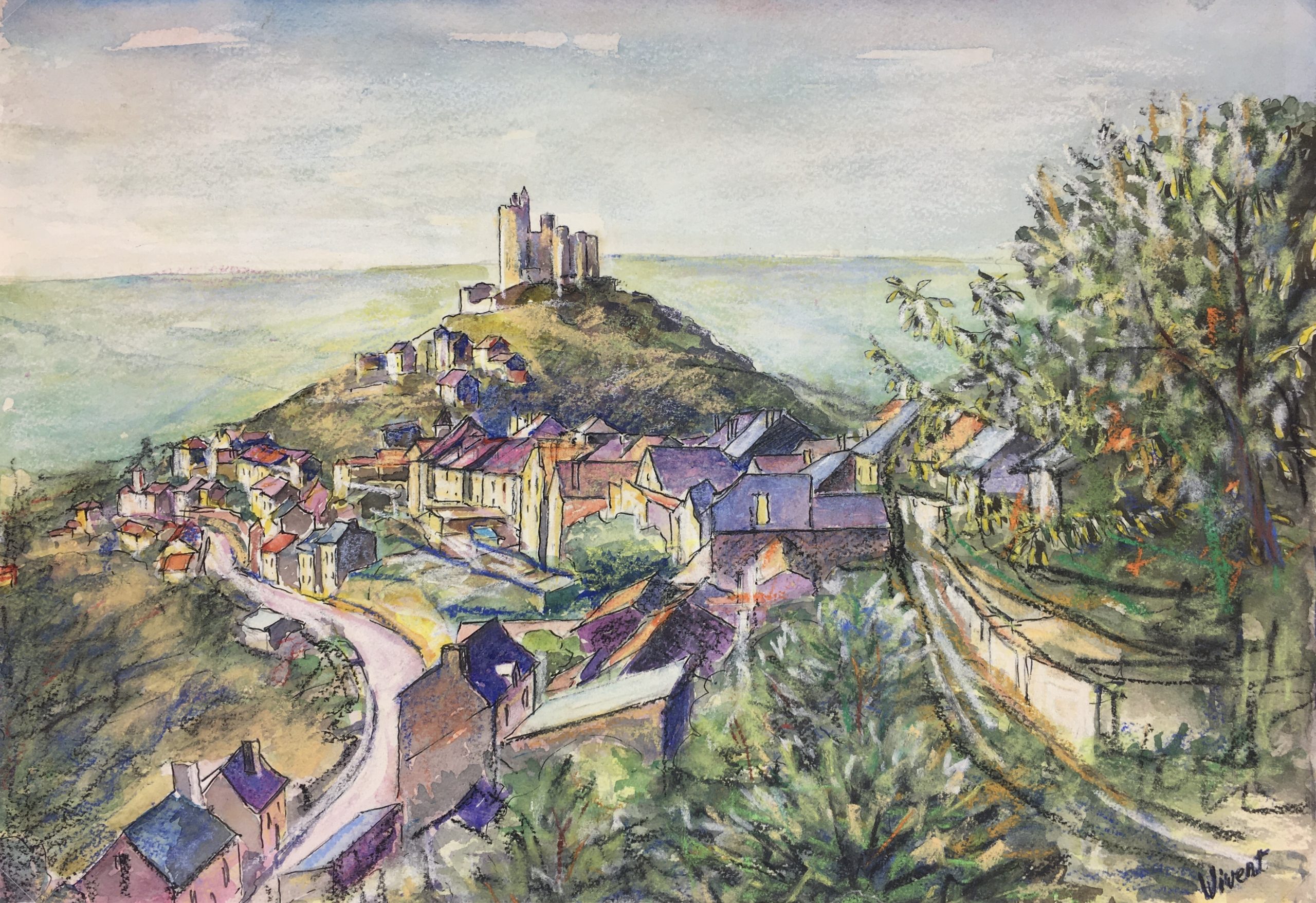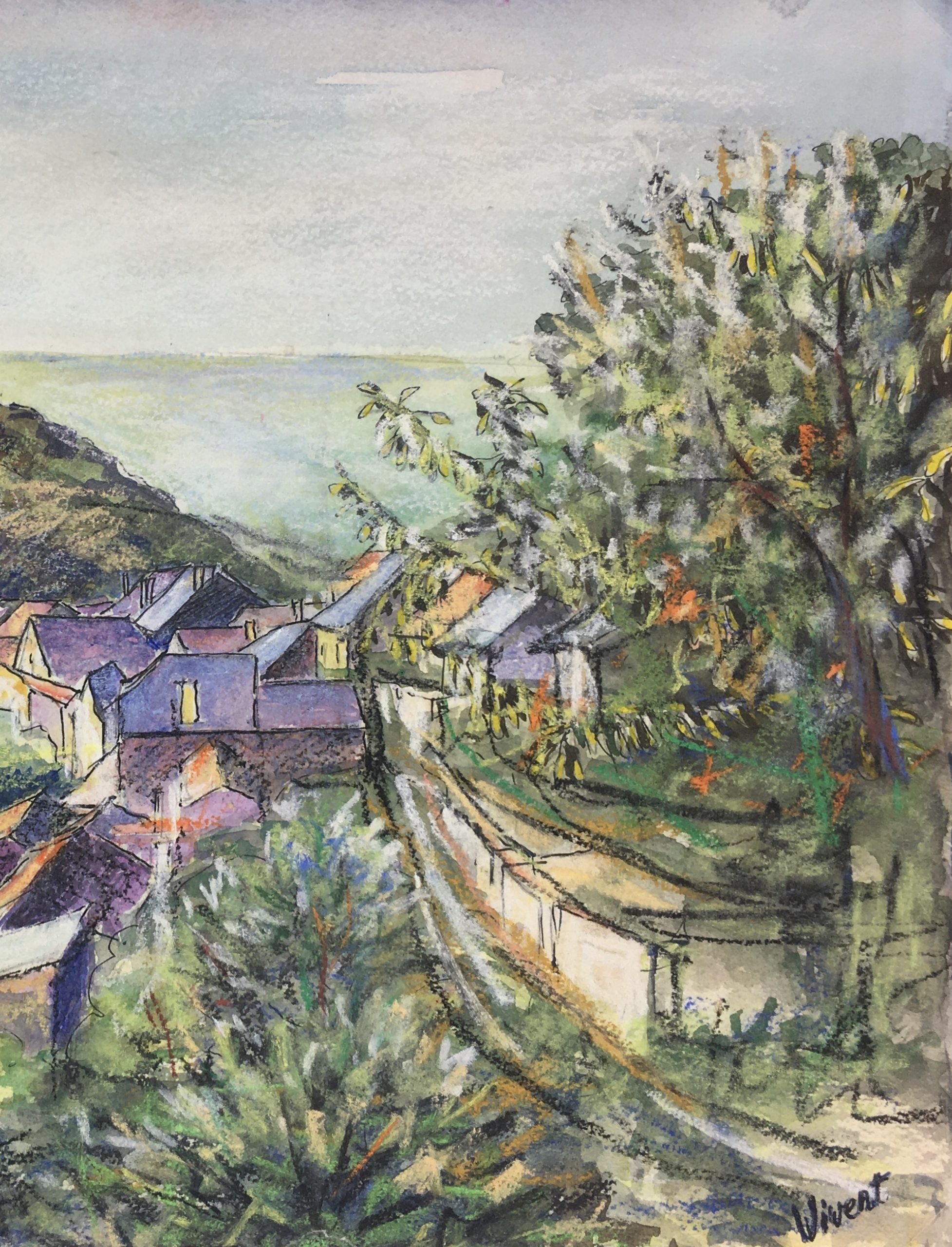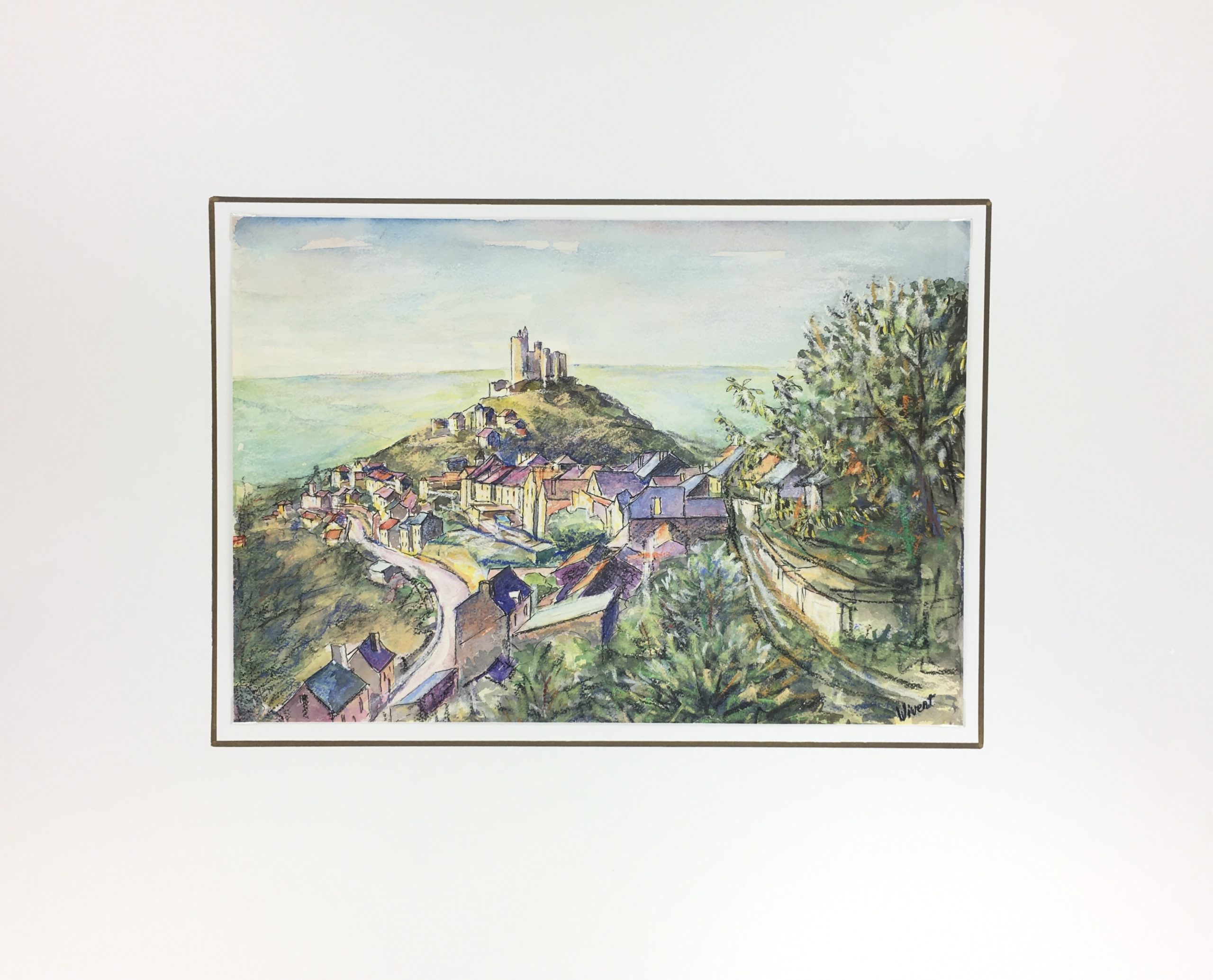 Original Art on paper displayed on a white mat with a gold border. Mat fits a standard-size frame. Archival plastic sleeve and Certificate of Authenticity included. Original Art, 11.75″W x 8.25″H; mat, 20″W x 16″H.