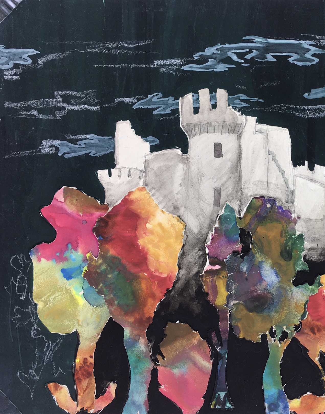 Original Art on paper displayed on a white mat with a gold border. Mat fits a standard-size frame. Archival plastic sleeve and Certificate of Authenticity included. Original Art, 12.25″W x 9.25″H; mat, 20″W x 16″H.