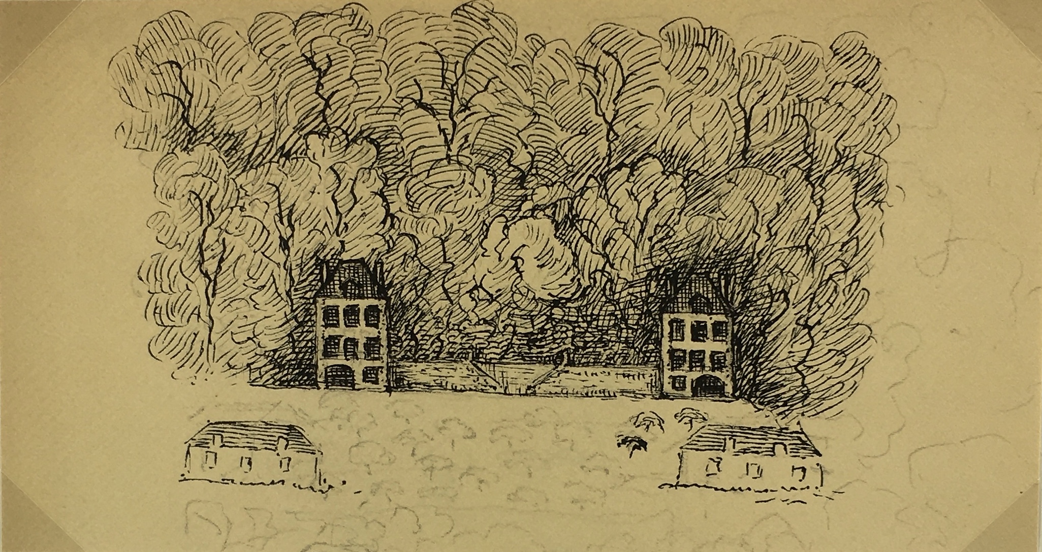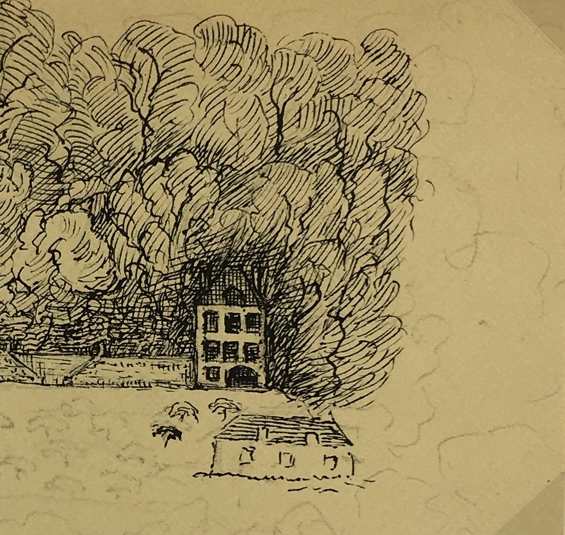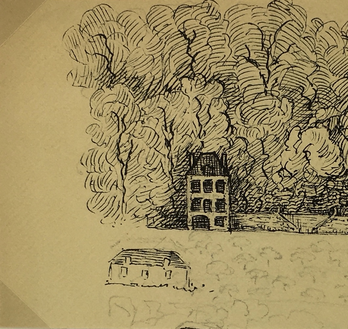 Original Art on paper displayed on a white mat with a gold border. Mat fits a standard-size frame. Archival plastic sleeve and Certificate of Authenticity included. Original Art, 6.25″W x 3.25″H; mat, 16″W x 20″H.
