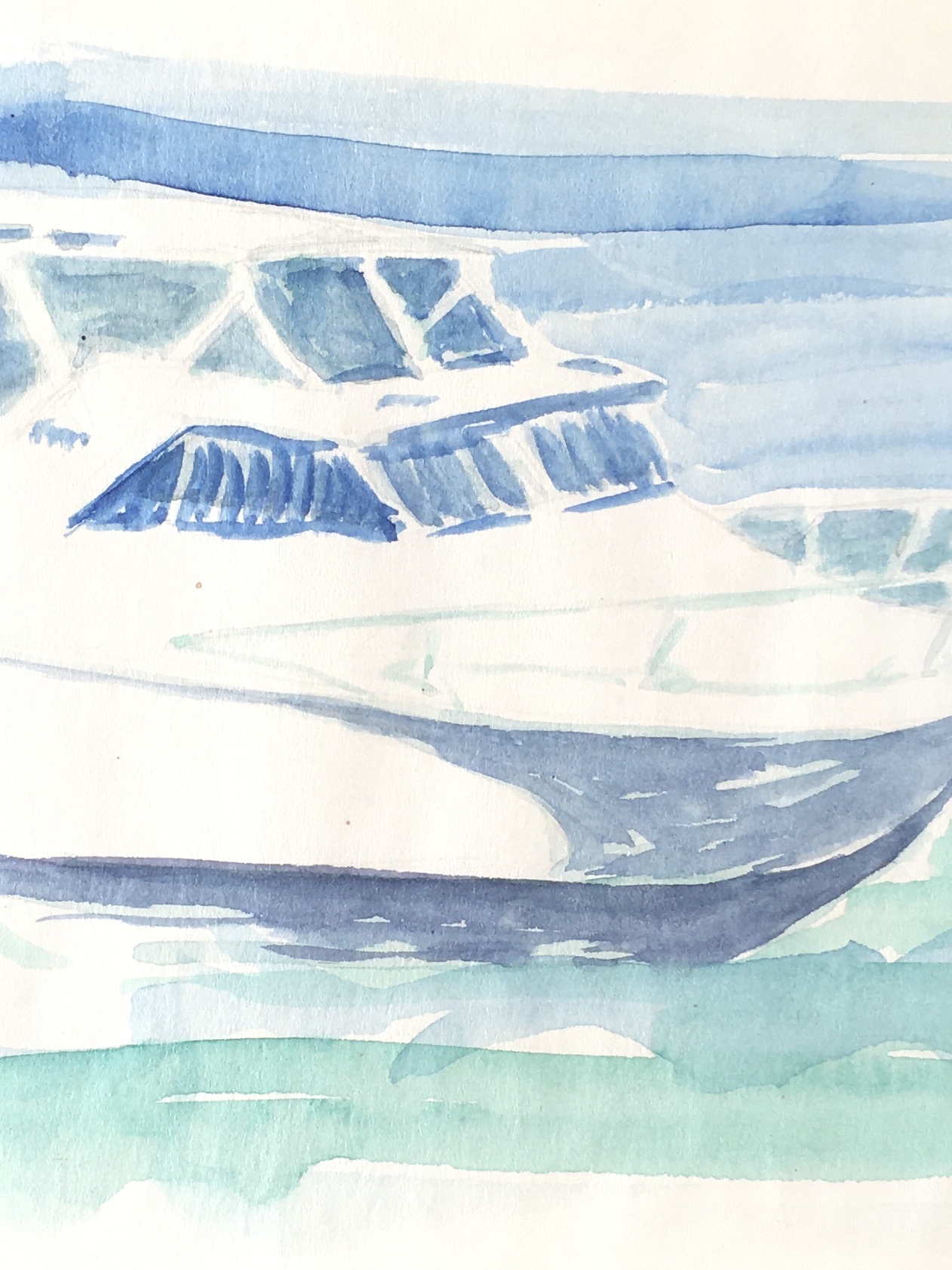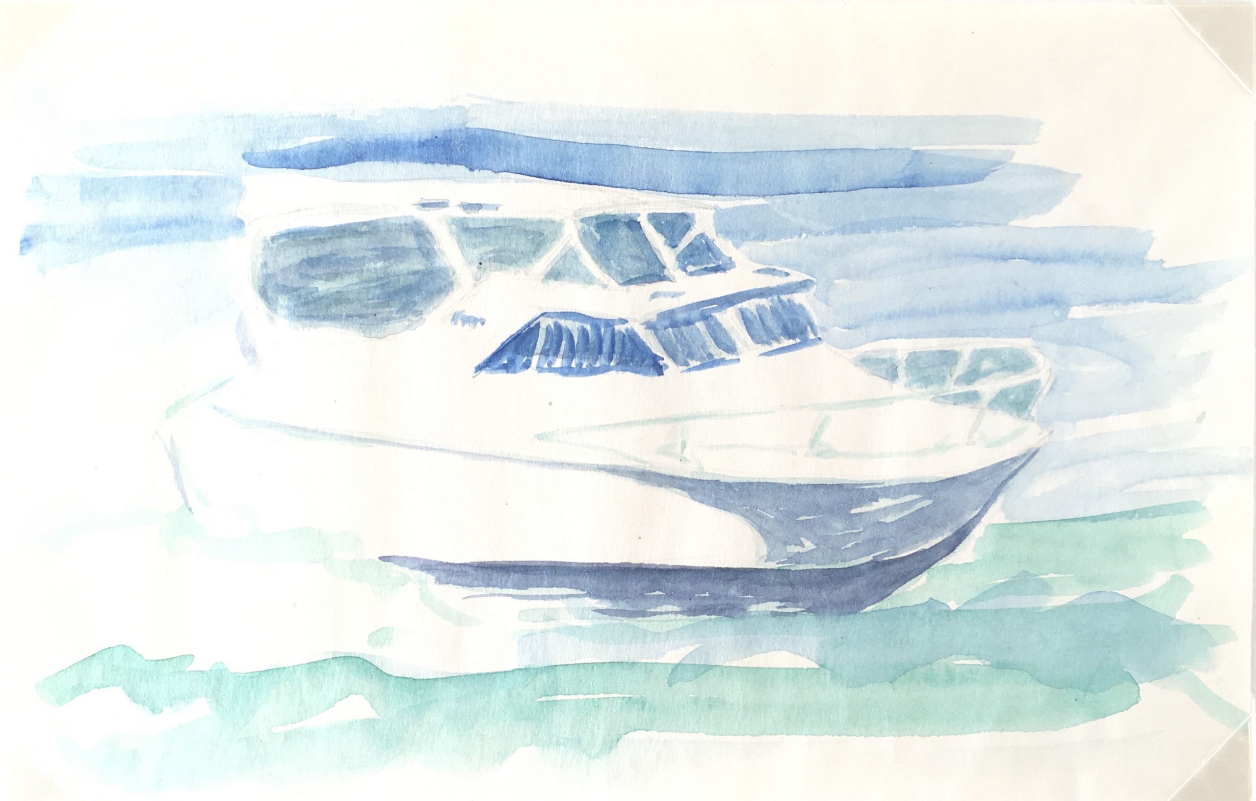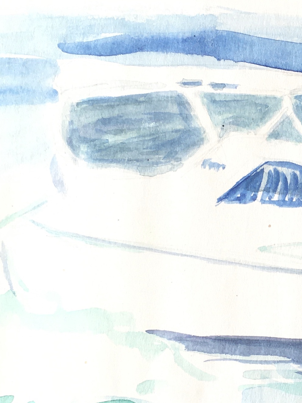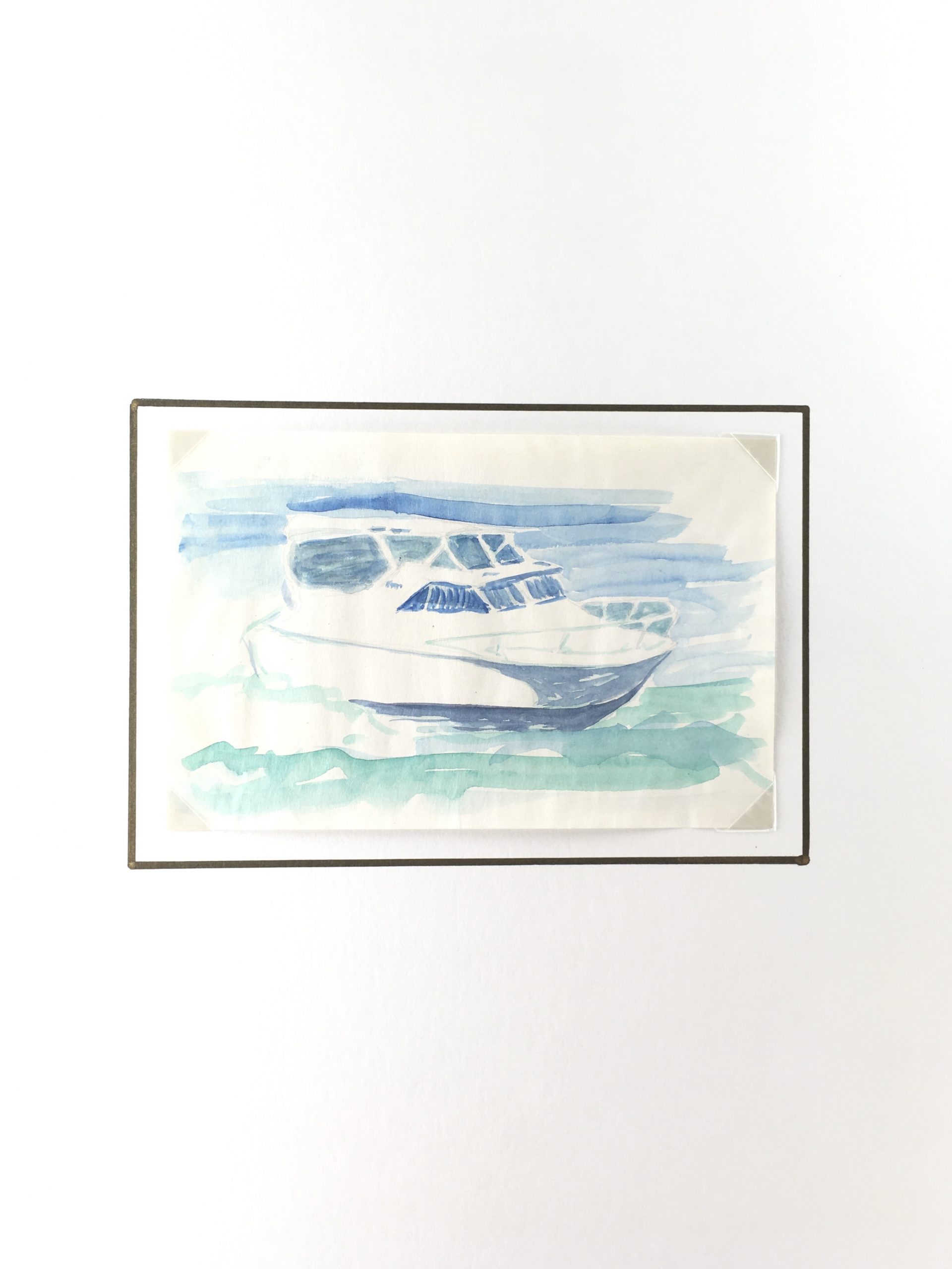 Original Art on paper displayed on a white mat with a gold border. Mat fits a standard-size frame. Archival plastic sleeve and Certificate of Authenticity included. Original Art, 7″W x 4.5″H; mat, 12″W x 16″H.