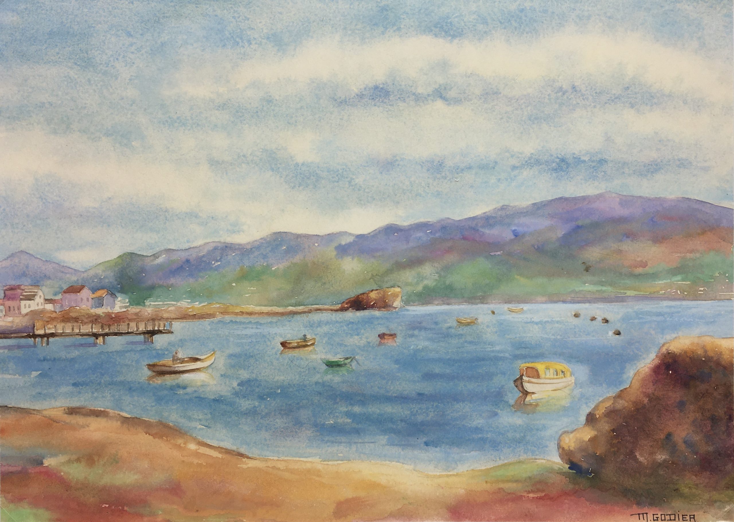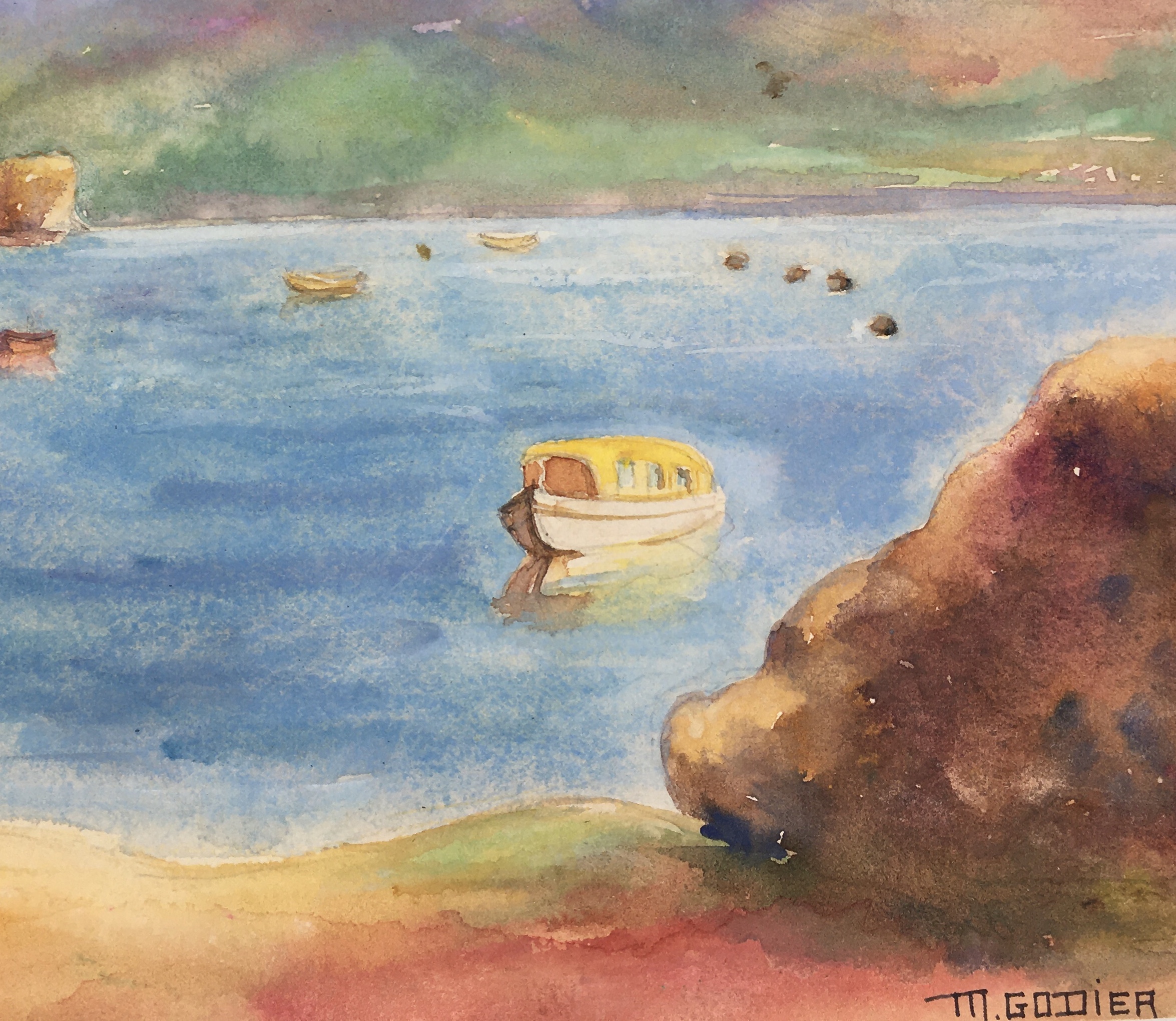 Original Art on paper displayed on a white mat with a gold border. Mat fits a standard-size frame. Archival plastic sleeve and Certificate of Authenticity included. Original Art, 14″W x 10.25″H; mat, 16″W x 20″H.
