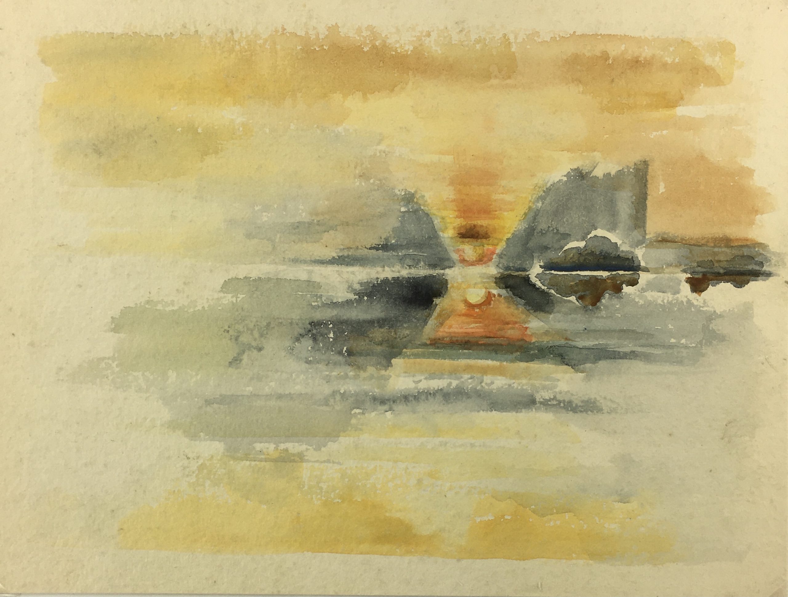 Original Art on paper displayed on a white mat with a gold border. Mat fits a standard-size frame. Archival plastic sleeve and Certificate of Authenticity included. Original Art, 10.5″W x 8.5″H; mat, 16″W x 20″H.