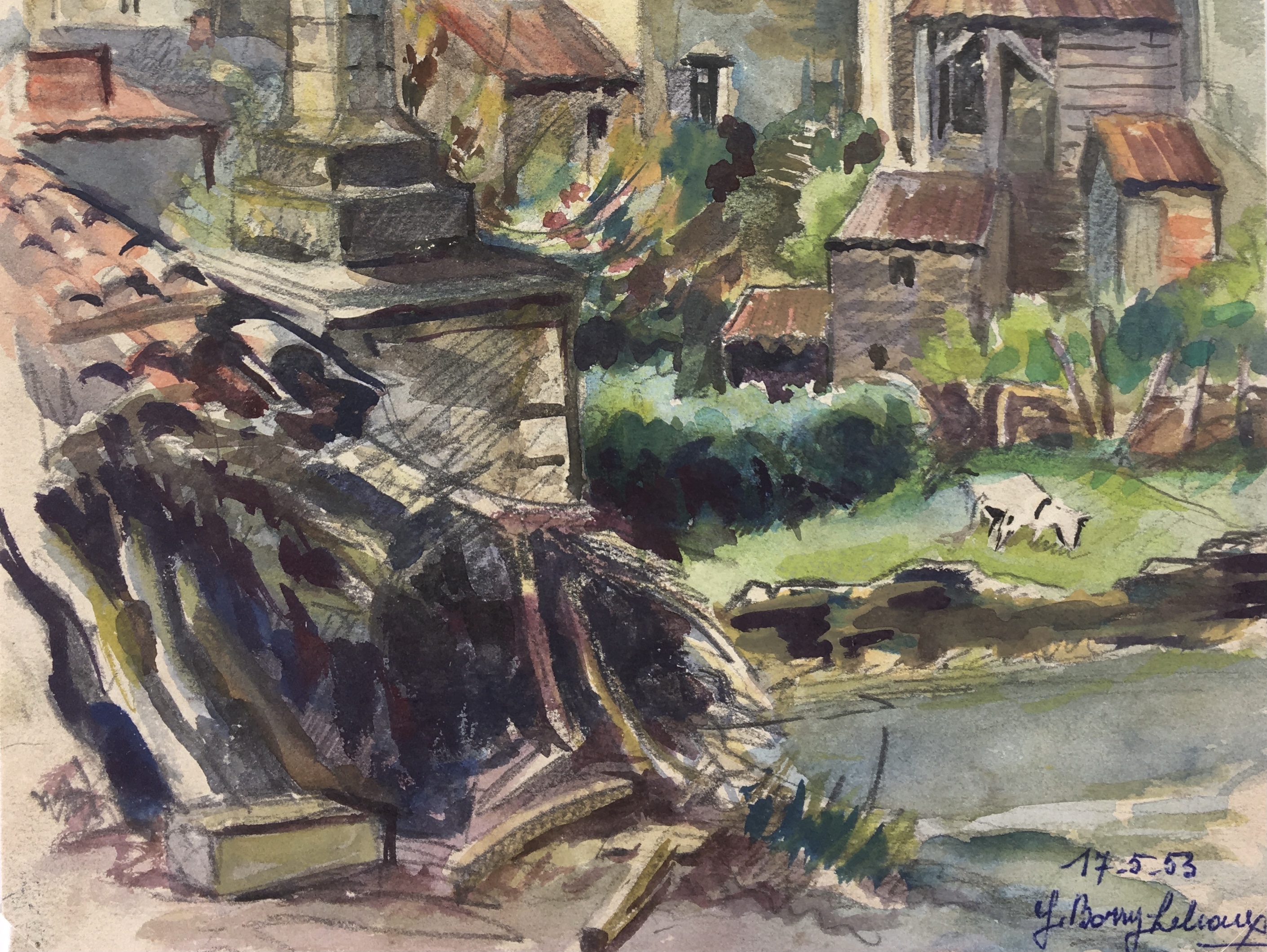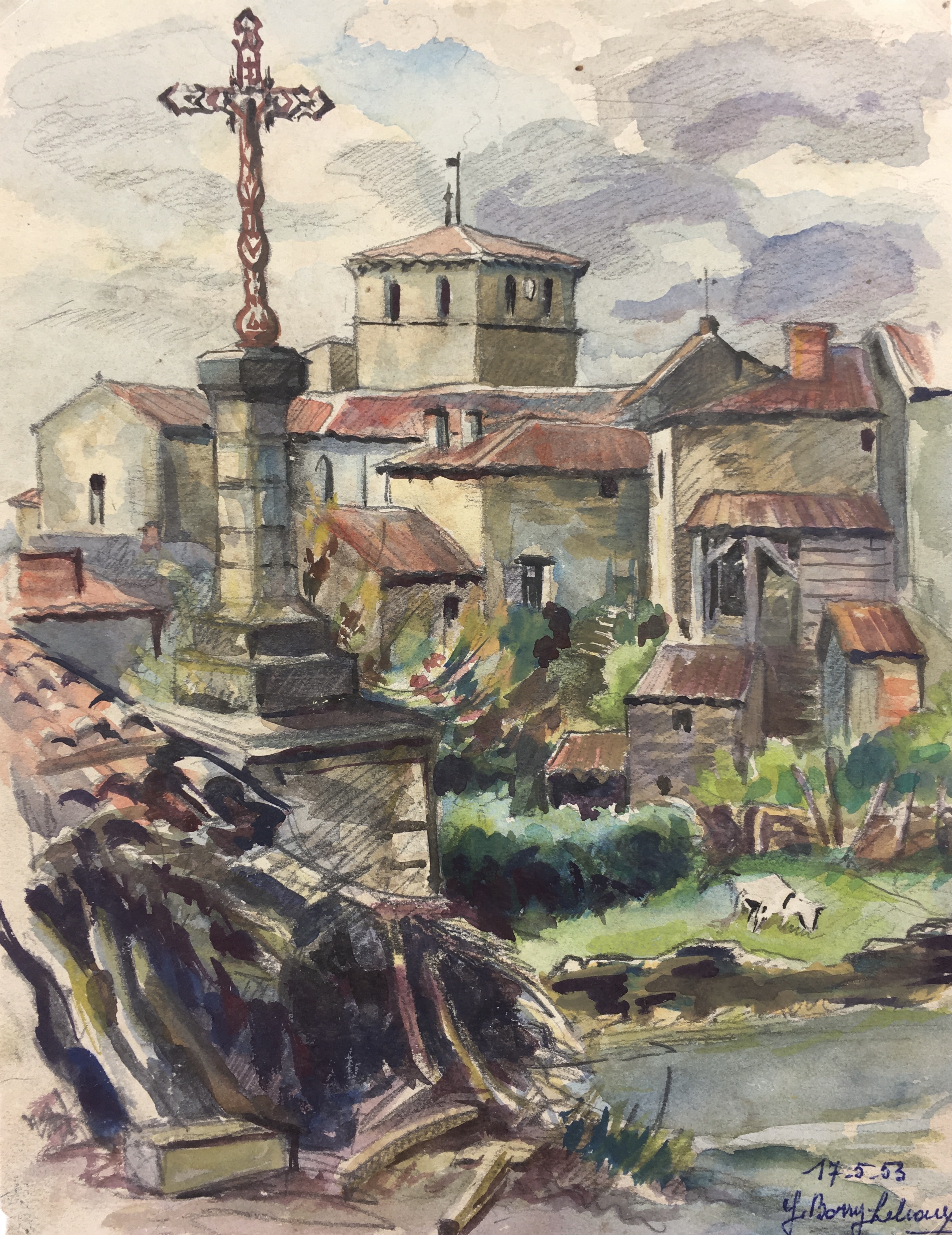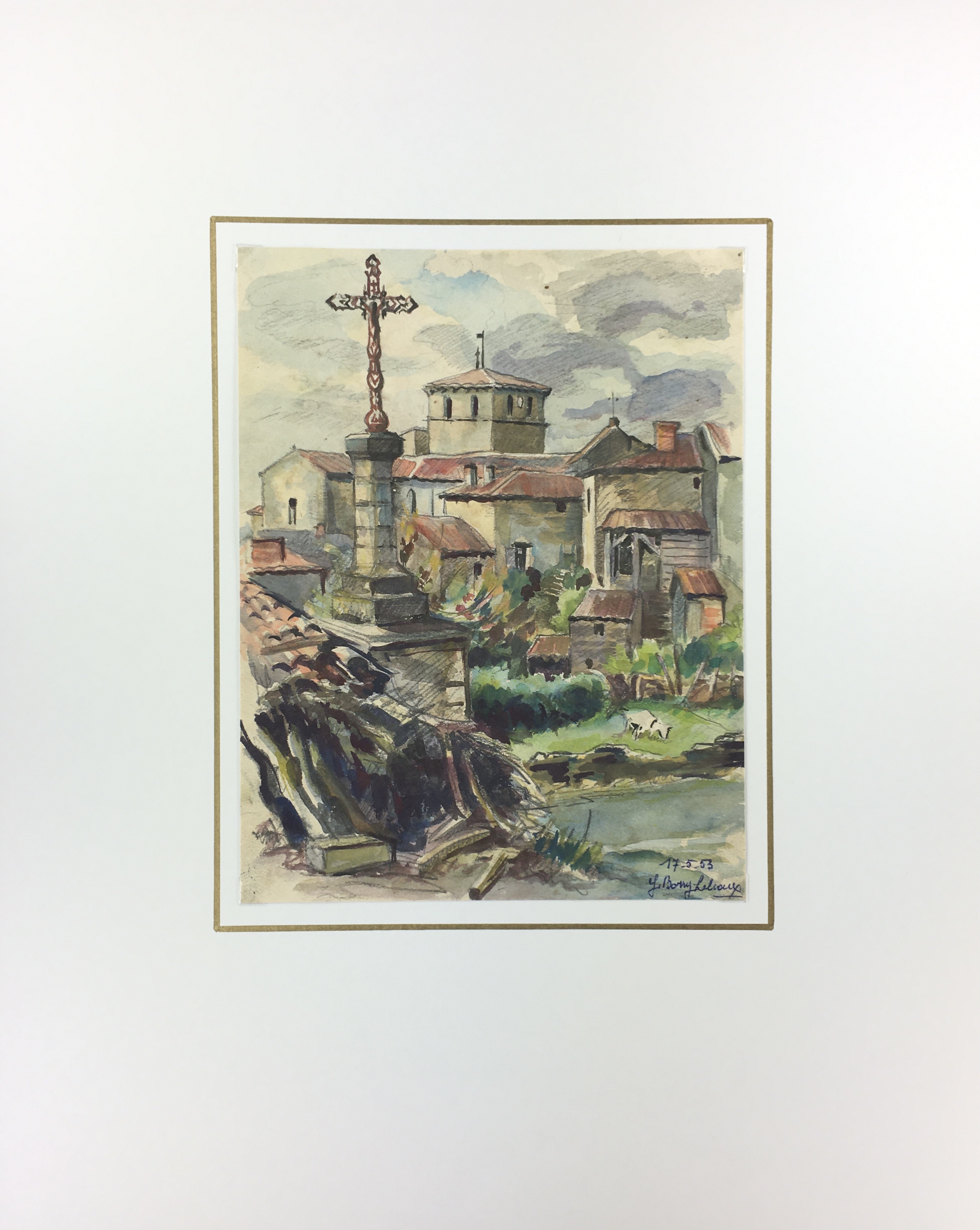 Original Art on paper displayed on a white mat with a gold border. Mat fits a standard-size frame. Archival plastic sleeve and Certificate of Authenticity included. Original Art, 8″W x 10.5″H; mat, 16″W x 20″H.