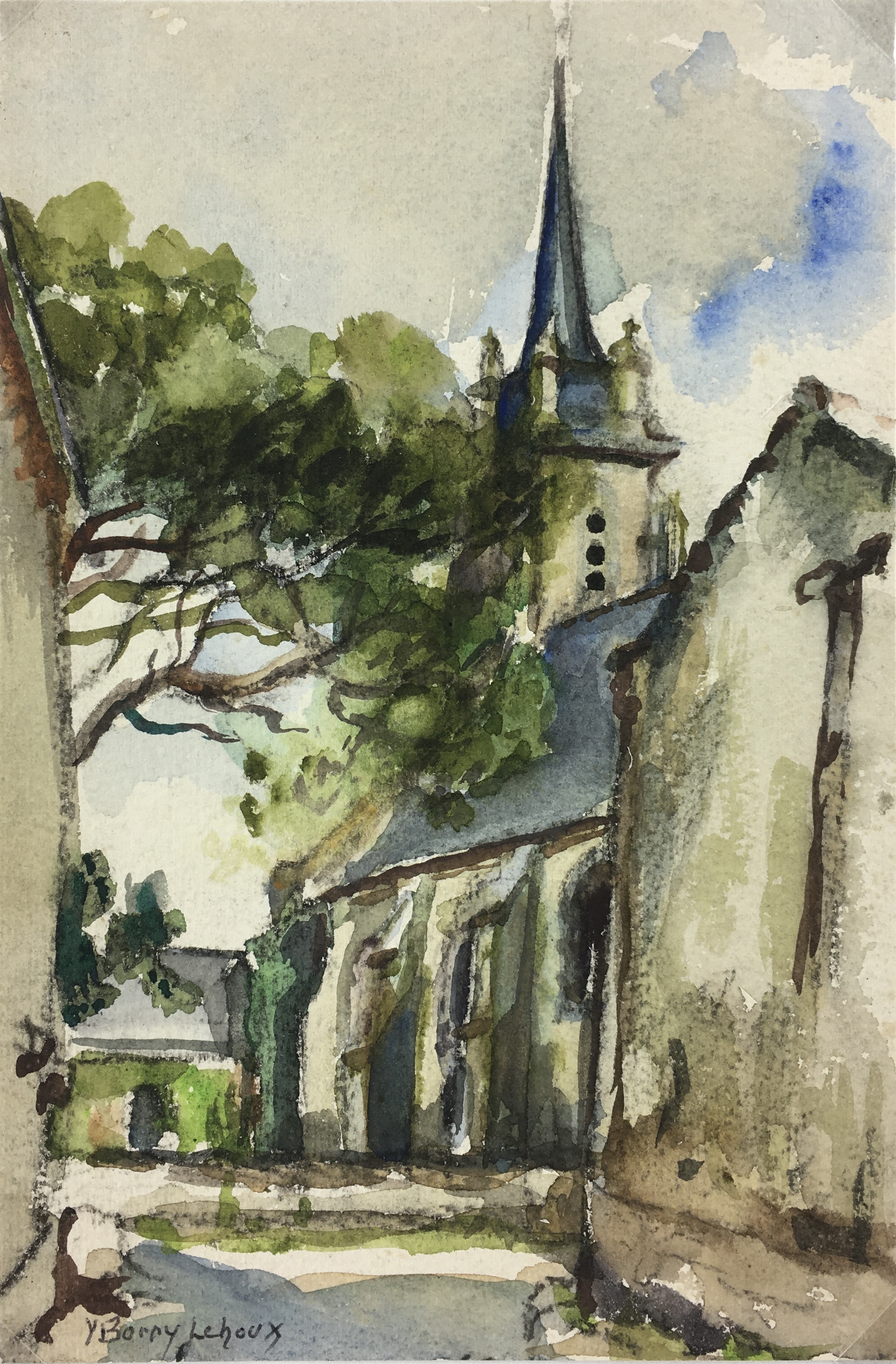 Churches & Chapels Original Art – Rue de l’Église, Y.B. Lehoux, c. 1950