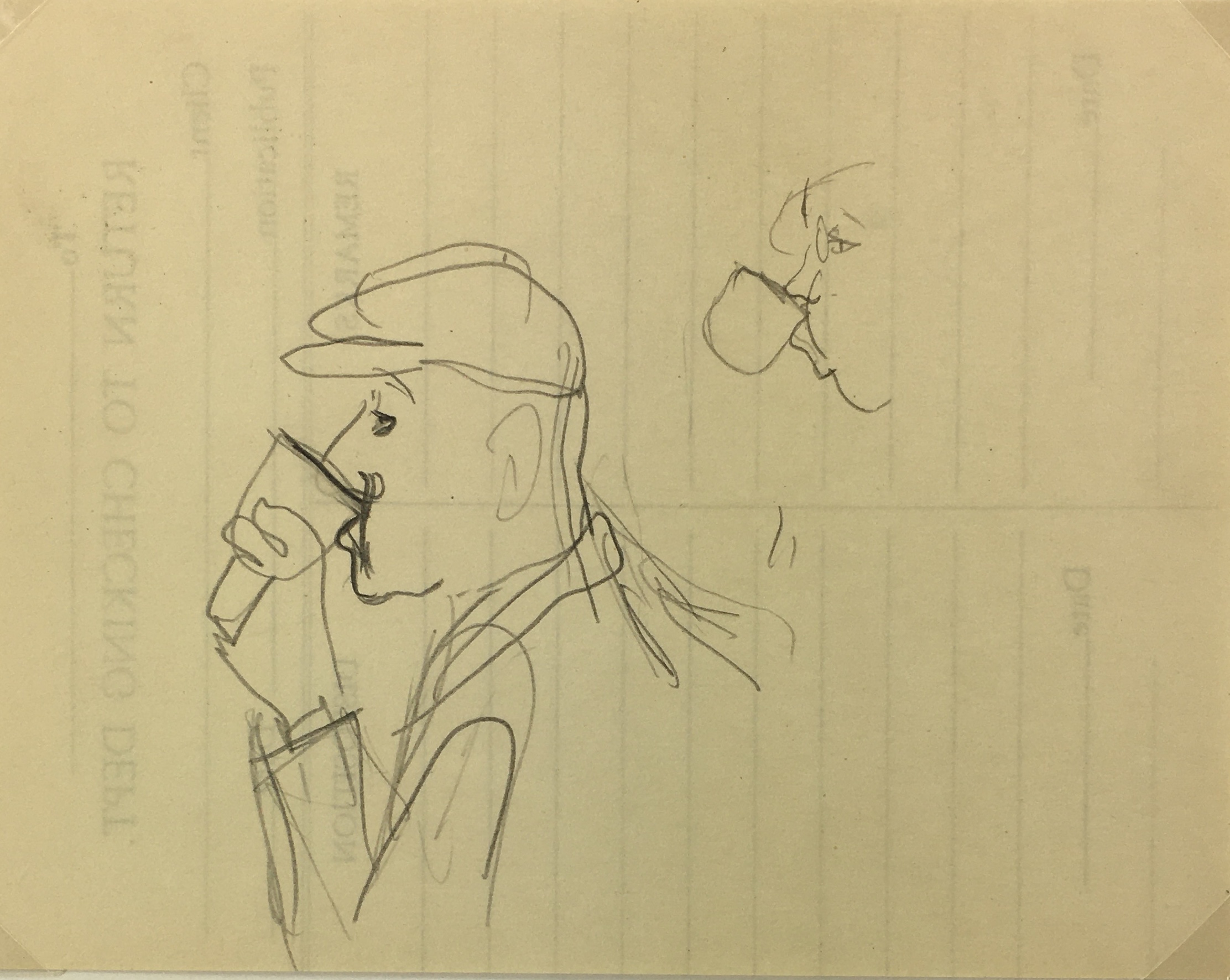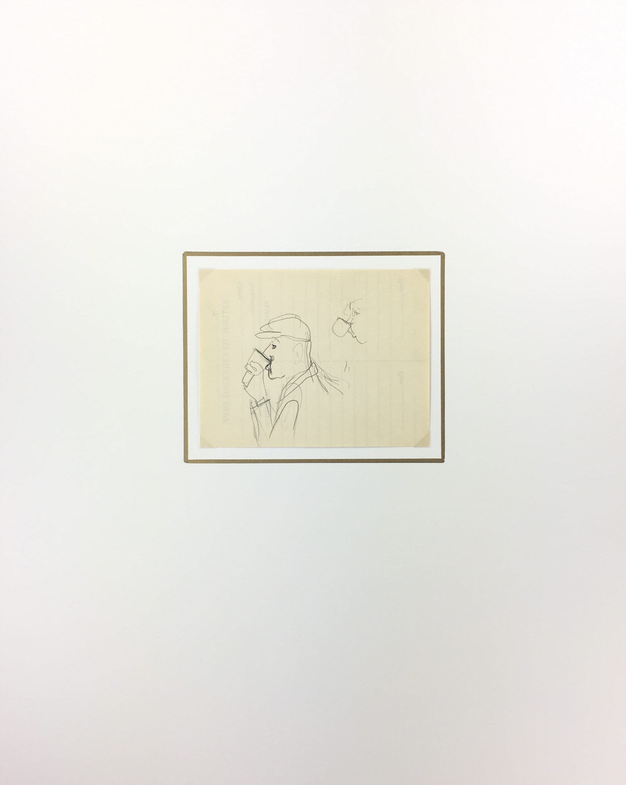 Original Art on paper displayed on a white mat with a gold border. Mat fits a standard-size frame. Archival plastic sleeve and Certificate of Authenticity included. Original Art, 5.75″W x 4.75″H; mat, 16″W x 20″H.