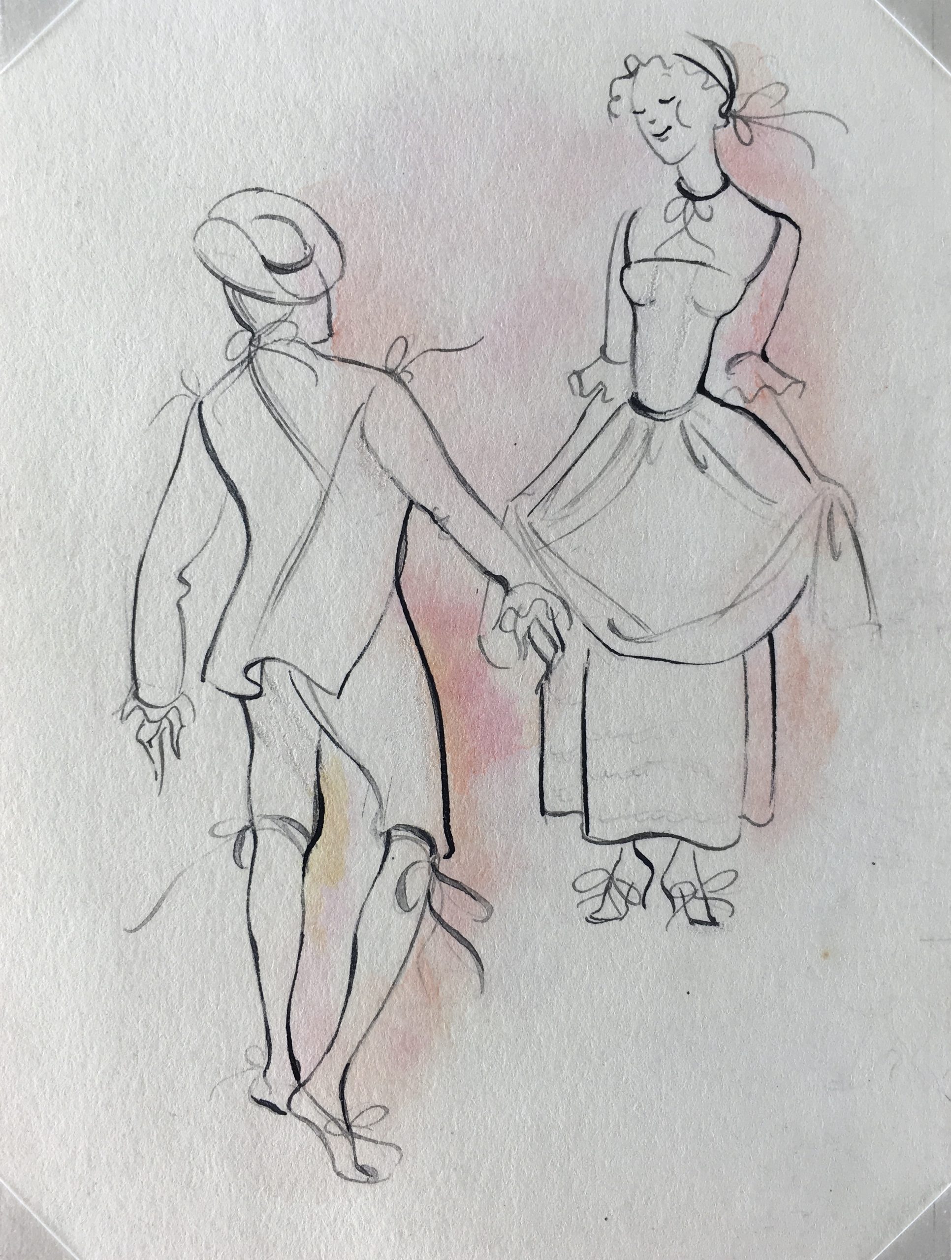 Original Art on paper displayed on a white mat with a gold border. Mat fits a standard-size frame. Archival plastic sleeve and Certificate of Authenticity included. Original Art, 3.75″W x 5″H; mat, 12″W x 16″H.