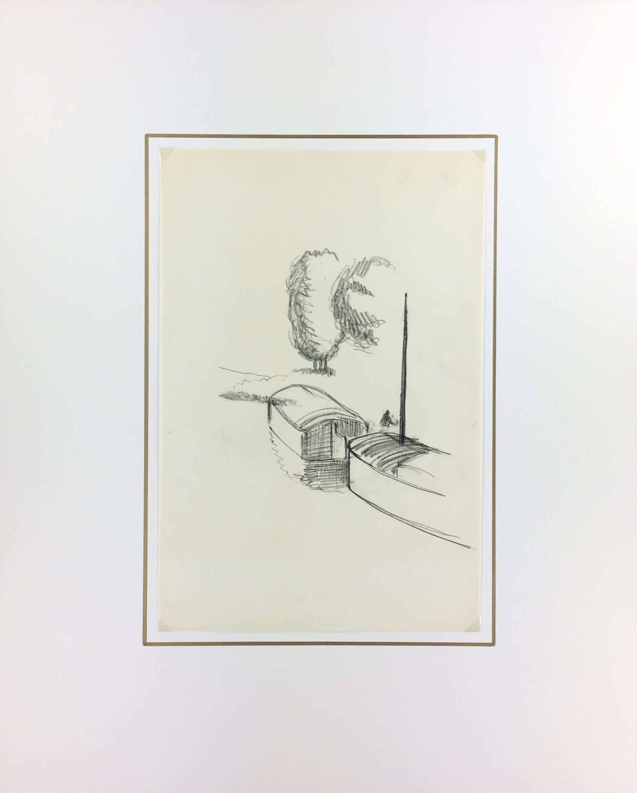 Nature Drawings Original Art – Pencil – Canal Barges, Albert Vialé, c.1930