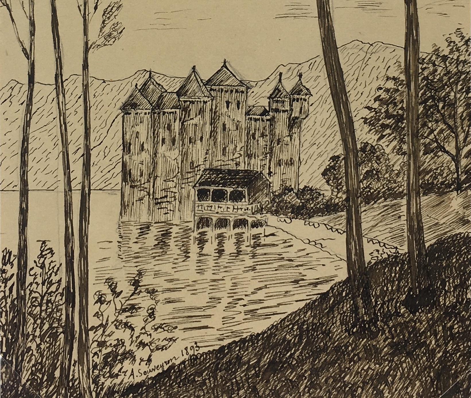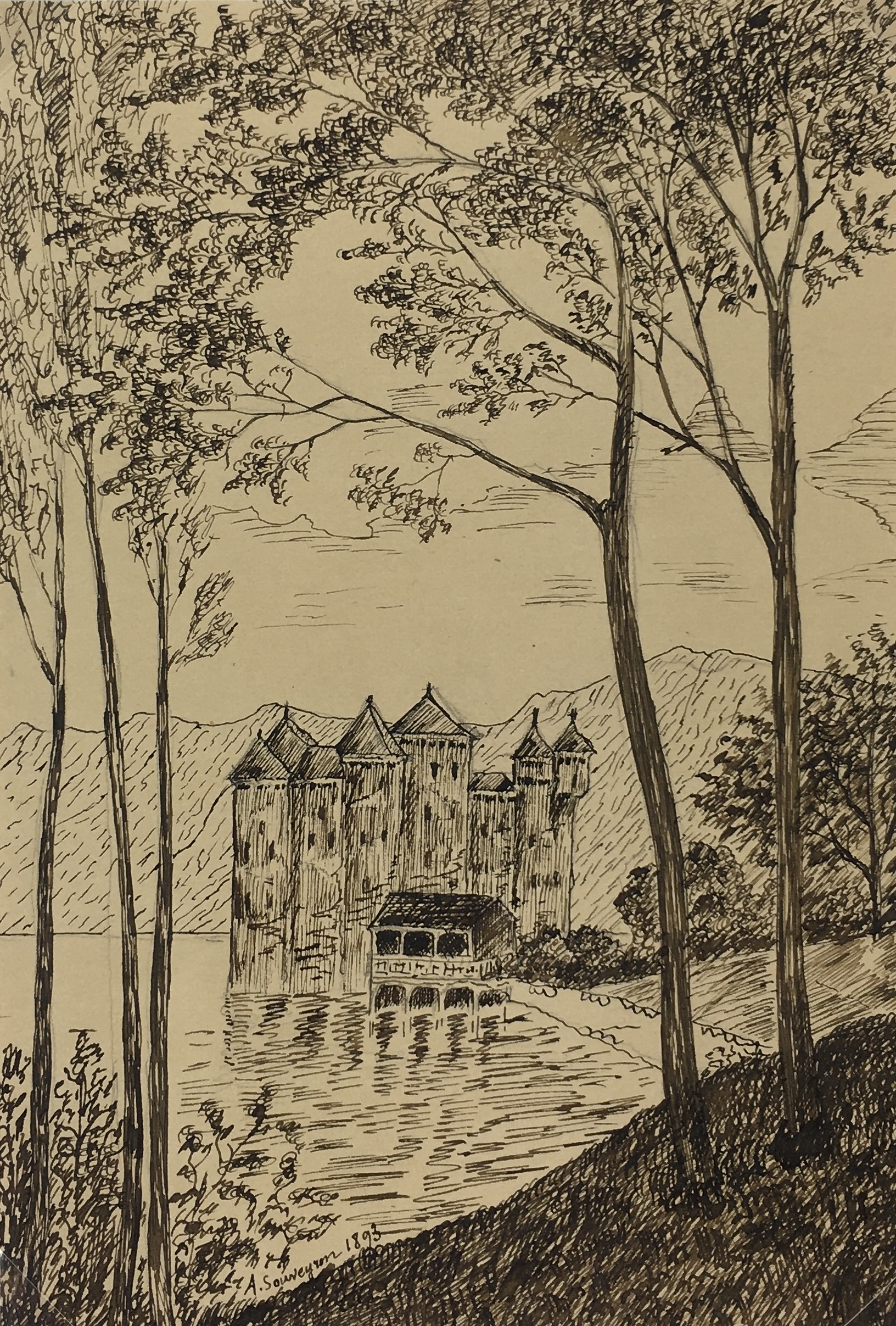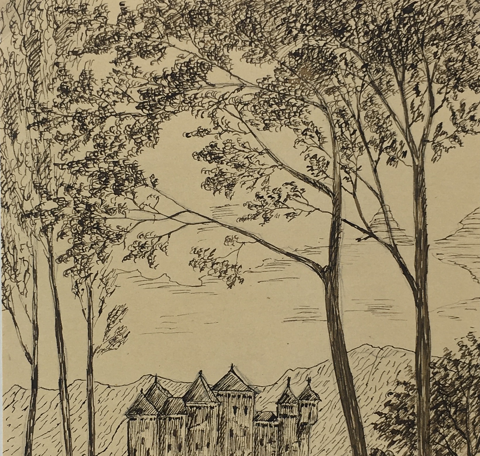 Places Drawings Original Art – On the Lake, French, c. 1920