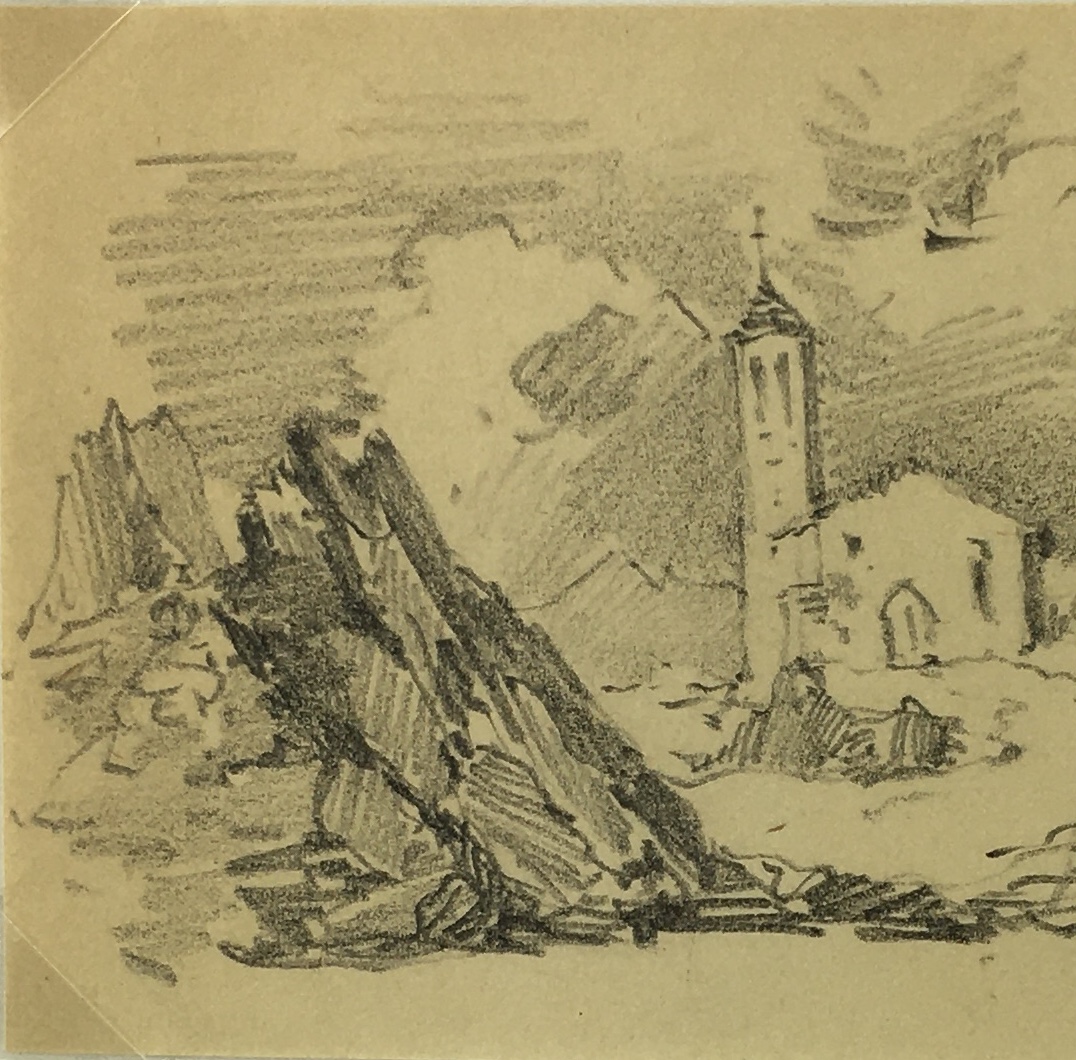 Original Art on paper displayed on a white mat with a gold border. Mat fits a standard-size frame. Archival plastic sleeve and Certificate of Authenticity included. Original Art, 4.5″W x 2.5″H; mat, 16″W x 20″H.