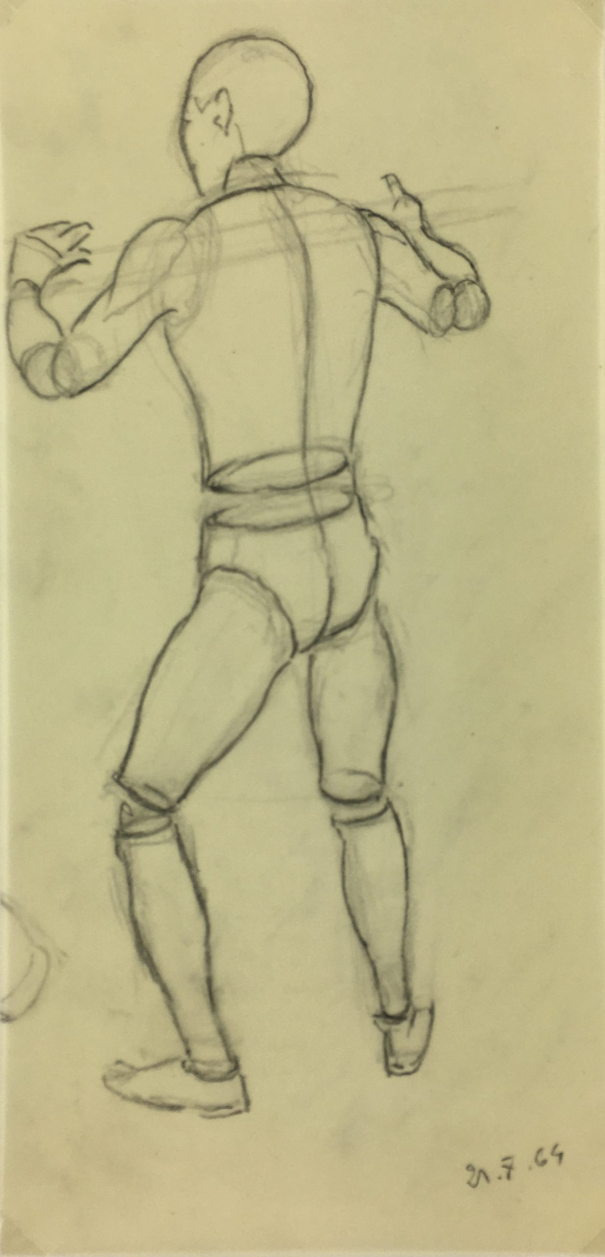 Original Art on paper displayed on a white mat with a gold border. Mat fits a standard-size frame. Archival plastic sleeve and Certificate of Authenticity included. Original Art, 5″W x 10″H; mat, 16″W x 20″H.