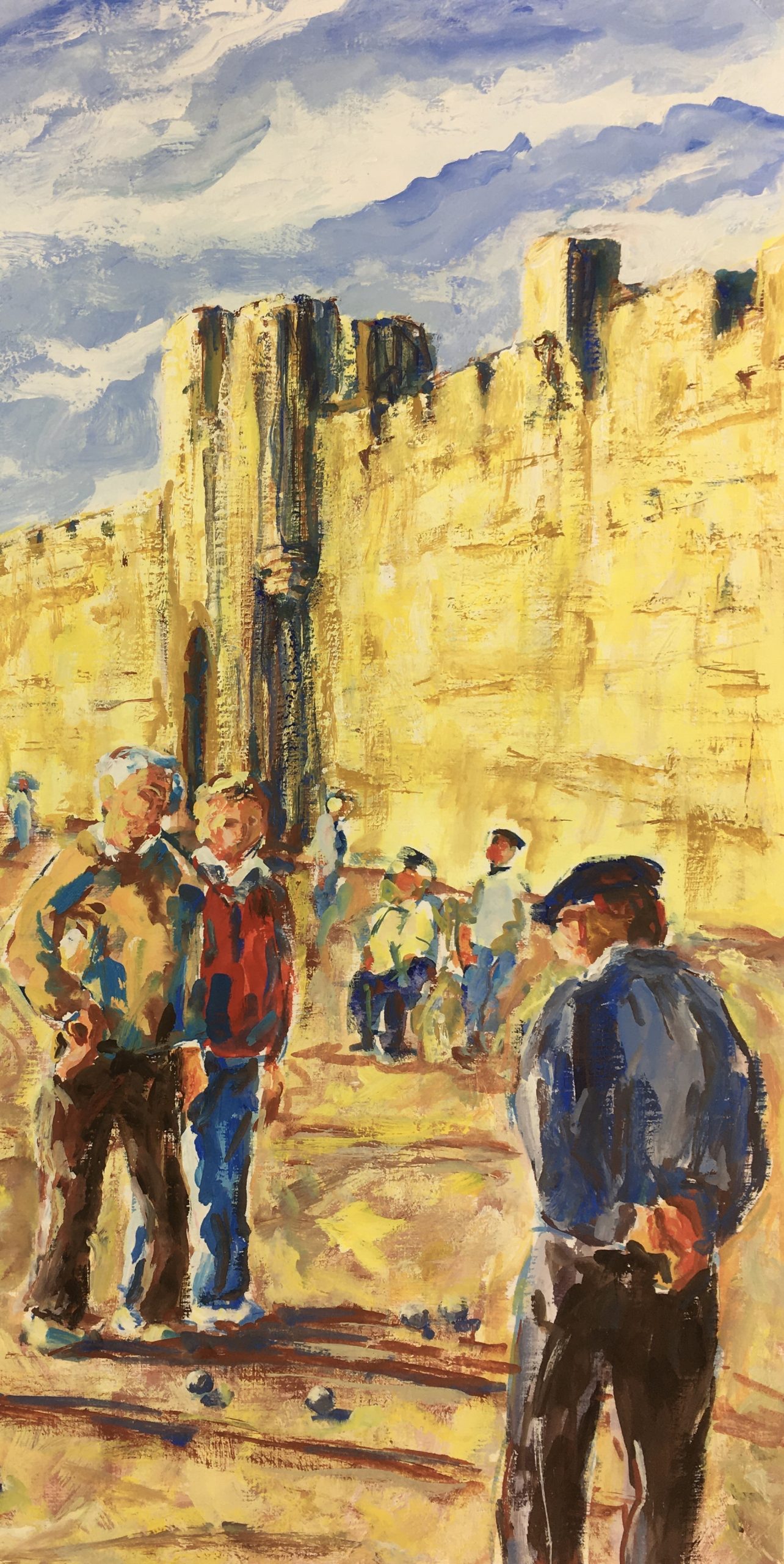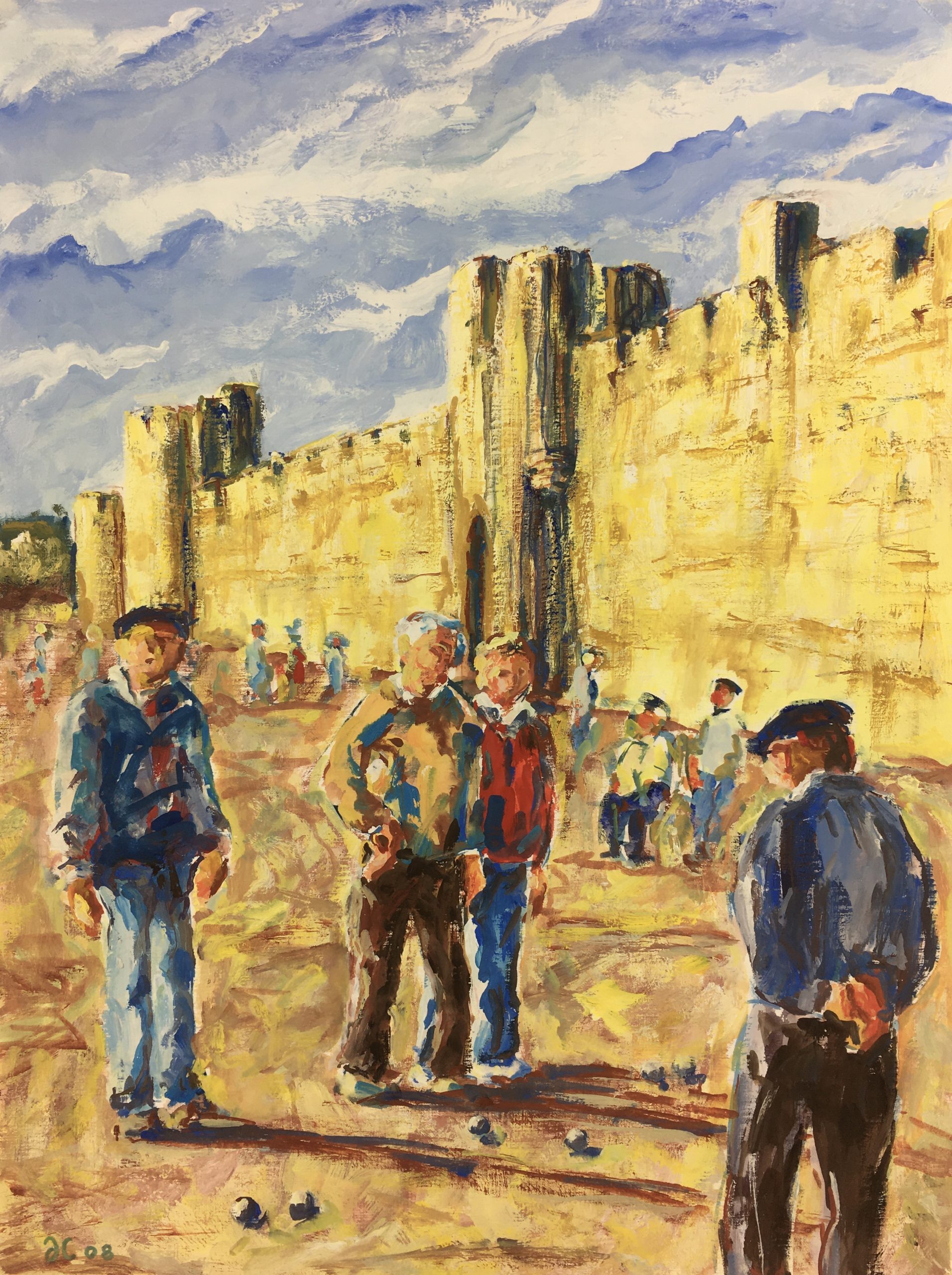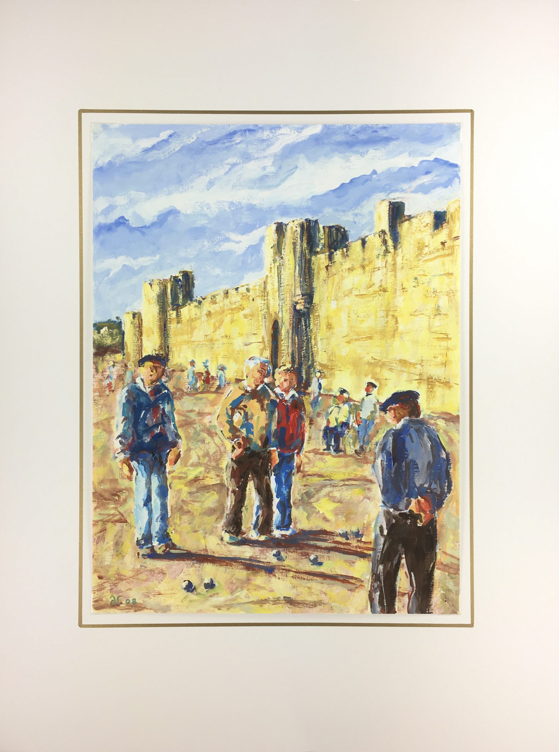 Original Art on paper displayed on a white mat with a gold border. Mat fits a standard-size frame. Archival plastic sleeve and Certificate of Authenticity included. Original Art, 11.75″W x 15.5″H; mat, 18″W x 24″H.