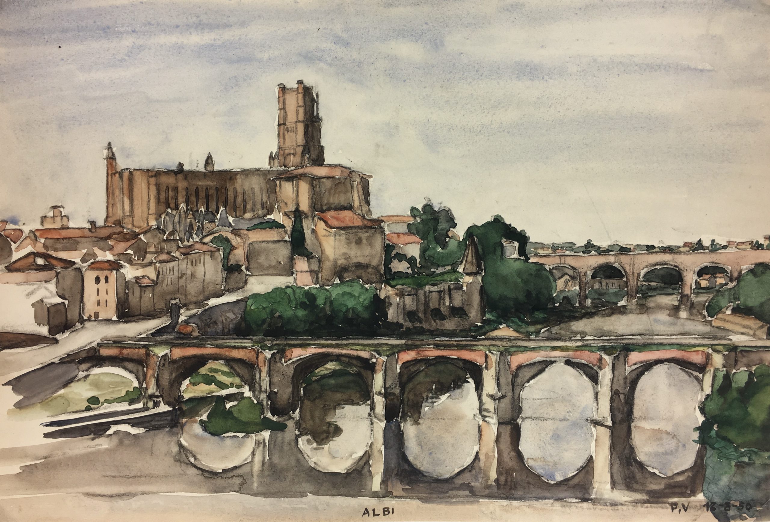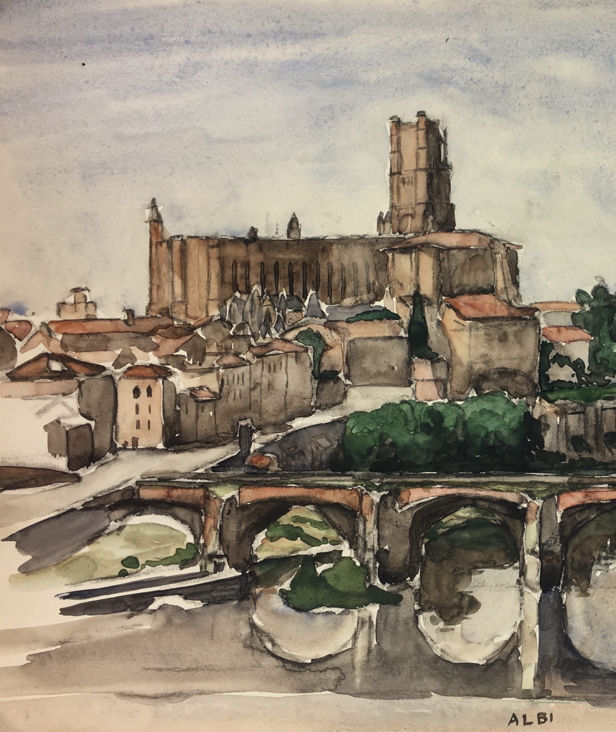 Original Art on paper displayed on a white mat with a gold border. Mat fits a standard-size frame. Archival plastic sleeve and Certificate of Authenticity included. Original Art, 20.5″W x 13.75″H; mat, 24″W x 18″H.