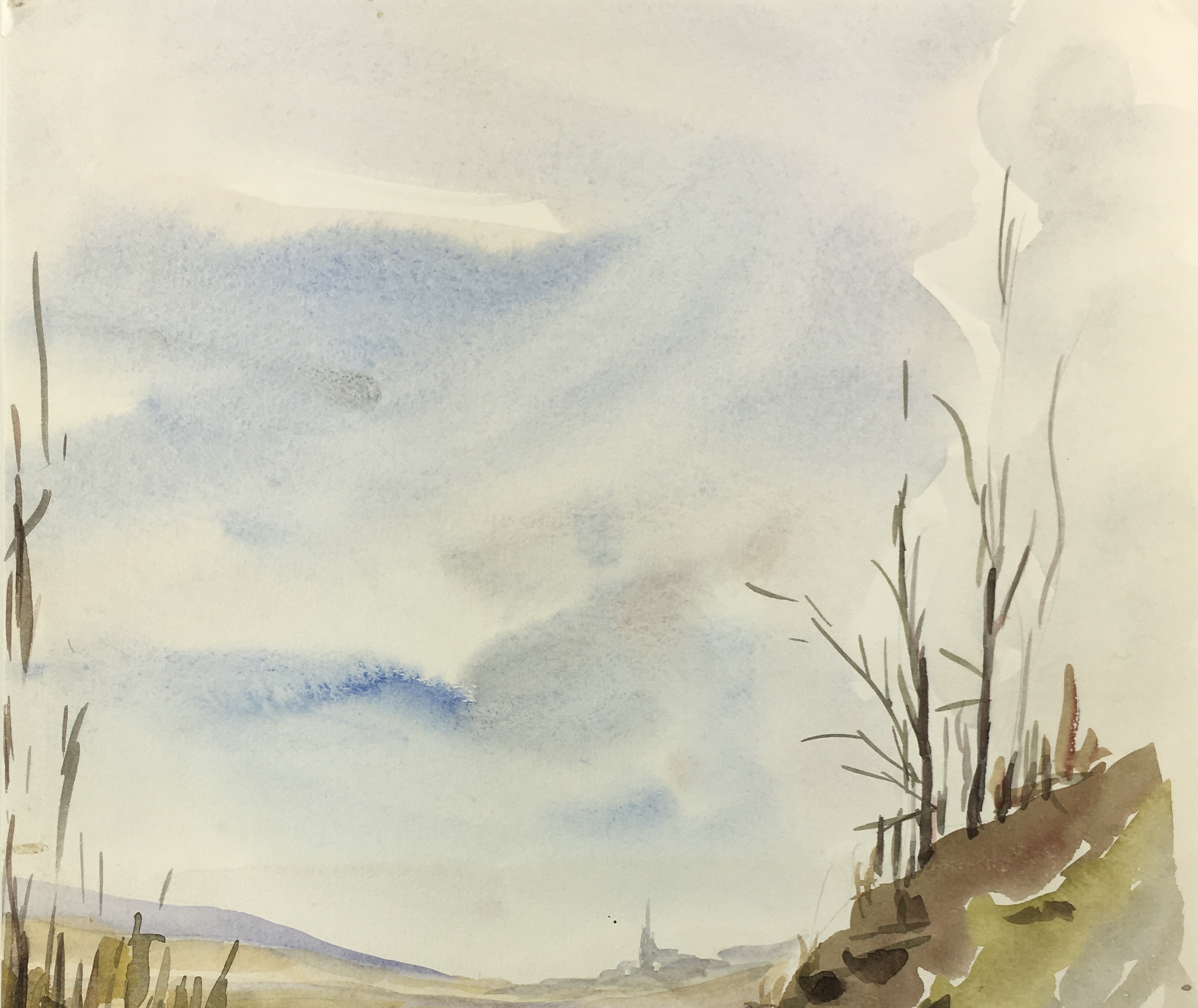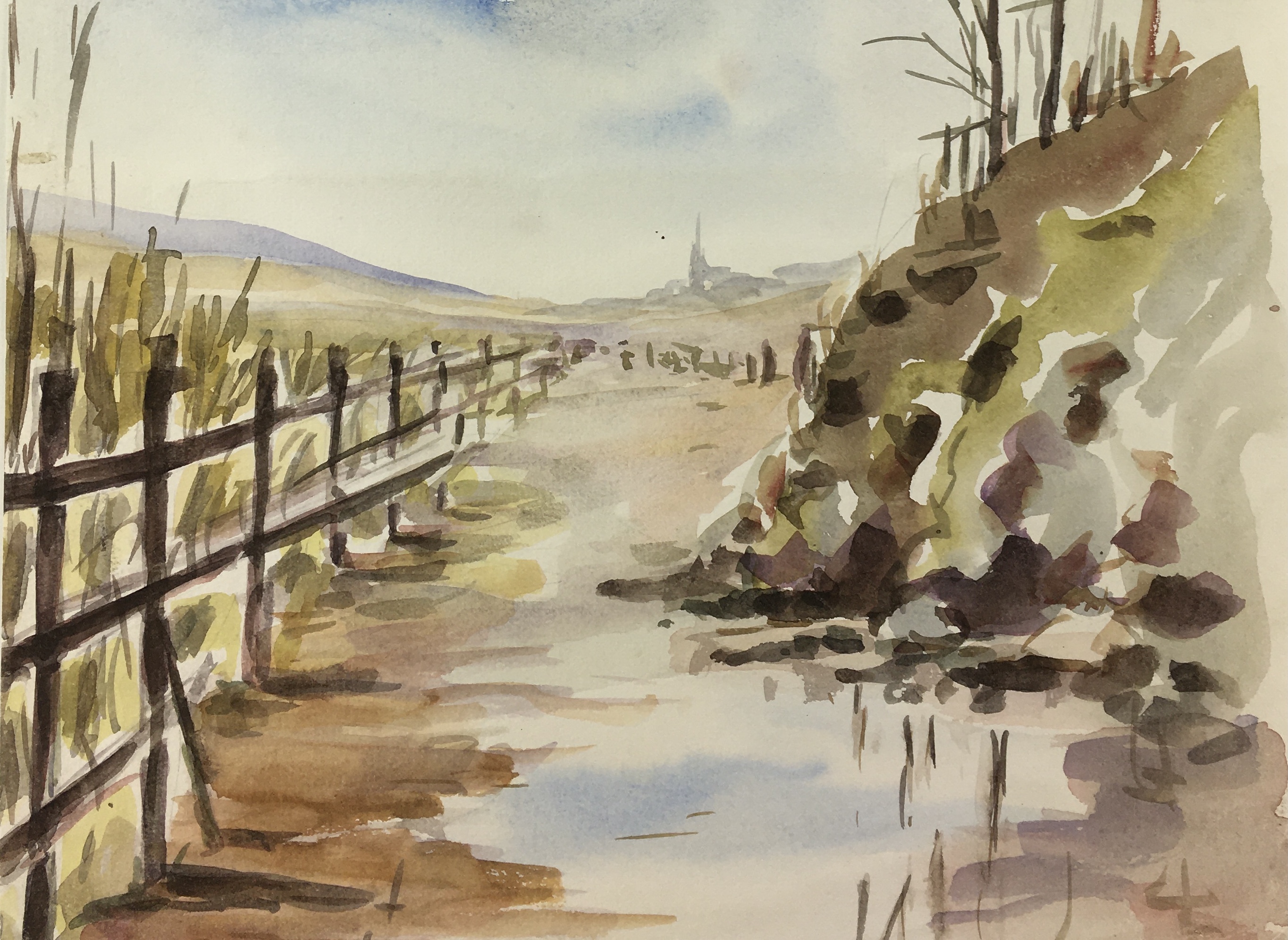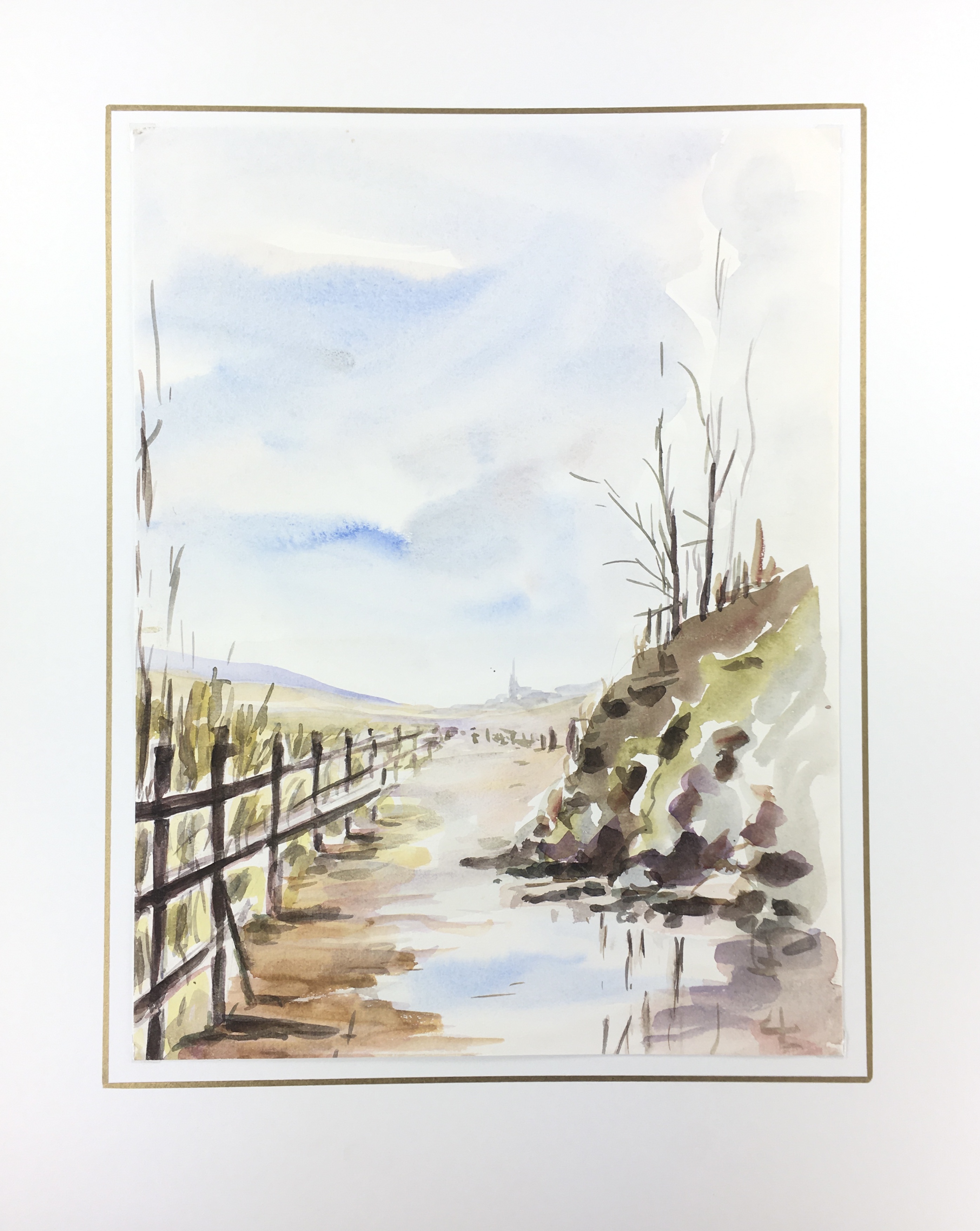 France Original Art – Autumn Road, Watercolor, 1990s