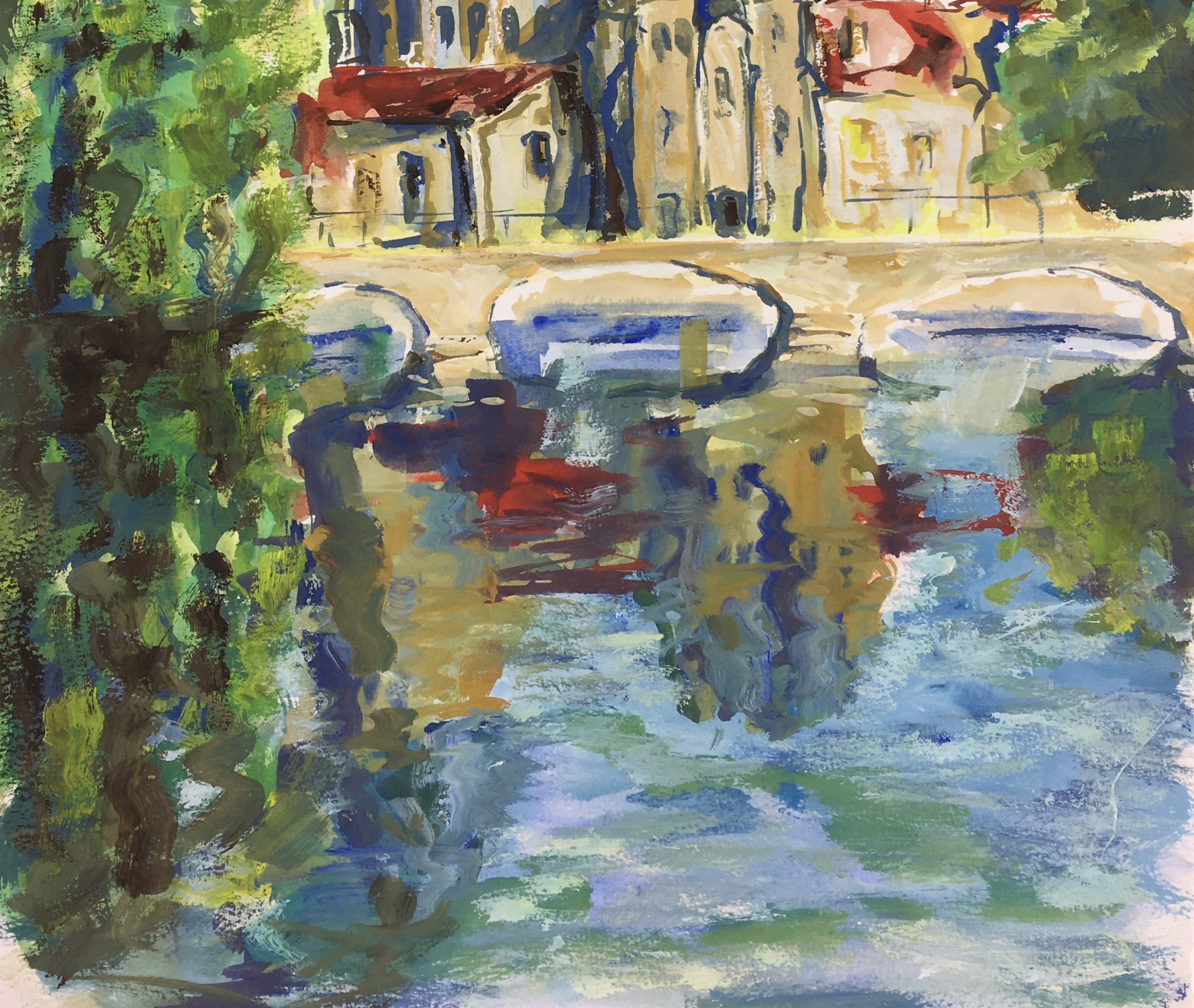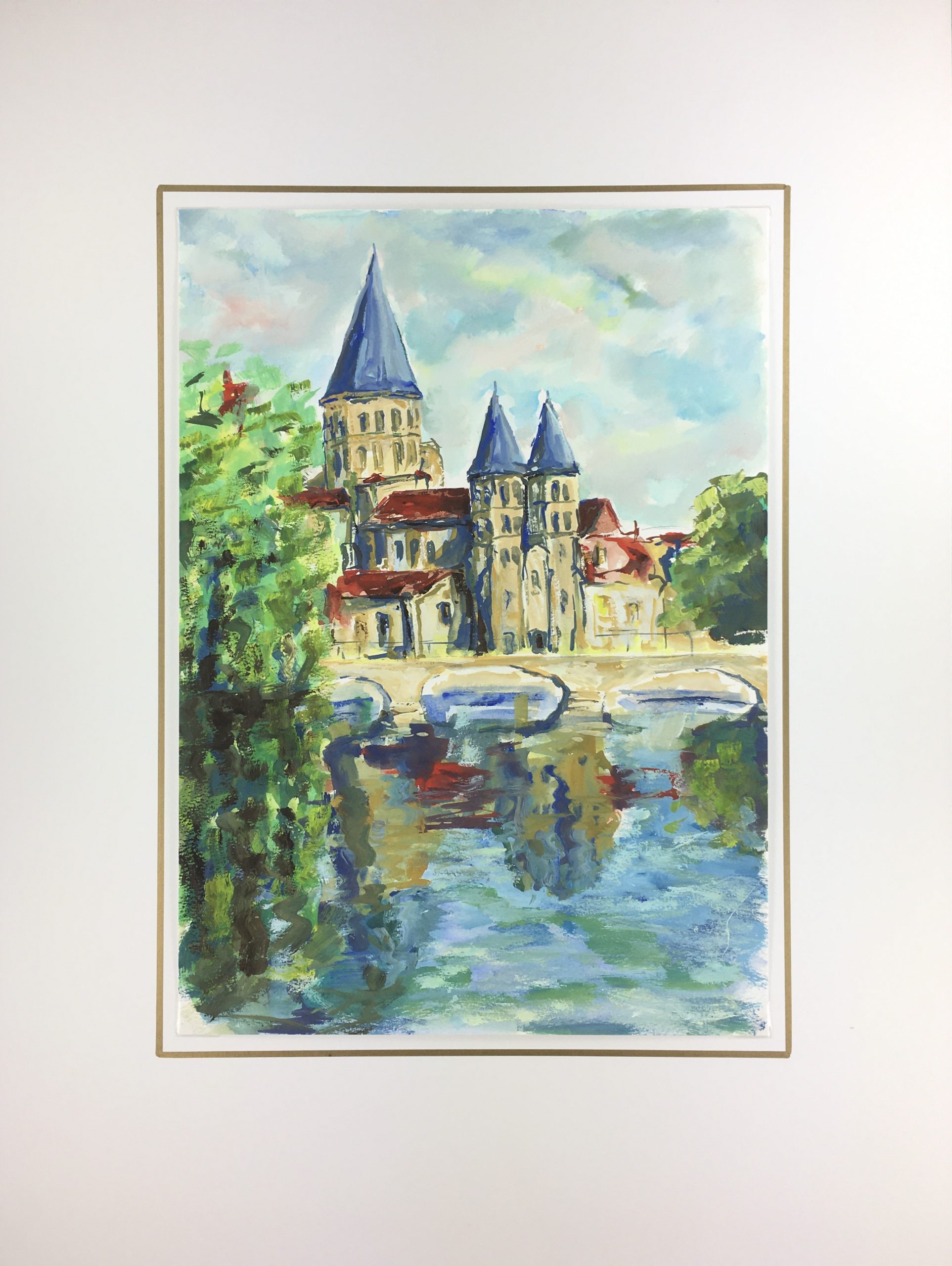 Original Art on paper displayed on a white mat with a gold border. Mat fits a standard-size frame. Archival plastic sleeve and Certificate of Authenticity included. Original Art, 15.5″W x 11.25″H; mat, 18″W x 24″H.