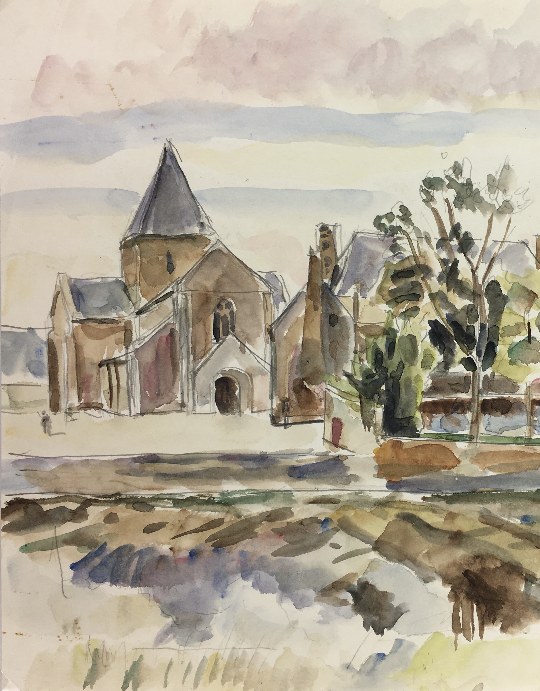 Original Art on paper displayed on a white mat with a gold border. Mat fits a standard-size frame. Archival plastic sleeve and Certificate of Authenticity included. Original Art, 15.5″W x 12″H; mat, 16″W x 20″H.