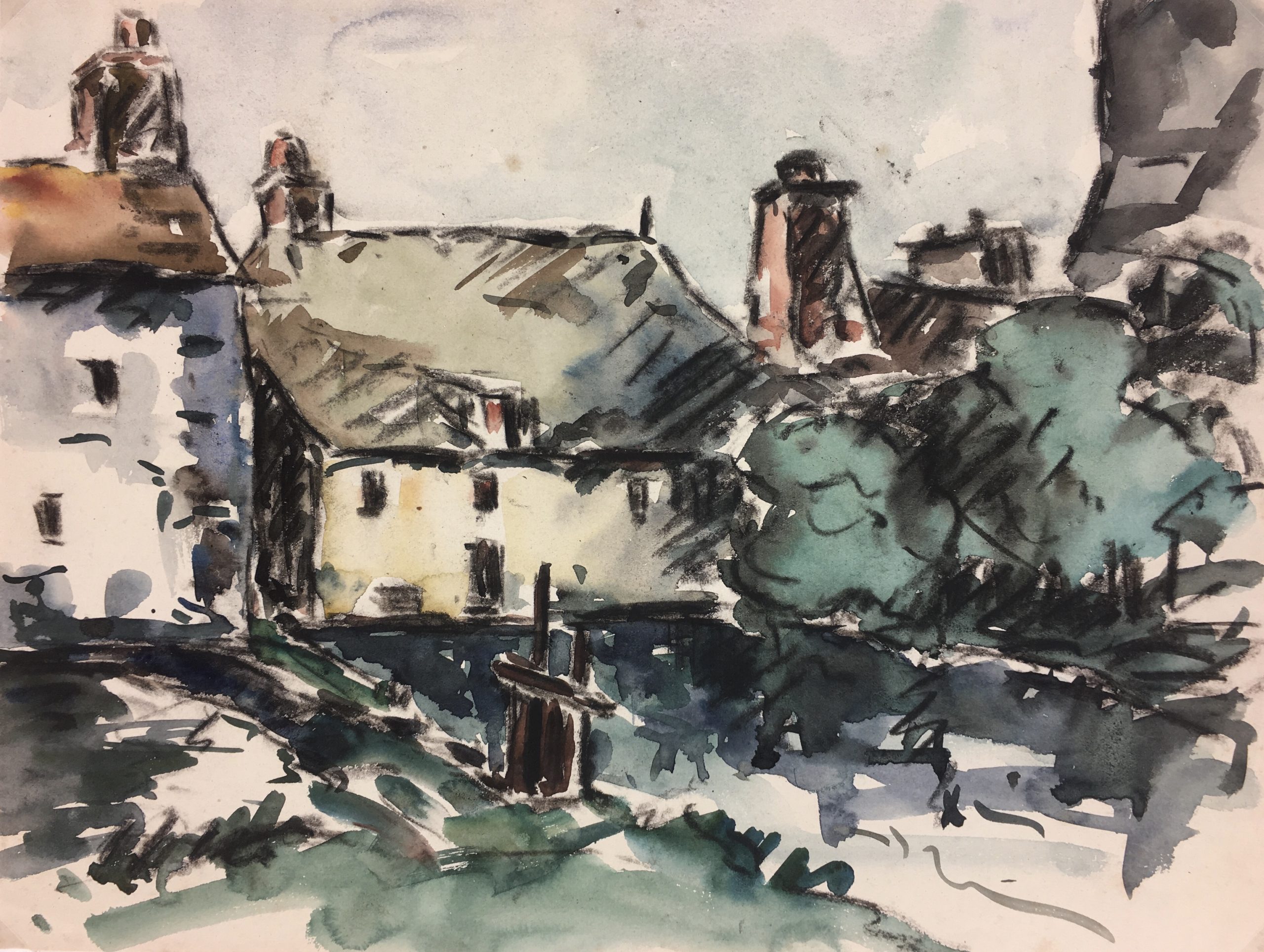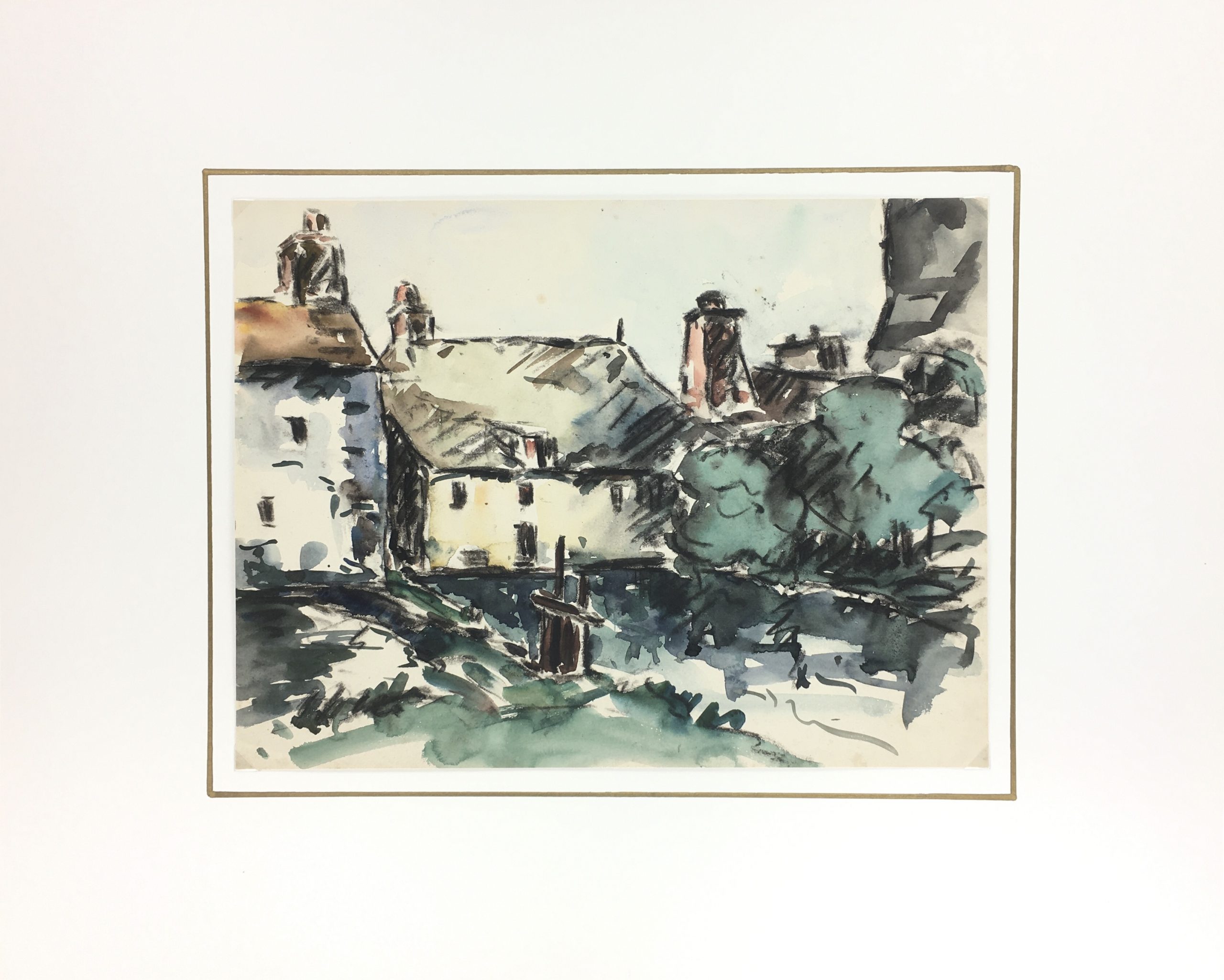 Original Art on paper displayed on a white mat with a gold border. Mat fits a standard-size frame. Archival plastic sleeve and Certificate of Authenticity included. Original Art, 12.25″W x 9.25″H; mat, 20″W x 16″H.