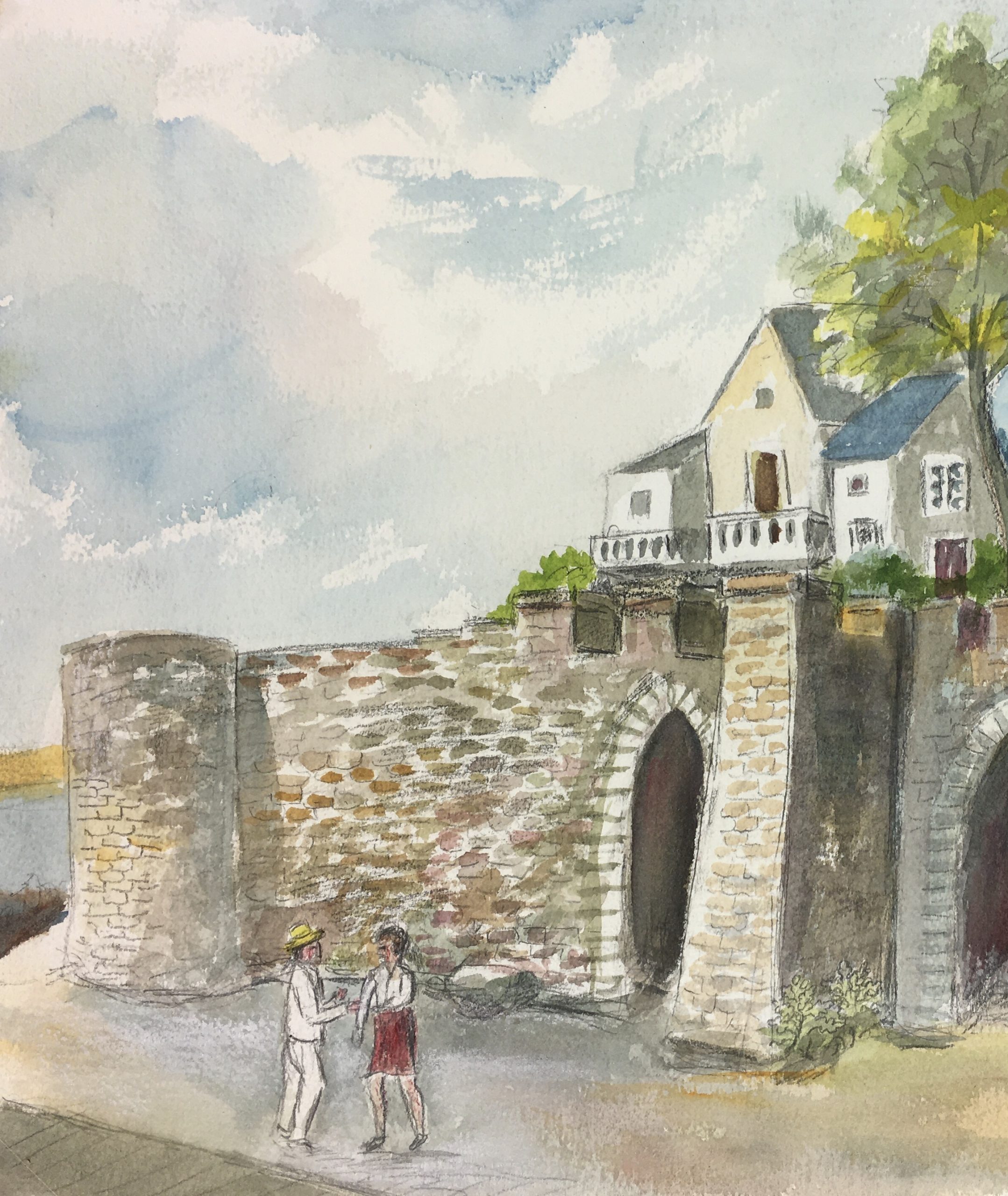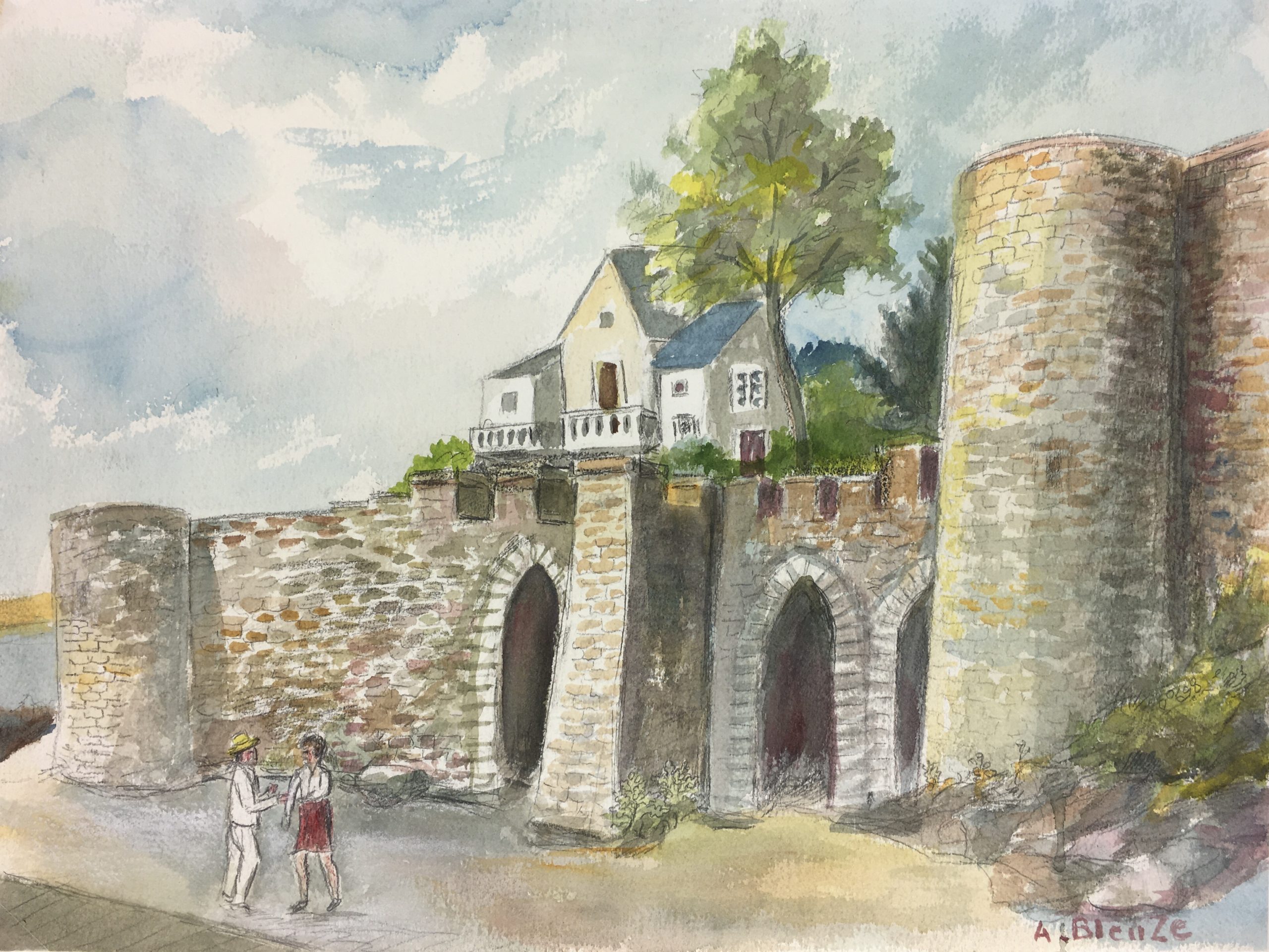 Original Art on paper displayed on a white mat with a gold border. Mat fits a standard-size frame. Archival plastic sleeve and Certificate of Authenticity included. Original Art, 16″W x 12″H; mat, 24″W x 18″H.